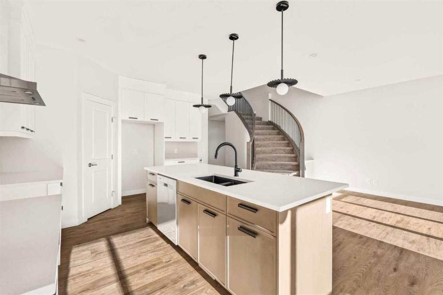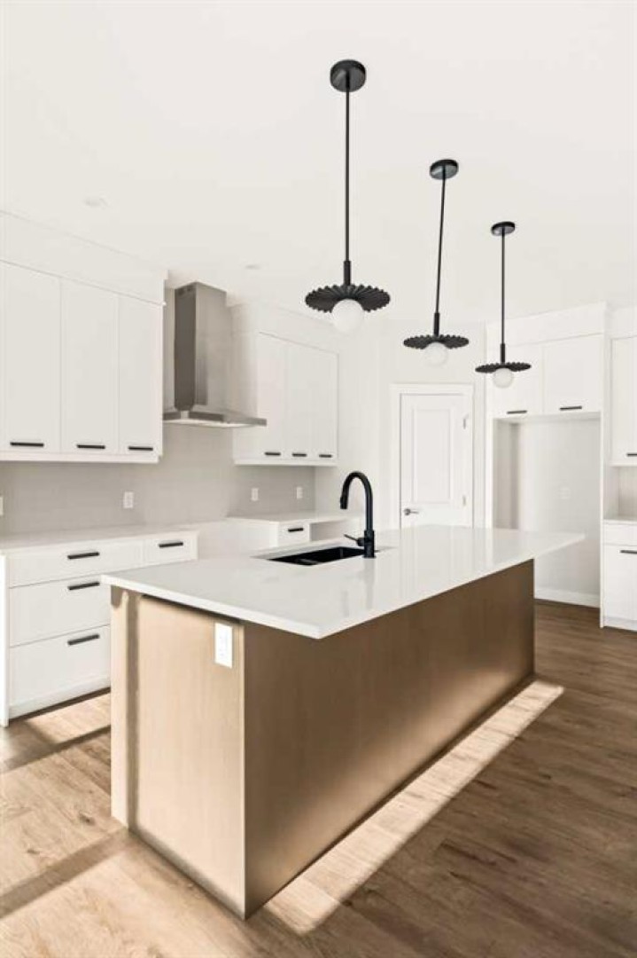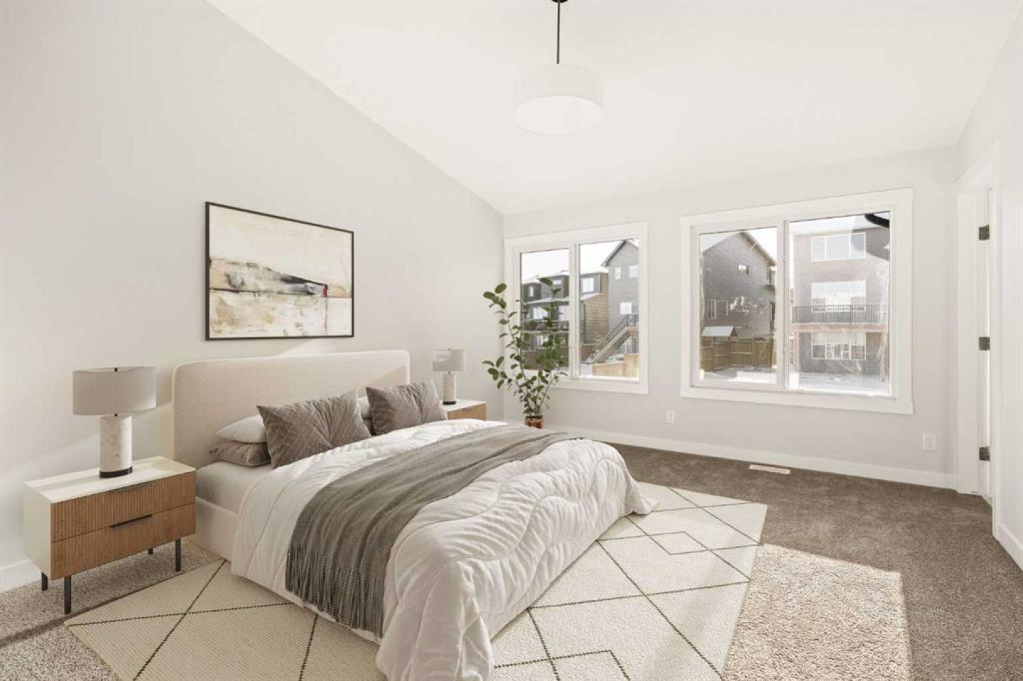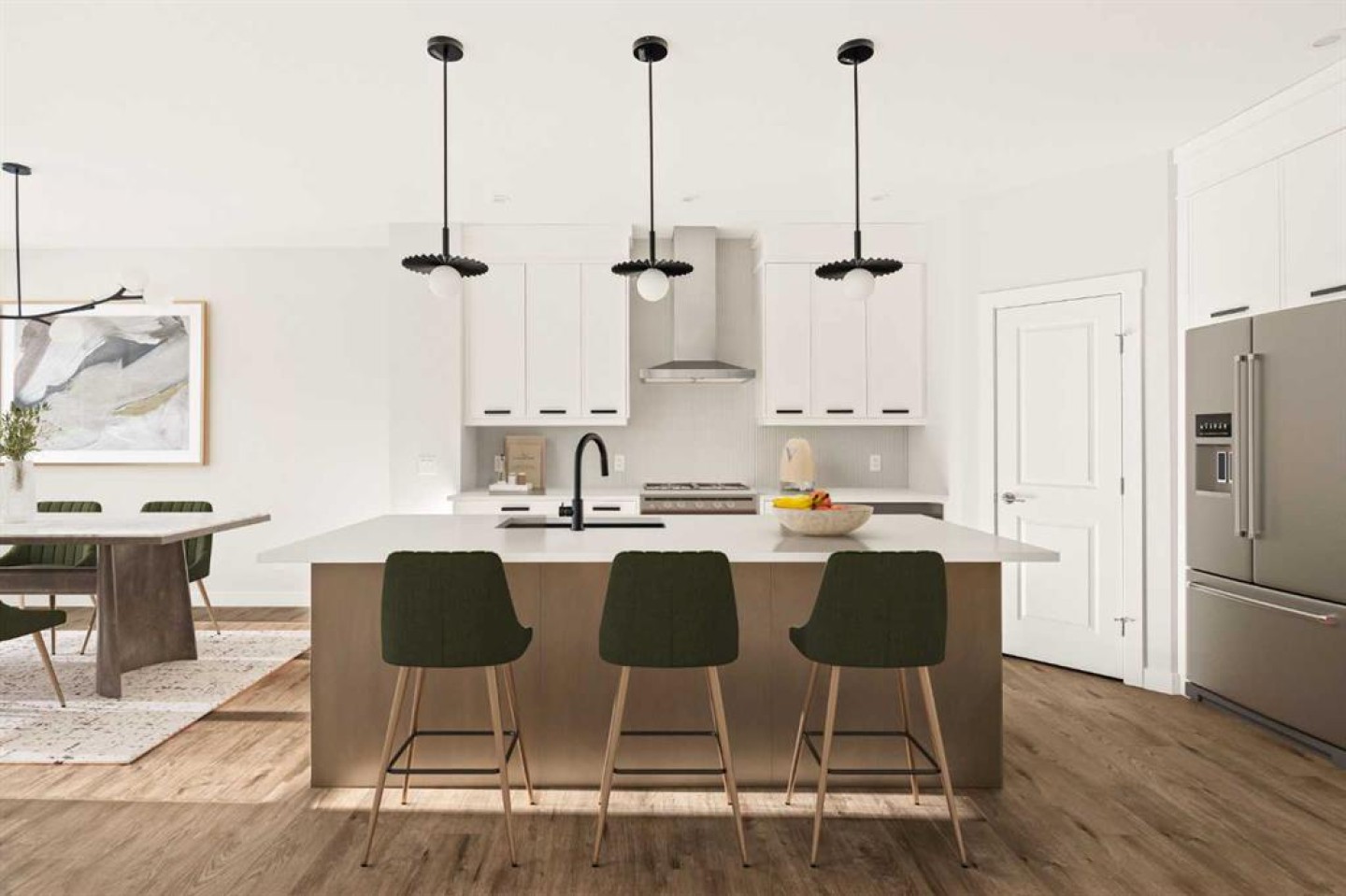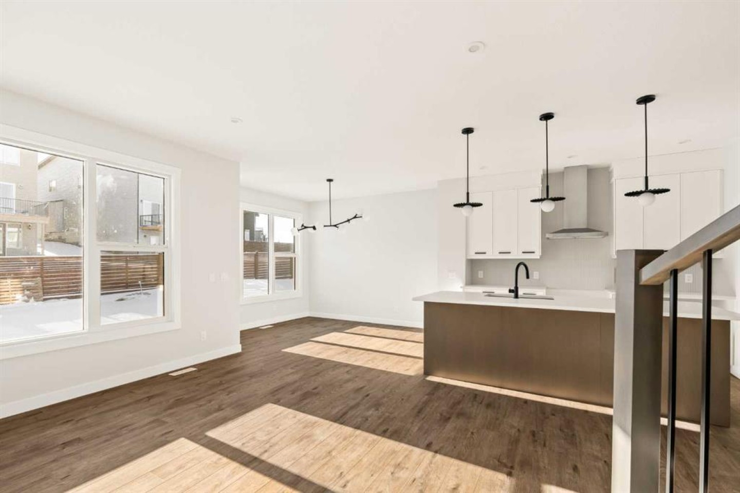 This Farmhouse elevation Robson 24 built by Brookfield Residential is a stunning brand new home in the heart of Livingston. Featuring 2 living areas, 3 bedrooms, 3 bathrooms and a home office / flex space on the main level that could be a 4th bedroom, this home has plenty of living space for a growing family + an undeveloped basement that awaits your imagination with ample space for a second living area, fourth bedroom and full bathroom. The home has a grand foyer with a front office space that could also be used for a children's play space, reading room or 4th bedroom - with a full bathroom located just outside the space. The centre of the main floor features a stunning spiral staircase that leads to the second level - offering unique design features rarely seen in a home of this size. The gourmet kitchen includes a built-in range hood and lower built-in microwave and is complete with a large corner pantry providing endless storage for those that like to cook and entertain. The timeless kitchen has white cabinets with a warm wood accent island and it overlooks both the living and dining areas - making this the perfect space to host guests. A wall of south-facing windows in both the living and dining rooms allow for natural light to pour through the space all day long. The main floor has a full bathroom and is complete with 9' ceilings creating a more open space. The spiral staircase leads to the second level where you'll find a central bonus room that separates the primary suite from the secondary bedrooms. The primary suite has vaulted ceilings and is complete with a 5 pc en suite including dual sinks, walk-in shower, and a soaker tub with window for added natural light - in addition to its incredibly large walk-in closet. Two more bedrooms, a full bathroom and a laundry room complete the second level. The basement is undeveloped and awaits the new owner's imagination - complete with bathroom rough-ins in place. Completing this home is a large and private south-facing backyard that provides optimal natural light and sunshine, both inside and outside, all year long. The 23' wide deep double attached garage is the perfect space to keep your vehicle and valuables safe all year long. Builder new home warranty & Alberta New Home Warranty are included with the purchase of this brand new home. Located in desirable Livingston, with an incredible HOA, this property is fully move-in ready and perfect for a growing family.