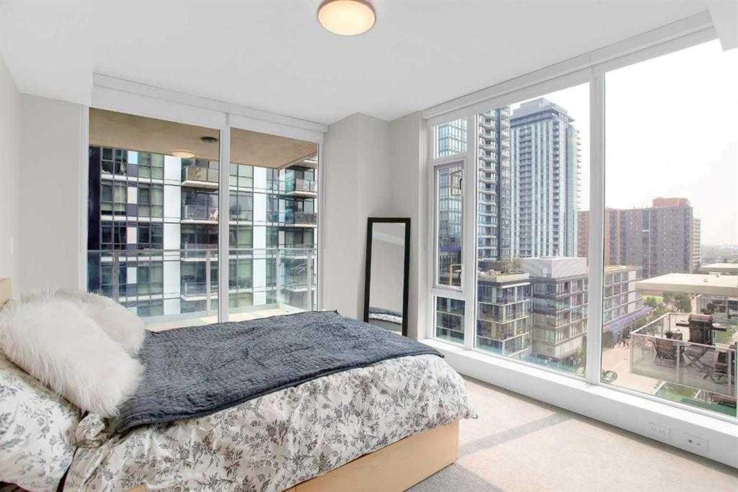 Exceptional value in this modern 2-bedroom + den, 2-bathroom corner residence in the sought-after Evolution Fuse tower in East Village. With expansive floor-to-ceiling Low-E windows, this home is bathed in natural light and showcases stunning views of the Bow River, St. Patrick’s Island, and the vibrant East Village skyline. The thoughtfully designed open-concept layout offers both style and functionality. The living area provides the perfect setting to enjoy morning coffee with sunrise river views, while the separate dining space comfortably accommodates sit-down dinners and entertaining. The contemporary kitchen features glossy white upper cabinetry paired with warm wood-grain lower cabinets, granite countertops with full-height backsplash, an undermount sink, and premium stainless steel appliances. The primary retreat includes a walk-in closet and a spa-inspired 4-piece ensuite complete with granite vanity and in-floor radiant heating. The second bedroom is well-sized and ideally positioned near the 3-piece bath for privacy. A generous den offers excellent flexibility for a home office or additional storage. Step outside to the oversized balcony with gas BBQ hookup — the perfect vantage point for summer evenings, city lights, and even Stampede fireworks. Additional highlights include in-suite full-size front-loading washer and dryer, underground parking, and a separate storage locker. Residents of Evolution enjoy concierge service, a fully equipped fitness centre with steam room and sauna, secure underground visitor parking, and a beautifully designed garden terrace. Located in one of Calgary’s most dynamic riverfront communities, East Village places you steps from river pathways, parks, restaurants, cafés, the Central Library, Studio Bell, and the LRT. With the future Event Centre and arena development underway, this location continues to grow in both lifestyle appeal and long-term value. Make this lifestyle yours. Ideal for professionals, urban buyers, or investors seeking strong rental potential in a premier downtown setting.