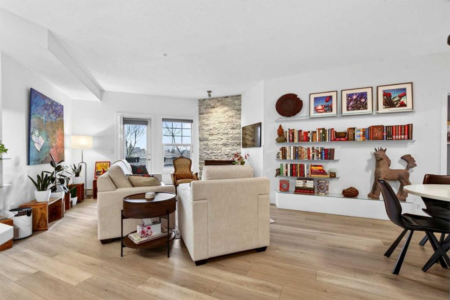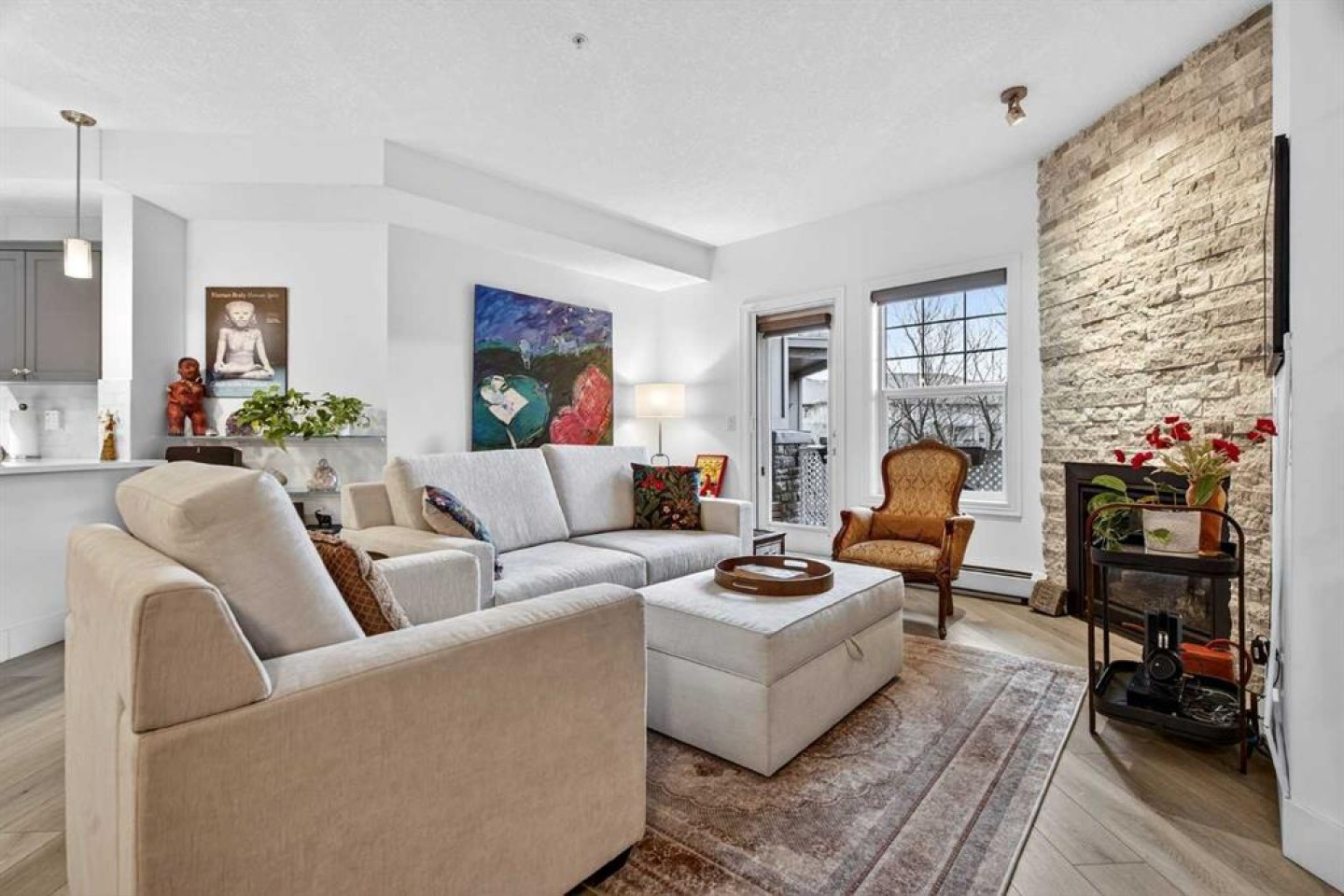 You’re not just buying a home—you’re purchasing a lifestyle. Welcome to Inglewood, one of Calgary’s most vibrant and walkable inner-city neighbourhoods. Just steps from parks, river pathways, local shops, music venues, breweries, and restaurants, this location offers the perfect balance of charm and convenience. Located in the sought-after Pearce Gardens, this spacious third-floor unit offers 974 square feet of bright, open-concept living with southwest exposure and sunset, mountain views from your private balcony. Inside, you'll find a large primary bedroom and a second enclosed room (currently used as a den) that meets legal egress requirements due to the building’s full sprinkler system, making it a safe and functional second bedroom. Upgrades throughout the unit include luxury vinyl plank flooring, porcelain tile in the main bath, a rebuilt fireplace wall with custom stonework and floating glass shelving, and a refreshed kitchen with quartz countertops, painted cabinets, and newer appliances including a fridge, stove, range hood, and dishwasher. Additional highlights include ceiling fans in both bedrooms, a custom dresser and shelving in the primary closet, built-in entry and laundry storage, and deck upgrades with flooring, privacy lattice, a retractable screen door and a 12-foot wide roll-down sun blind. The unit also features in-suite laundry, 9-foot ceilings, a gas fireplace, and a titled underground parking stall & storage near the elevator. Residents enjoy access to a fitness centre, a large party room with kitchen and patio, and ample visitor parking. Your condo fee includes gas, heat, sewer, water & more. Pearce Gardens is pet-friendly with board approval and is professionally managed. This home offers lifestyle, location, and lasting comfort in one of Calgary’s most sought-after communities. Book your showing today.