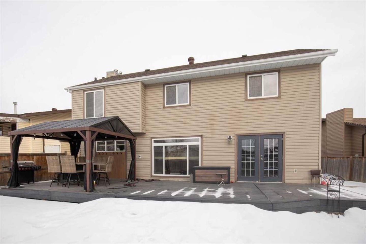 The Perfect Blend of Character and Modern Luxury. From the moment you step inside, this charming 5-bedroom, 4-bathroom home wraps you in comfort. The heart of the home is a gorgeous, updated kitchen featuring stainless steel appliances, a walk-in pantry, and expansive counter space framed by rich cabinetry. The open bright dining area flows seamlessly into a spacious living room centered by a cozy gas fireplace—perfect for family gatherings. Upstairs, you’ll find three generous bedrooms and a thoughtfully designed sitting area. The primary suite is a true retreat, boasting a walk-in closet and a spa-like 5-piece ensuite with double sinks and a tiled jetted tub. The lower level adds two more bedrooms, a full bath, and a dedicated Media Room for movie nights. Air Conditioning added in 2023 and a new furnace in 2025 with a 25 year warranty. The property also features a heated garage with 220V power and an extra cement pad for RV or boat storage. With shingles, siding, flooring, windows, plumbing/electrical updated between 2012-2016, this home offers total peace of mind. Outside, enjoy the south-facing sun from your large composite deck (updated 2025) while the kids play in the big backyard. Family friendly neighborhood while maintaining excellent access to local amenities, schools, and parks.