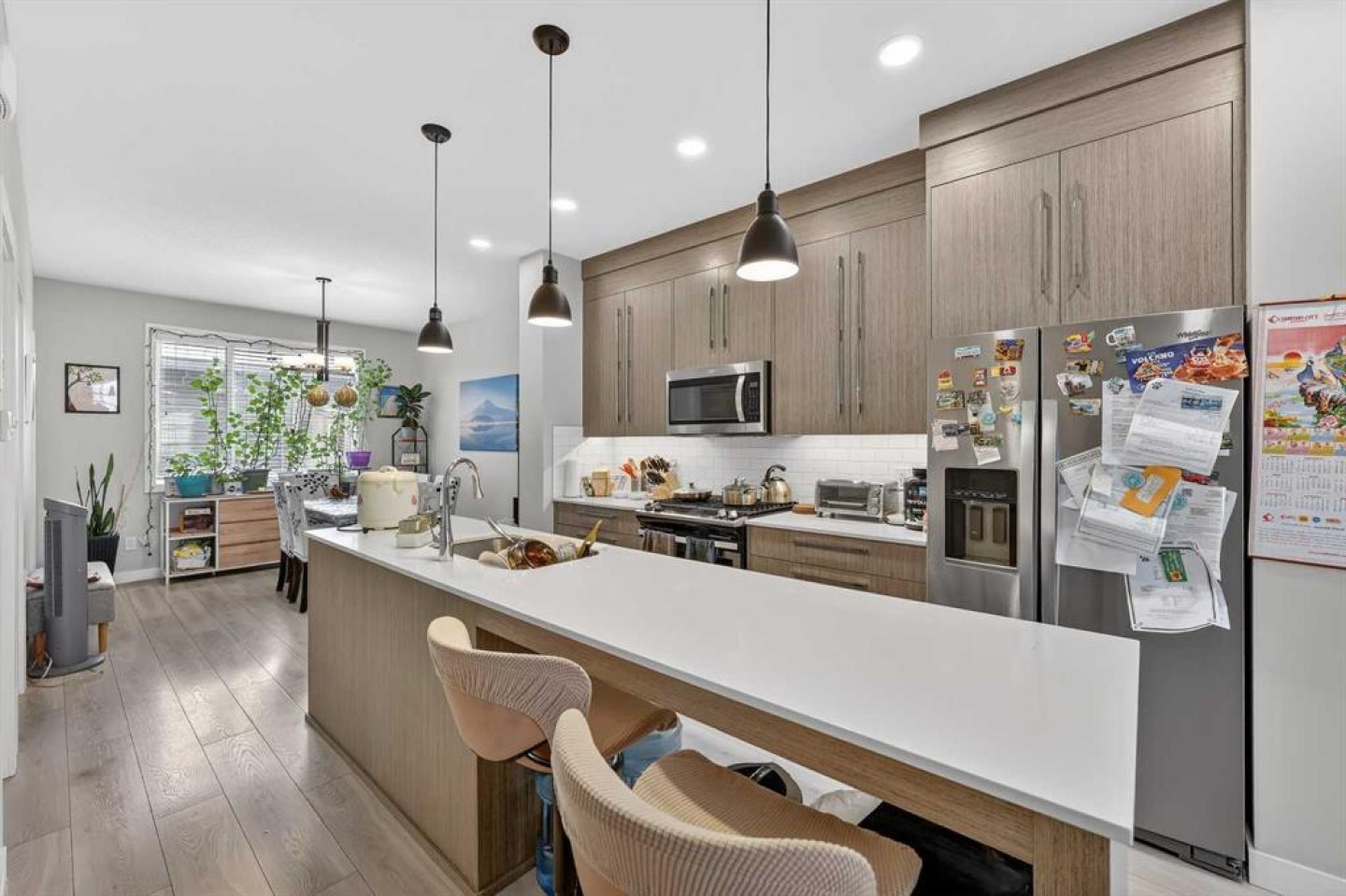 Welcome to this thoughtfully designed two-storey residence in the vibrant community of Cornerstone, where modern living meets long-term value. Featuring a fully permitted legal basement suite and a double detached garage, this home offers exceptional versatility for homeowners and investors alike. Set in one of the city’s fastest-growing neighbourhoods, the location delivers everyday convenience with close proximity to green spaces, upcoming schools, retail amenities, public transit, and quick connections to major routes. The main level is bright and inviting, anchored by an open layout that seamlessly connects the living area with a contemporary kitchen designed for both functionality and entertaining. Generous counter space, ample cabinetry, and a practical flow make it ideal for gatherings. A discreet powder room, rear mudroom, and direct access to the deck round out the main floor. Upstairs, you’ll find three comfortable bedrooms, including a spacious primary retreat featuring a walk-in closet and a luxurious five-piece ensuite. Laundry on the upper level adds a layer of everyday ease. The lower level has been professionally completed into a self-sufficient legal suite, complete with its own kitchen, bedroom, full bathroom, and in-suite laundry—perfect for generating rental revenue, accommodating extended family, or supporting multi-generational living. Outside, the double detached garage provides secure parking and extra storage, while the south-facing frontage allows natural light to pour into the home throughout the day. A polished property that checks all the boxes for lifestyle, income potential, and future growth. New Hail-resistent shingles and siding done in 2025. Can be purchase with other half of duplex, to make one self contained 4-plex with 2 titles. (128 Corner Meadow Gate NE - MLS A2283140)
