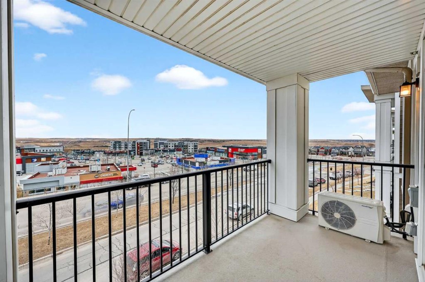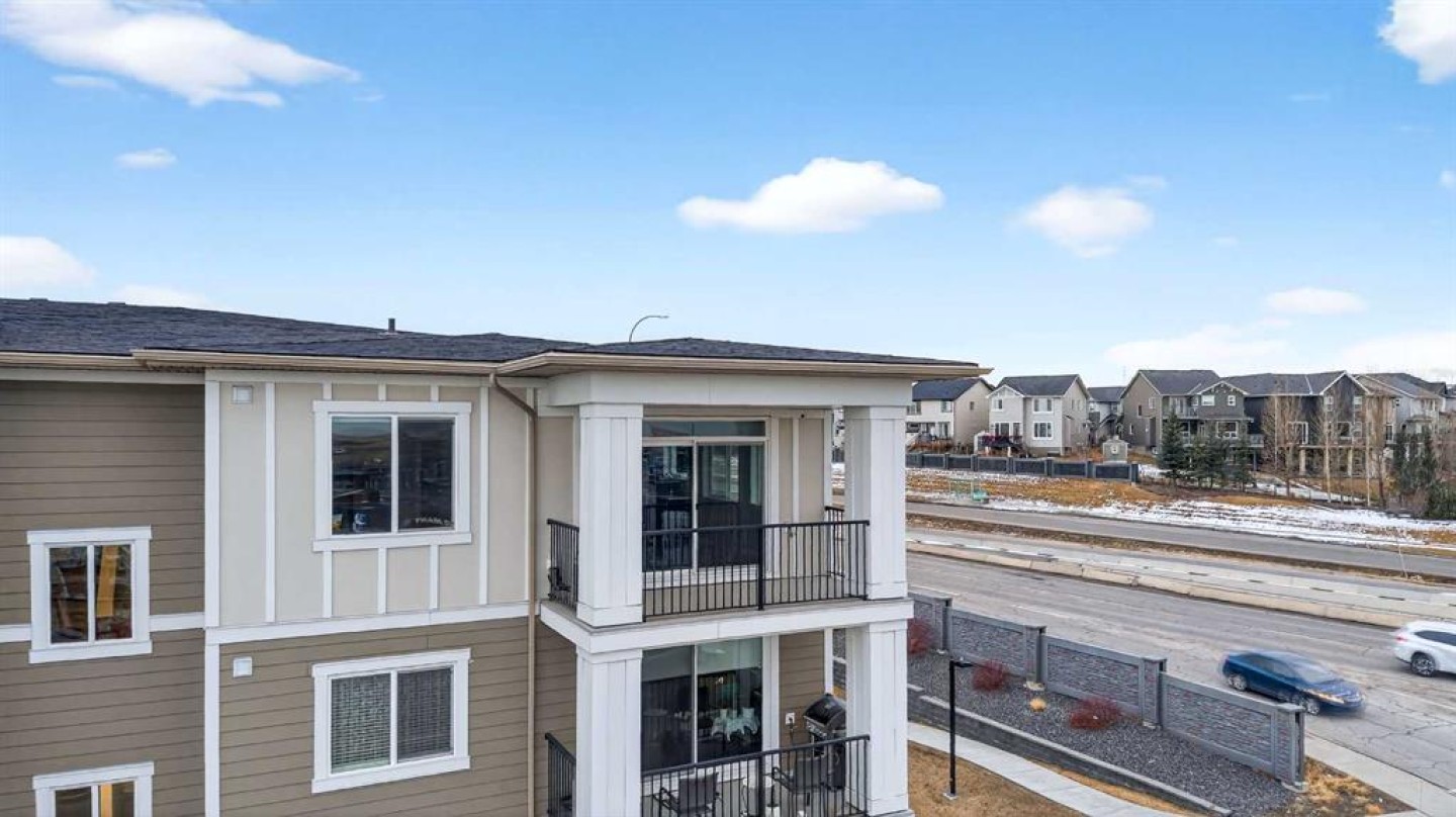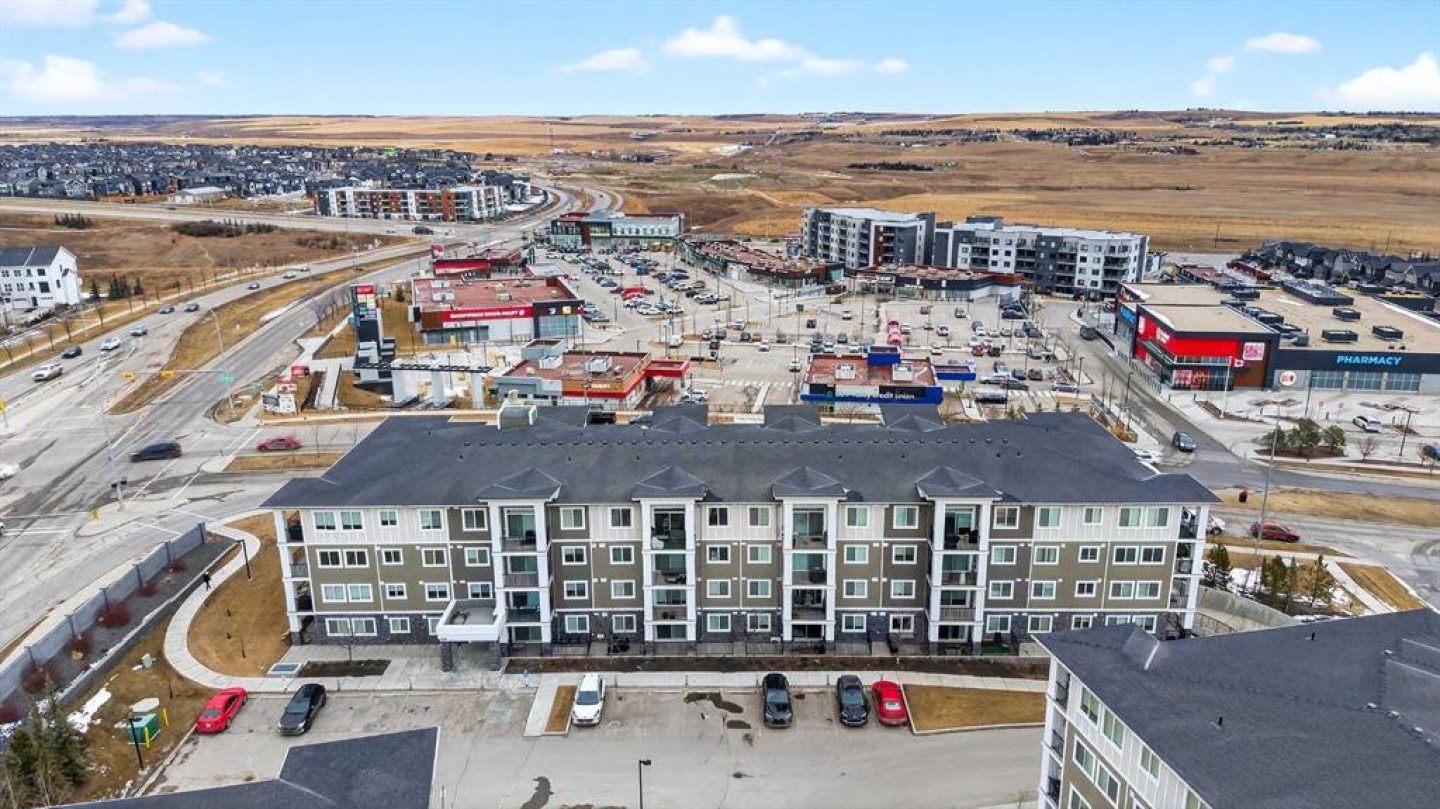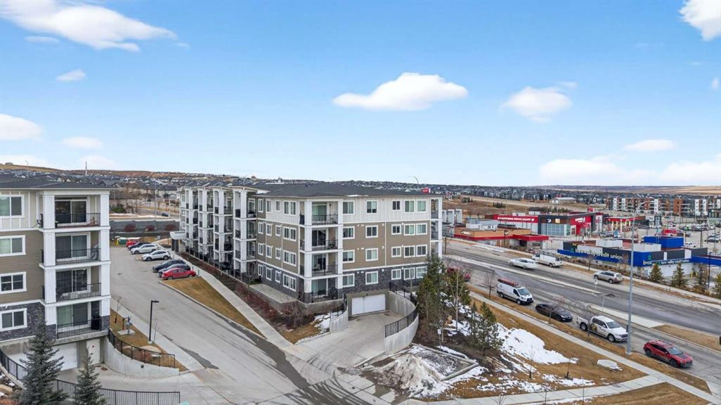 Welcome to refined top-floor living in the heart of NW Calgary’s Sage Hill. This spacious 2-bedroom, 2-bathroom corner residence offers 975 sq.ft. of thoughtfully designed living, ideal for professionals, families, or those seeking a well-appointed downsize without compromise. Positioned on the top floor, the home is flooded with natural light through multiple windows, enhanced by 9-foot ceilings that create an airy and comfortable sense of openness. Upon entry, a versatile den provides the perfect space for a home office, reading nook, formal dining or additional seating area. The open-concept living and kitchen area forms the heart of the home, anchored by an upgraded oversized island—ideal for everyday living and effortless entertaining. Finished with luxury vinyl plank flooring, a premium appliance package, and clean contemporary lines, the kitchen balances style with functionality. The living area is warmed by a sleek electric fireplace, creating a welcoming atmosphere year-round. The primary bedroom features a private ensuite, while the second bedroom offers flexibility for guests or work-from-home needs. Step outside to the private balcony and enjoy open, panoramic views—a quiet place to unwind at the end of the day. Additional highlights include air conditioning, custom built-in closet shelving for efficient storage, an extra large underground parking stall, assigned storage locker, and a location steps from the elevator for seamless access from parkade to suite. Thoughtfully designed and exceptionally well located, this top-floor corner unit offers a rare combination of space, light, and comfort. Whether you’re entering the market or simplifying your lifestyle, this home delivers a balanced, low-maintenance living experience in one of NW Calgary’s most connected communities. Call your favourite Realtor to book a private showing today!