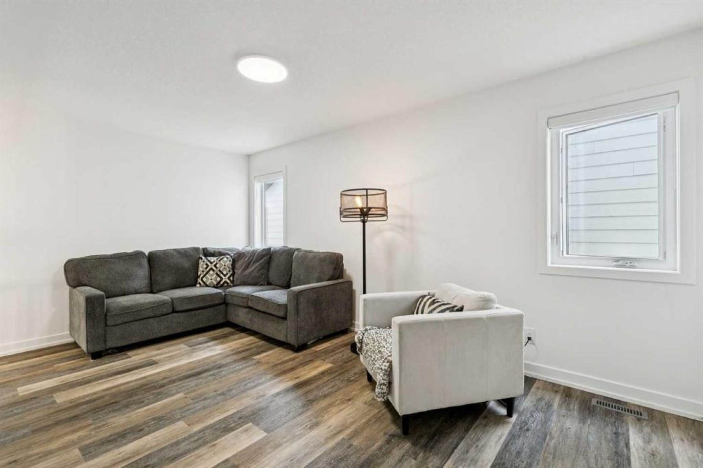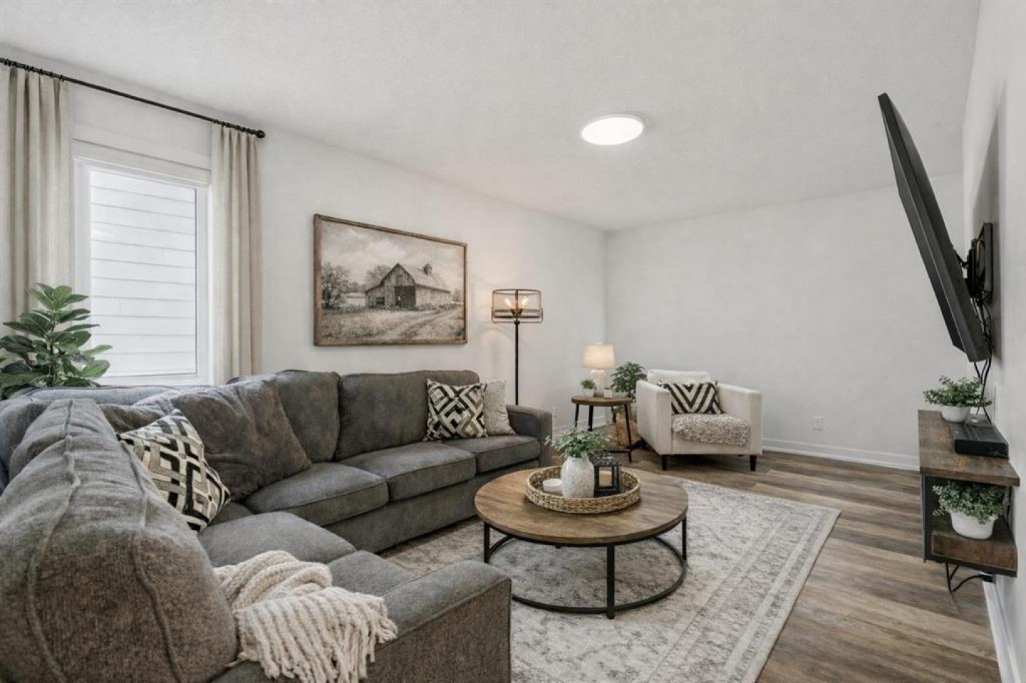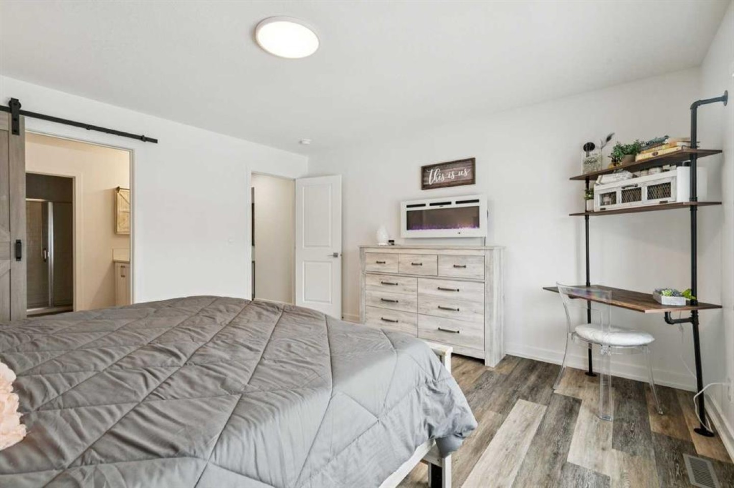 This new but better-than-new home is located in the award-winning community of Wildflower by Minto Communities, voted Canada’s Best New Community in 2025. Offering over 2,400 sq ft of extensively upgraded living space and a TRIPLE CAR GARAGE, you may have just found your new home. The rare three-car tandem garage provides exceptional space for vehicles, storage, or hobbies and includes a dedicated ELECTRIC VEHICLE CHARGER—a highly sought-after upgrade that future-proofs the home for modern living. Thoughtfully designed throughout, this residence features an ideal layout with FOUR OVERSIZED BEDROOMS, a large upper bonus room, and an UNFINISHED WALK OUT BASEMENT ready for future development. Curb appeal is immediate with a durable HARDIE BOARD EXTERIOR, PERMANENT OUTDOOR SOFFIT LIGHTING, and an oversized concrete front porch—and this is just the beginning. Inside, luxury vinyl plank flooring flows throughout both the main and upper levels, creating a cohesive and contemporary feel. The expansive open-concept main floor is anchored by a beautifully designed kitchen with abundant cabinetry, generous counter space, and UPGRADED APPLIANCES well beyond builder standard. The dining area and bright living room are perfectly positioned to capture the home’s ELEVATED EAST-FACING VIEWS, while RUSTIC BARN DOORS throughout the main level add warmth and character. A versatile MAIN FLOOR DEN is ideal for a home office or flex space, and a thoughtfully designed mudroom adds everyday convenience. Upstairs, the layout continues to impress. The primary suite is privately tucked away down its own hallway, creating a peaceful retreat complete with a massive walk-in closet and a beautifully finished ensuite offering dual vanities and a walk-in shower. All three additional bedrooms are generously sized, and the upper family room provides an inviting gathering space for movie nights or playtime. The upper main bathroom is thoughtfully designed with dual sinks and a separate enclosed tub/shower area, making busy mornings seamless for families. Upstairs laundry adds another layer of function to this well-planned level. The outdoor living space is equally impressive, featuring a Duradek-finished back deck with stunning east-facing views over the city, perfect for morning coffee or evening relaxation. The fenced and landscaped backyard offers both privacy and usability, while the walk-out basement presents endless opportunities for future customization. Additional upgrades include central air conditioning, completing this exceptional home. Located in Wildflower, residents enjoy access to the community’s signature Hillside Hub, featuring playgrounds, walking paths, and scenic lookout points—designed to foster connection, wellness, and an active lifestyle. This is a rare opportunity to own a truly turnkey home with premium upgrades in one of Airdrie’s most desirable communities.