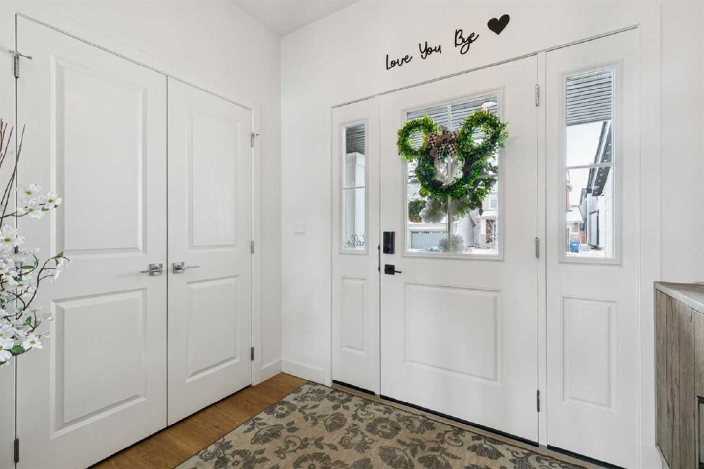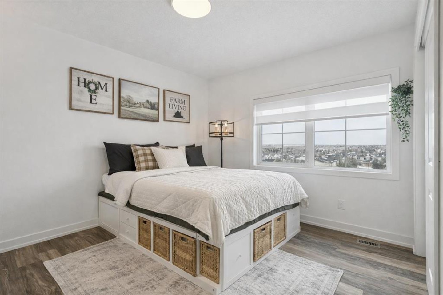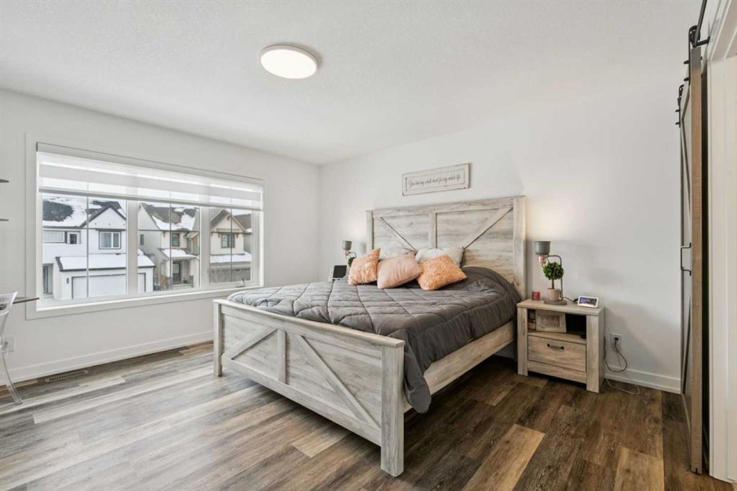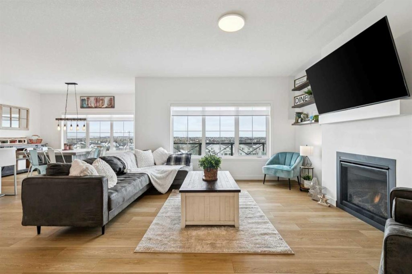 This new but better-than-new home is located in the award-winning community of Wildflower by Minto Communities, voted Canada’s Best New Community in 2025. Offering over 2,400 sq ft of extensively upgraded living space and a TRIPLE CAR GARAGE, you may have just found your new home. The rare three-car tandem garage provides exceptional space for vehicles, storage, or hobbies and includes a dedicated ELECTRIC VEHICLE CHARGER—a highly sought-after upgrade that future-proofs the home for modern living. Thoughtfully designed throughout, this residence features an ideal layout with FOUR OVERSIZED BEDROOMS, a large upper bonus room, and an UNFINISHED WALK OUT BASEMENT ready for future development. Curb appeal is immediate with a durable HARDIE BOARD EXTERIOR, PERMANENT OUTDOOR SOFFIT LIGHTING, and an oversized concrete front porch—and this is just the beginning. Inside, luxury vinyl plank flooring flows throughout both the main and upper levels, creating a cohesive and contemporary feel. The expansive open-concept main floor is anchored by a beautifully designed kitchen with abundant cabinetry, generous counter space, and UPGRADED APPLIANCES well beyond builder standard. The dining area and bright living room are perfectly positioned to capture the home’s ELEVATED EAST-FACING VIEWS, while RUSTIC BARN DOORS throughout the main level add warmth and character. A versatile MAIN FLOOR DEN is ideal for a home office or flex space, and a thoughtfully designed mudroom adds everyday convenience. Upstairs, the layout continues to impress. The primary suite is privately tucked away down its own hallway, creating a peaceful retreat complete with a massive walk-in closet and a beautifully finished ensuite offering dual vanities and a walk-in shower. All three additional bedrooms are generously sized, and the upper family room provides an inviting gathering space for movie nights or playtime. The upper main bathroom is thoughtfully designed with dual sinks and a separate enclosed tub/shower area, making busy mornings seamless for families. Upstairs laundry adds another layer of function to this well-planned level. The outdoor living space is equally impressive, featuring a Duradek-finished back deck with stunning east-facing views over the city, perfect for morning coffee or evening relaxation. The fenced and landscaped backyard offers both privacy and usability, while the walk-out basement presents endless opportunities for future customization. Additional upgrades include central air conditioning, completing this exceptional home. Located in Wildflower, residents enjoy access to the community’s signature Hillside Hub, featuring playgrounds, walking paths, and scenic lookout points—designed to foster connection, wellness, and an active lifestyle. This is a rare opportunity to own a truly turnkey home with premium upgrades in one of Airdrie’s most desirable communities.