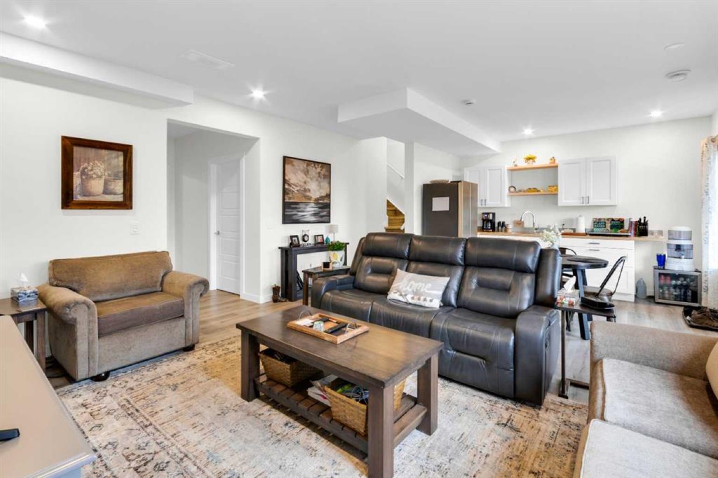 Located in the prestigious community of Rivercrest, this beautifully designed home offers nearly 3,500 sqft. of finished living space, thoughtfully crafted for both comfort and elevated everyday living. Flooded with natural light and positioned to capture stunning views of downtown Cochrane and mountain views to the west. This home features 3 spacious bedrooms on the upper floor plus a main-floor flex room, ideal as a private home office or 4th bedroom with the added versatility of a Murphy bed, along with a 1-bedroom suite on the lower level. The main level welcomes you with 9 ft ceilings, a spacious foyer and a seamless open-concept layout anchored by expansive windows and a large sliding patio door. The kitchen is both stylish and functional, featuring an expansive 8’ island, ample counter space, and built-in appliances, perfect for entertaining and everyday living. The living and dining areas are warmed by a cozy fireplace, creating an inviting atmosphere for gatherings and quiet evenings alike. The fully developed lower-level one-bedroom walk-out suite features 9 ft ceilings, a kitchenette, large windows, a bright open feel, beautiful ensuite bathroom, ample storage and a separate entrance, offering exceptional flexibility for extended family, guests, or as extra rental income. Upstairs, a centrally located bonus room provides the ideal space for family movie nights or a children’s play area. The primary retreat offers a serene escape, complete with a spa-inspired ensuite featuring double sinks, a tiled shower, and a soaker tub. For added convenience, the laundry room connects directly to the primary walk-in closet. Two additional bedrooms are thoughtfully positioned alongside a 5-piece bathroom with a separate sink area and a charming reading nook. Step outside to enjoy the evening sun and panoramic views of the town, surrounding hills, and mountain range from the oversized back deck. Set on a quiet street in a boutique community known for its scenic surroundings and future school site, Rivercrest offers a strong sense of neighbourhood and exceptional access to downtown Cochrane, Spray Lakes Recreation Centre, and an easy commute to Calgary.