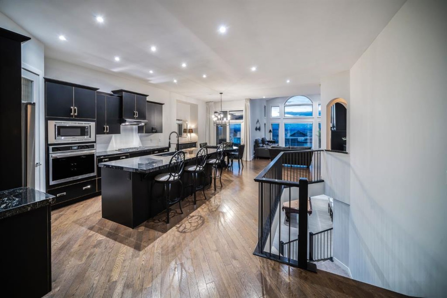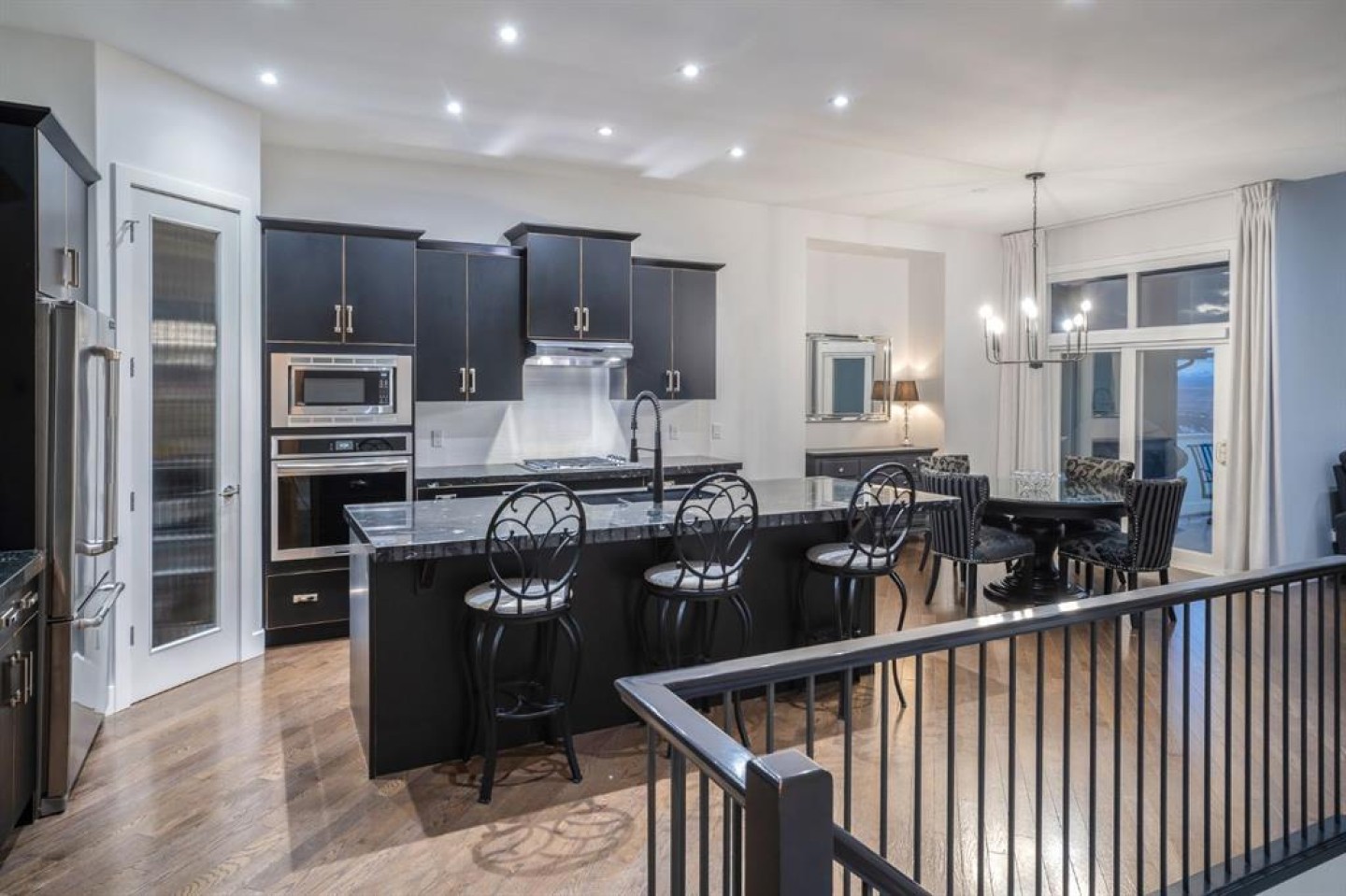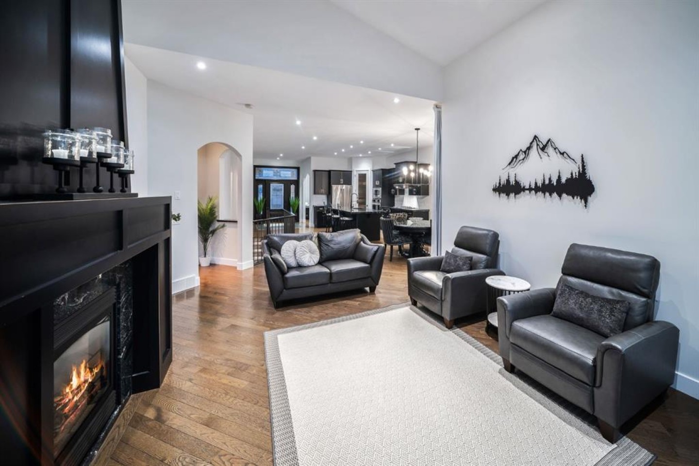 Welcome to refined living in Gleneagles Estates, a premier golf course community where design, comfort, and natural beauty converge. Offering over 3,190 sq. ft. of thoughtfully designed living space, this stunning home features 3 bedrooms, 2.5 bathrooms, and a west-facing backyard with mountain views, backing onto a peaceful green belt. From the moment you step inside, you’re greeted by soaring 10-foot ceilings that rise to an impressive 14 feet, expansive windows, and an abundance of natural light that flows effortlessly throughout the home. Rich hardwood flooring and an open, airy layout create a warm yet sophisticated atmosphere. The heart of the home is the chef-inspired kitchen, complete with a built-in gas cooktop, expansive cabinetry, and a large central island that anchors the space. The kitchen flows seamlessly into the dining area and out to a terrace—perfect for al fresco dining while enjoying sunset views. The adjacent living room is both inviting and elegant, centered around a cozy gas fireplace ideal for gathering and relaxing. The primary retreat is a true sanctuary, featuring a spa-like ensuite designed for rest and rejuvenation. Thoughtful finishes and a calming ambiance make it the perfect place to unwind at the end of the day. The walkout lower level is equally impressive, offering a spacious recreation room, wet bar, two additional bedrooms, and a full bathroom—an ideal setup for guests, entertaining, or multigenerational living, all while maintaining direct access to the serene outdoor setting. Additional highlights include central air conditioning, a double attached garage, and the unmatched lifestyle of living in a sought-after golf course community surrounded by nature, pathways, and breathtaking scenery. This is more than a home—it’s a lifestyle defined by views, space, and effortless elegance.