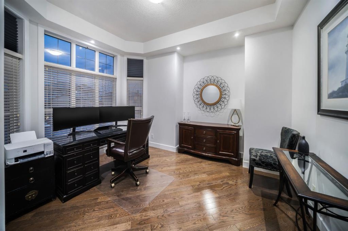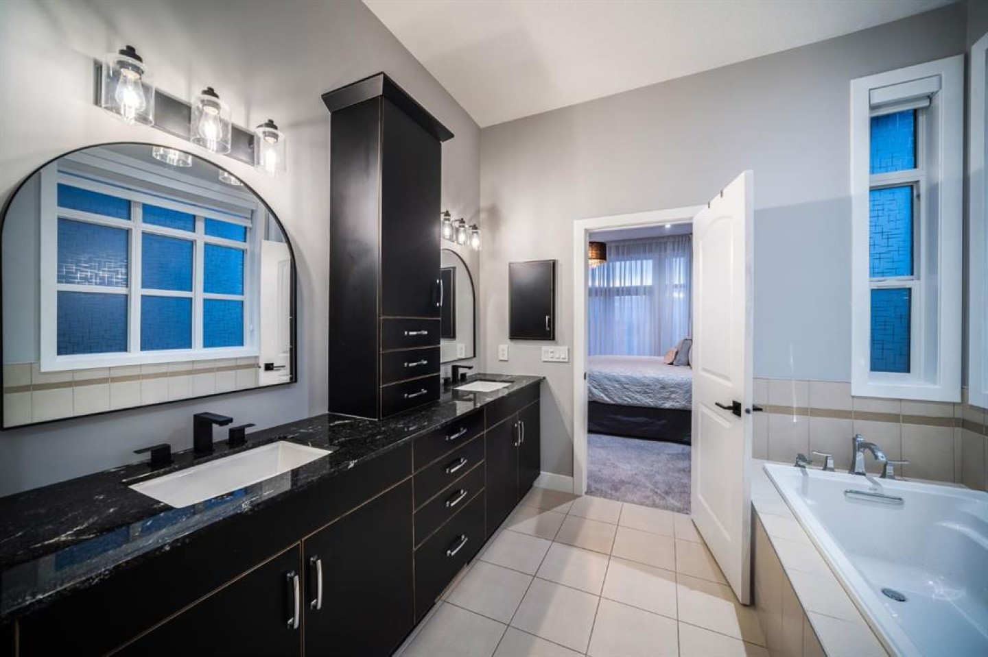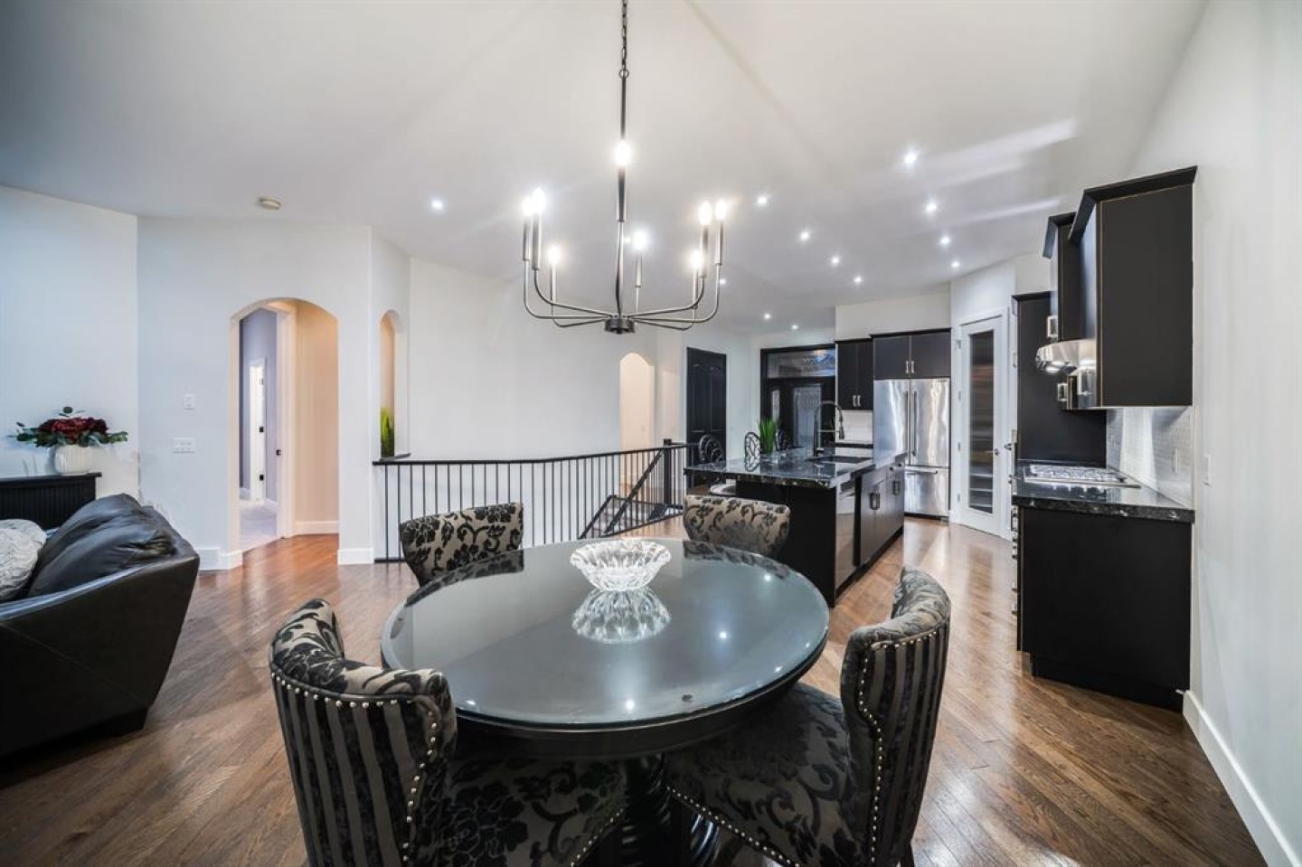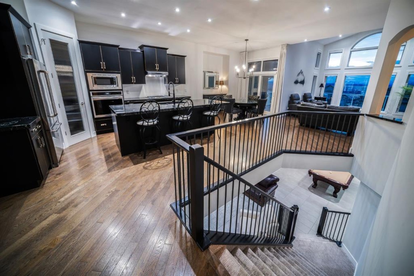 Welcome to refined living in Gleneagles Estates, a premier golf course community where design, comfort, and natural beauty converge. Offering over 3,190 sq. ft. of thoughtfully designed living space, this stunning home features 3 bedrooms, 2.5 bathrooms, and a west-facing backyard with mountain views, backing onto a peaceful green belt. From the moment you step inside, you’re greeted by soaring 10-foot ceilings that rise to an impressive 14 feet, expansive windows, and an abundance of natural light that flows effortlessly throughout the home. Rich hardwood flooring and an open, airy layout create a warm yet sophisticated atmosphere. The heart of the home is the chef-inspired kitchen, complete with a built-in gas cooktop, expansive cabinetry, and a large central island that anchors the space. The kitchen flows seamlessly into the dining area and out to a terrace—perfect for al fresco dining while enjoying sunset views. The adjacent living room is both inviting and elegant, centered around a cozy gas fireplace ideal for gathering and relaxing. The primary retreat is a true sanctuary, featuring a spa-like ensuite designed for rest and rejuvenation. Thoughtful finishes and a calming ambiance make it the perfect place to unwind at the end of the day. The walkout lower level is equally impressive, offering a spacious recreation room, wet bar, two additional bedrooms, and a full bathroom—an ideal setup for guests, entertaining, or multigenerational living, all while maintaining direct access to the serene outdoor setting. Additional highlights include central air conditioning, a double attached garage, and the unmatched lifestyle of living in a sought-after golf course community surrounded by nature, pathways, and breathtaking scenery. This is more than a home—it’s a lifestyle defined by views, space, and effortless elegance.