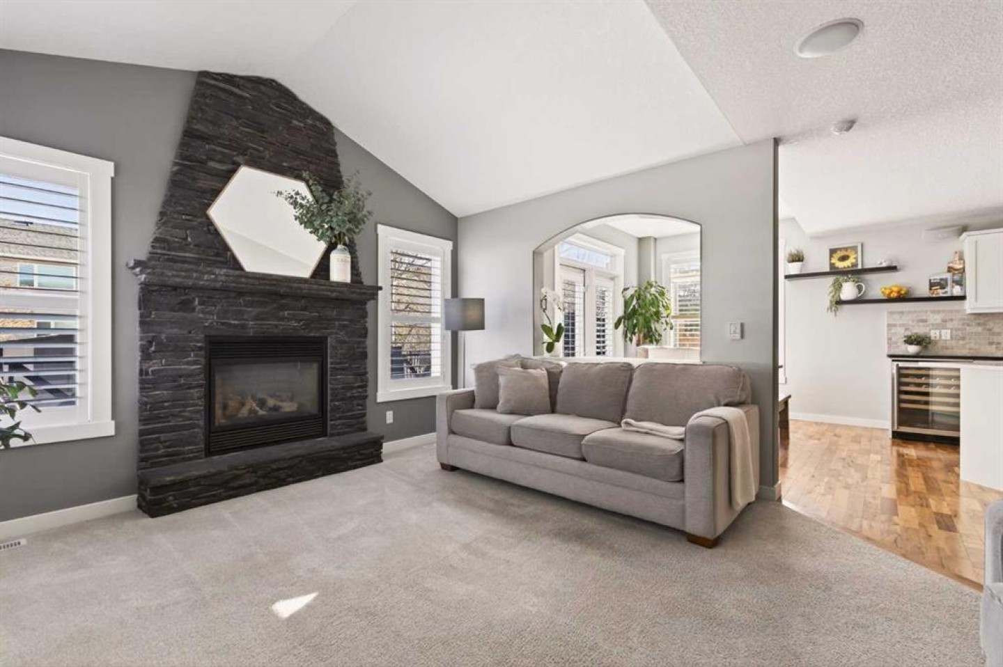 Proudly presenting one of the finest homes in Cougar Ridge, 4 Cougarstone Square. This former show home by the prestigious Morrison Homes is situated on a prime corner lot and offers over 2,900 square feet of beautifully developed living space. The bright open concept main floor is highlighted by soaring vaulted ceilings, hardwood flooring, and custom paint throughout. The kitchen is both elegant and functional, featuring a stainless steel Brigade refrigerator, Brigade five burner gas range, quartz countertops, a large centre island, white solid wood cabinetry, and a corner pantry. Thoughtfully designed for first time buyers, families, and downsizers alike, the main level offers a welcoming living room with gas fireplace, flexible spaces ideal for a home office or secondary dining room, and a spacious mudroom with built ins providing exceptional storage. Upstairs features an ideal family layout with a large bonus room showcasing vaulted ceilings, two generous bedrooms, and a spacious primary retreat complete with a generous walk in closet and tasteful ensuite. The fully developed basement is an entertainer’s dream, featuring durable cork flooring, a wet bar, expansive built in entertainment wall, gas fireplace, projector, games area, and a full bathroom. This property boasts excellent storage throughout the floorplan, with even more practical storage located in the basement. Additional highlights include Hunter Douglas blinds throughout, air conditioning, freshly steamed carpets, built-in interior and exterior speakers, an upgraded furnace filtration system, radon mitigation installed in 2024, and a new privacy fence added in 2018. Cougar Ridge offers excellent education options with public school catchments including Cougar Ridge, West Springs, and the highly sought after Ernest Manning, along with respected Catholic and private alternatives nearby such as St. Joan of Arc, The Waldorf, and Calgary French and International School. The location also provides easy access to Stoney Trail and the full range of shopping, dining, and everyday amenities in West District and the Aspen area. Book your private showing today or visit one of the open houses on Saturday February 7 or Sunday February 8 from 12:00 – 2:00 pm.