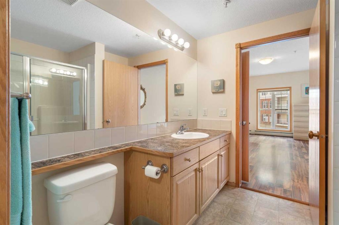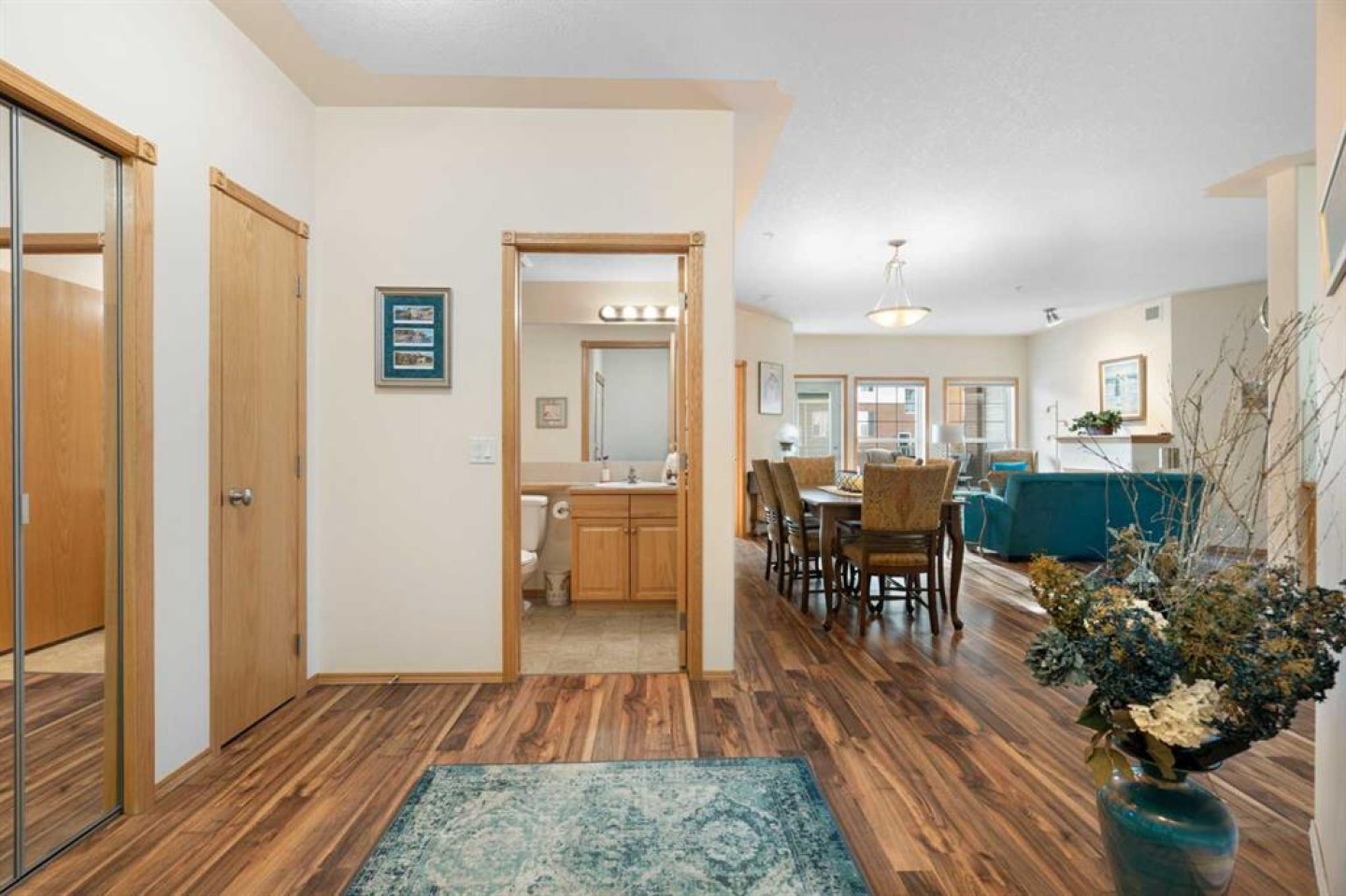 Welcome to Country Estates on the Cove, a well-managed 40+ adult community offering an exceptional blend of comfort, convenience, and resort-style amenities. This bright corner unit with 2 bedrooms and 2 full bathrooms is quite spacious with over 1300 sq ft of air conditioned living space. This former show home features a thoughtfully designed layout and includes one titled underground parking stall along with an assigned storage locker. Inside, the welcoming entryway opens into a spacious open-concept living and dining area, where a cozy fireplace creates an inviting atmosphere. Laminate flooring flows throughout the main living spaces, enhancing the home’s clean and modern feel. The kitchen is both functional and welcoming, with a corner pantry, a newer microwave and a breakfast bar, ideal for casual dining or entertaining. The primary bedroom offers a relaxing retreat with plenty of room to unwind with a large walk-in closet with built-in organizers. The lovely private 3 piece ensuite has an oversized walk-in shower and lots of counterspace and storage. The second bedroom is generously sized and located near the 4-piece main bathroom, perfect for guests or a home office. A spacious laundry room includes a stackable newer washer and dryer and ample storage space. Residents of Country Estates on the Cove enjoy access to an impressive array of amenities, including a fully equipped fitness centre, indoor pool, hot tub, recreation rooms, games area with billiards & shuffleboard, a bowling alley, theatre/movie room, libraries, woodworking shop, and crafts room. Guest suites are available for visiting family and friends, and the buildings also offers several elevators and a convenient car wash bay. Ideally located near shopping, parks, ponds, green spaces, and scenic walking paths, with easy access to Deerfoot Trail, Stoney Trail, public transit, and the airport, this home offers low-maintenance living in a welcoming, amenity-rich community. This is the perfect retirement home without sacrificing space!