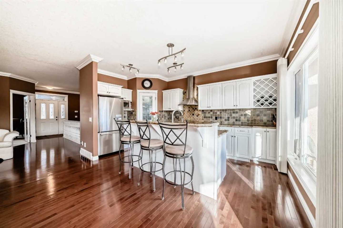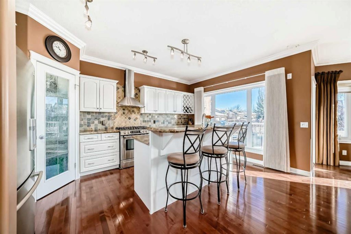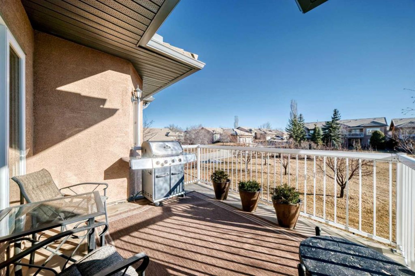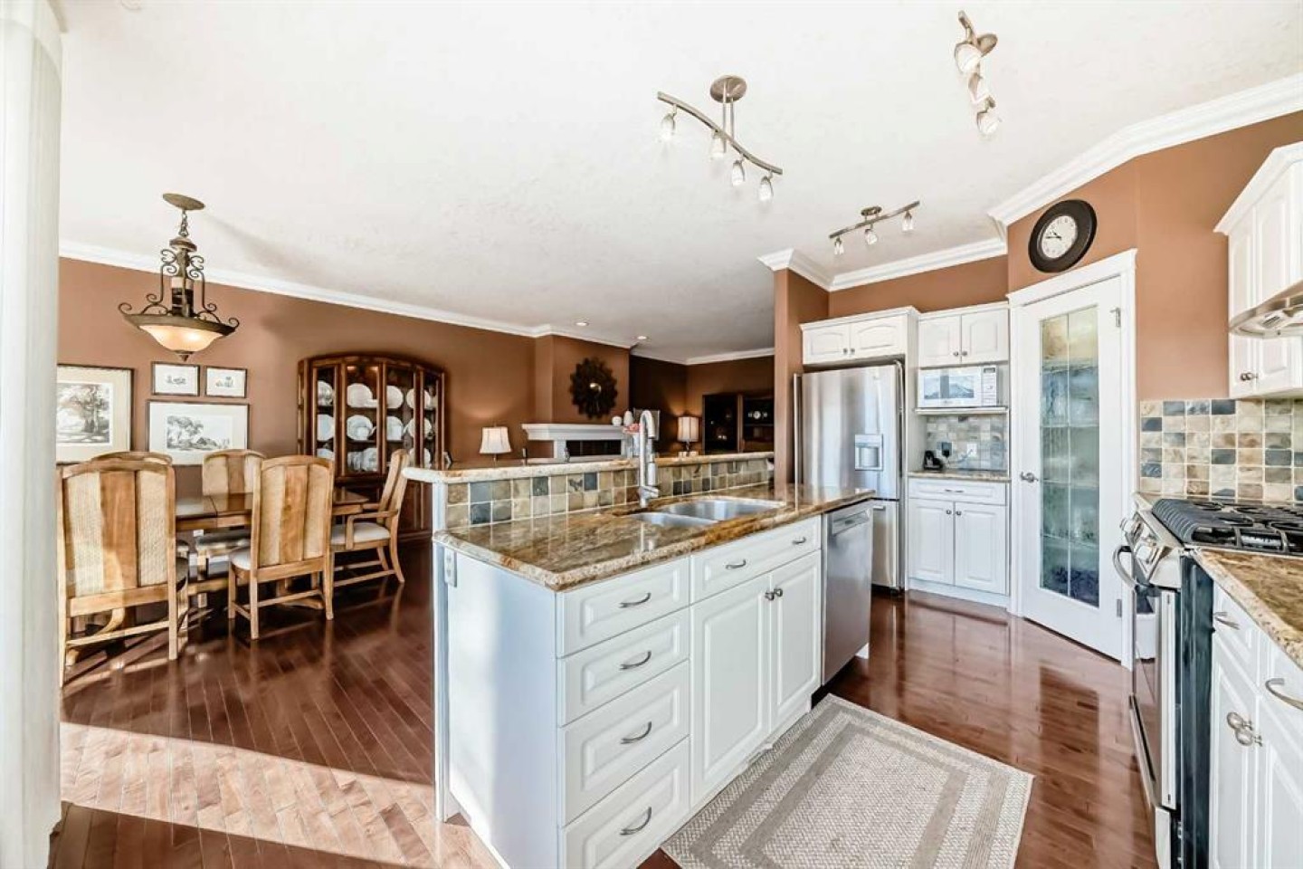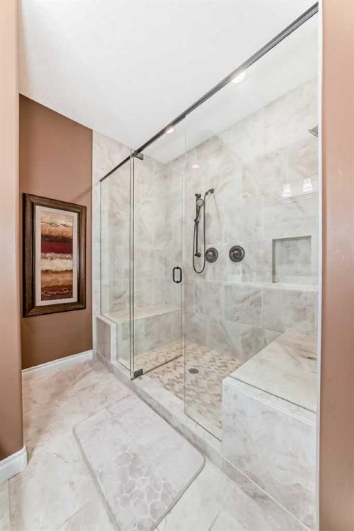 Every downsizer in South Calgary cries out: ----"If you ever find a REDONE, WALKOUT BUNGALOW, BACKING THE PARK in Shannon Estates Terrace -- CALL US RIGHT AWAY, WE'LL BUY IT!" -- Justifiably so..... because Hearthstone Construction built with such timeless QUALITY: concrete tile roofing, heated flooring in the walkout basements, stucco exteriors, large windows, DOUBLE ATTACHED GARAGES, rounded corners/art alcoves, flat ceilings & pot lighting. This once renovated, 3 Bedroom (1+2), 2.5 bath VILLA, has almost 2400 ft2 of developed living space and overlooks a large green space with path system. Empty Nesters will love the open floorplan loaded with hardwood floors & Island kitchen: granite countertops, diamond slate tile backsplash, stainless appliance package (Bosch Gas Range + Zephyr hoodfan) & corner pantry. Large living and dining area with hardwood floor, gas fireplace and private deck. Sunny west facing carpeted den with large arched window. Large primary bedroom with walk-in closets (facing park). Ensuite bath has his/her sinks, espresso cabinetry, tiled shower stall with glass, soft bevelled granite countertops and separate water closet. Laundry room off DOUBLE ATTACHED GARAGE with 2pc bath. Fabulous walkout basement with HEATED FLOORS, 2nd gas fireplace (mantle + tile surround), built-in entertainment & refreshment centre/wet bar. 2 large bedrooms down (one faces park)with 4pc and storage area. ALL POLY-B HAS BEEN REMOVED. Recent upgrades include: Maytag Dryer and Freezer (2020), Garage Opener (2021), Daikin Furnace (2022), Bosch Dishwasher (2022), Garage Floor Epoxy (2023). This home has AIR CONDITIONING! 35+ age restriction in place. Open Houses this weekend, Feb 14th 2-4PM.