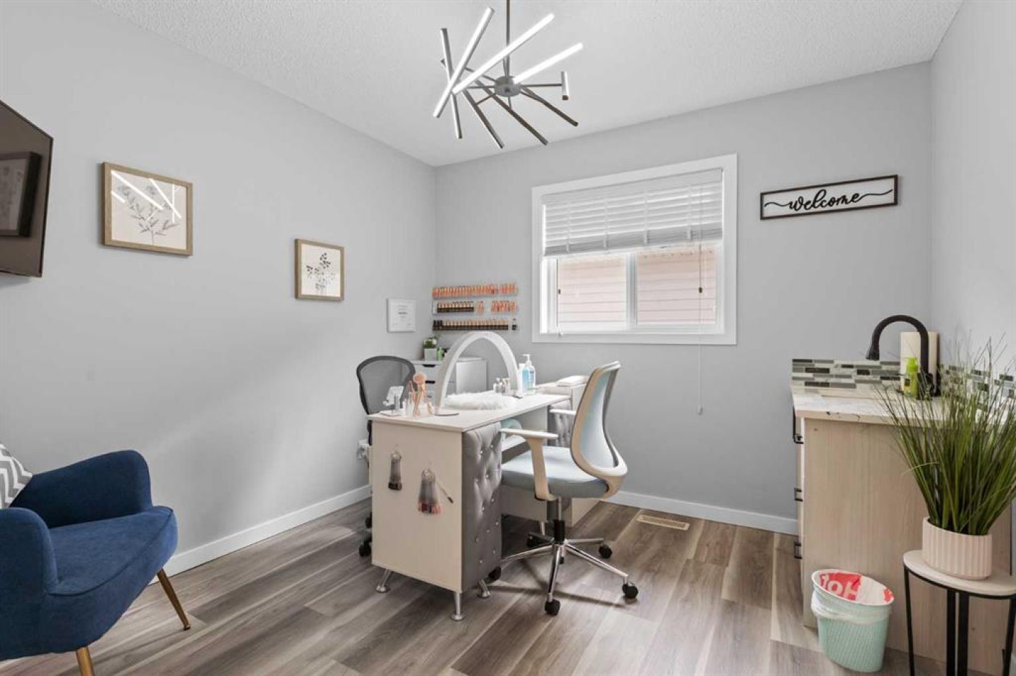 Hot tub, backyard fire pit, window coverings (blinds and sheers)