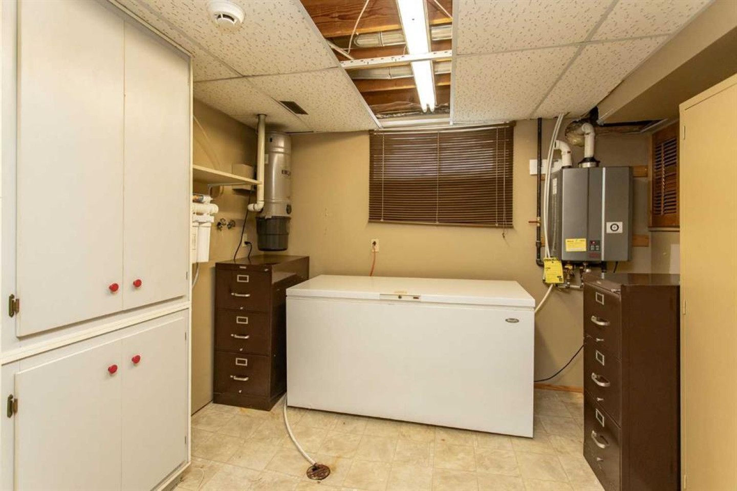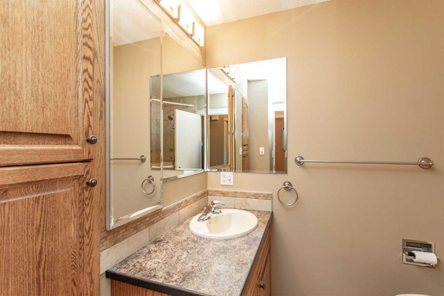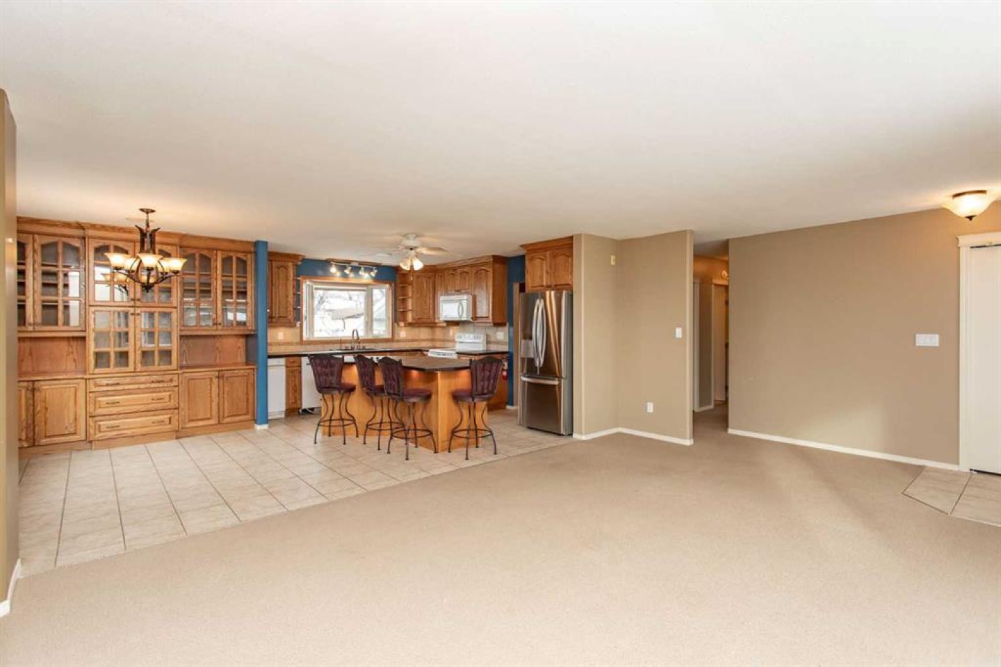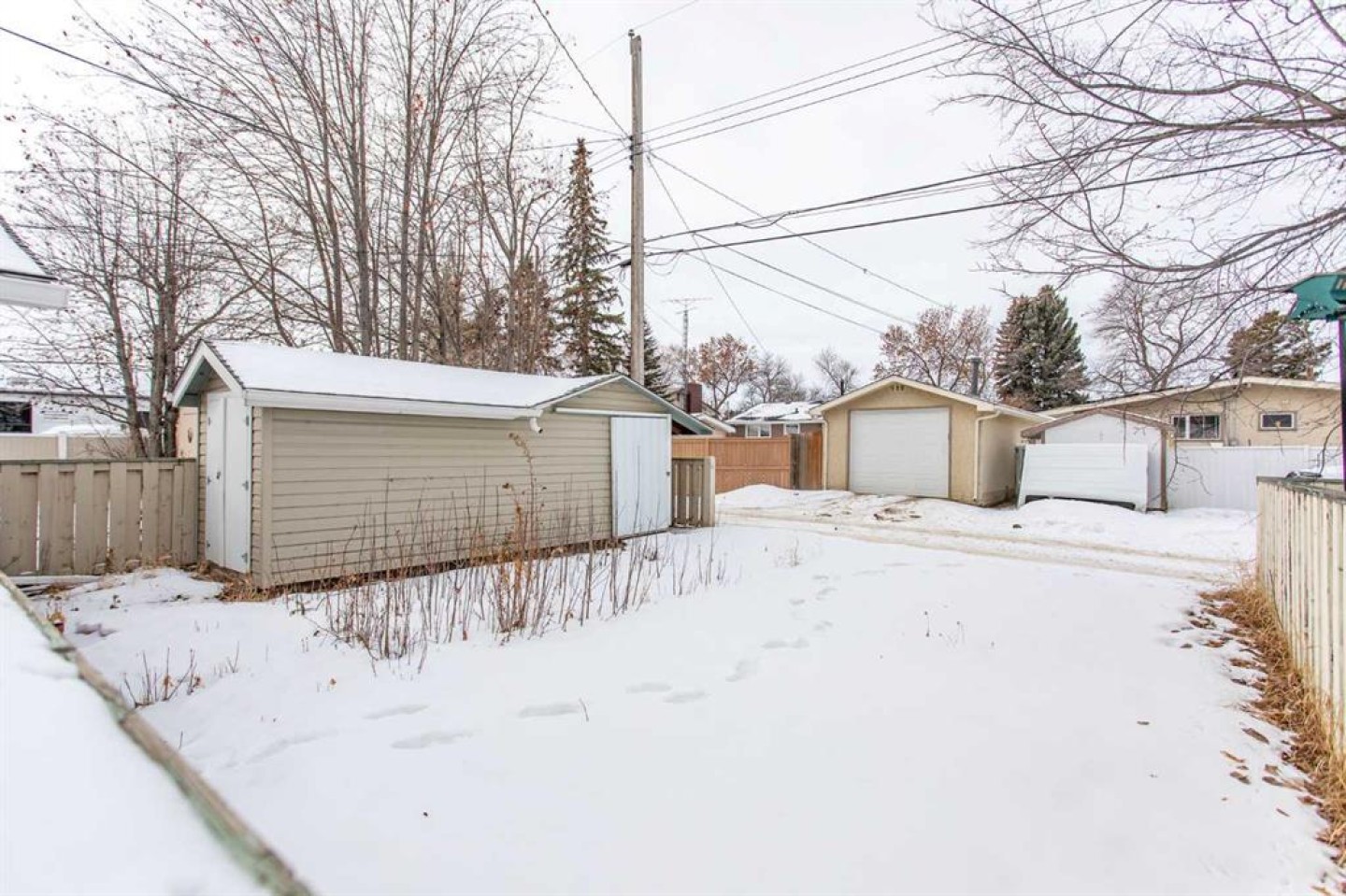 If you are seeking a home in the heart of downtown Lacombe, this well-maintained bungalow offers an excellent opportunity. As only the second owner since its construction in 1967, pride of ownership is evident throughout. The main floor features a spacious kitchen with ample countertop space, a dining area, and a comfortable living room. There are three bedrooms on this level, including a primary bedroom with a two-piece ensuite. One bedroom has been converted to accommodate main floor laundry but may be reverted to serve as a third bedroom if desired. The basement includes a fourth bedroom, a three-piece bathroom, and a large family/games room fitted with a dry bar. Built-in benches convert into double-size beds, making the area ideal for hosting guests. Notable updates include new countertops, cabinetry, backsplash, a large island, abundant oak cabinetry, custom built-ins, modern tile flooring, and the majority of windows replaced. Additional insulation was also added when the siding was updated. Outdoor amenities feature a covered patio with a wood-burning brick fireplace, perfect for use during spring, summer, and autumn. The property includes a single-car garage, fenced yard, garden shed, garden area, and convenient back alley access. Shingles were replaced around 2015.