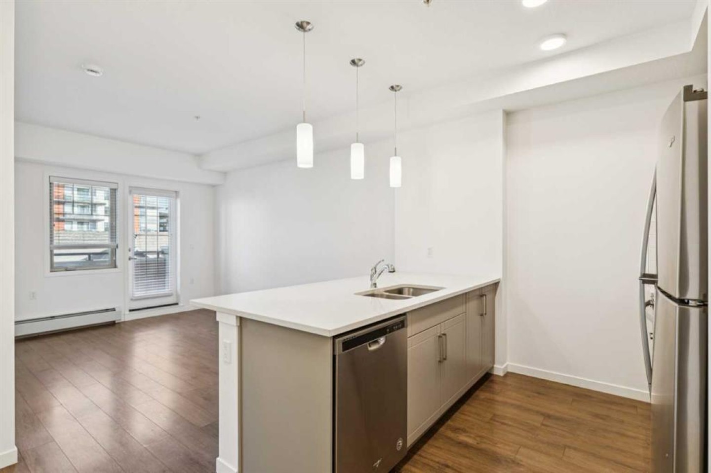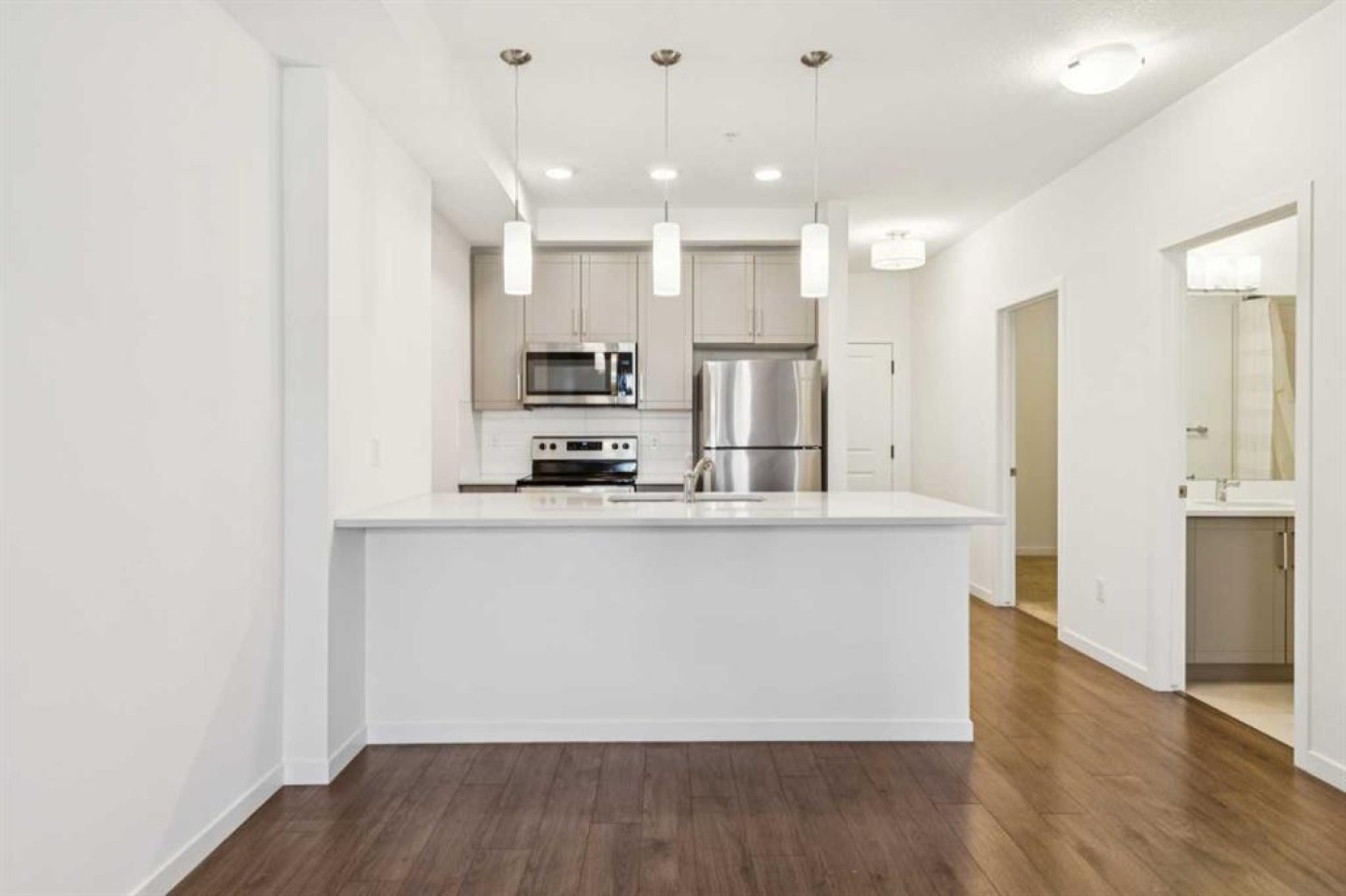 Lake Living in Mahogany just in time to enjoy summer at the beach...This stylish third floor two bedroom condo offers a functional open layout and timeless finishes, perfectly suited for comfortable everyday living. Inside, you will find high ceilings, neutral tones, ceiling height cabinetry, laminate flooring, quartz countertops, stainless steel appliances, and a spacious counter ideal for hosting or casual dining. Recently updated with brand new carpet and a paint refresh to be completely move in ready for new home owner...The thoughtful floorplan flows seamlessly to a generously sized covered balcony, creating an inviting extension of the living space. Titled underground parking and a separate storage cage complete the package with added convenience. Located in The Sandgate, a well managed, pet friendly building (with board approval), residents enjoy access to welcoming community spaces, a beautifully appointed fitness centre, and visitor guest suites. Just steps from the west beach entrance, this home offers year round access to Mahogany’s sought after lake lifestyle, along with nearby shops, restaurants, schools, and green space. We like that you can head out your door for a pizza at Bow Tie Pizza and down the street for fresh pasta and charcuterie at Soffritto OR additional dining, grocery etc is a short stroll from your door step. An excellent opportunity for first time buyers, investors, or those looking to right size while maintaining an exceptional lifestyle in one of Calgary’s most desirable lake communities. Don't forget that Mahogany lake living means access to both the Main Beach Club and also the West beach and also enjoy nature strolls around Mahogany's wetlands. We have it all here in Mahogany!