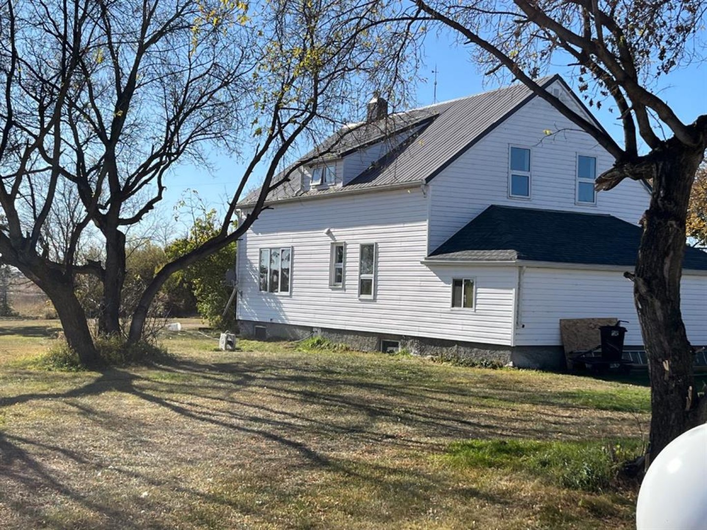 Acreage living just north of Maidstone and close to the river! Situated on 13.94 acres, this well-maintained 1,523 sq. ft. home offers the perfect blend of country space and functional outbuildings. The property features a new 50’ x 80’ Quonset with cement floor, an open 36’ x 64’ Quonset, a 24’ x 26’ double detached garage, plus a 12’ x 26’ attached garage—ideal for equipment, toys, or implement storage. The home has seen numerous recent updates including new tin roof, siding, windows, doors, flooring, bathrooms, paint, and appliances. The main level offers a spacious kitchen with mudroom, laundry, and sink, a comfortable living room, one bedroom with adjoining office and closet, and a fully renovated 4-piece bathroom. Upstairs you’ll find four additional bedrooms and a 2-piece bathroom with potential to convert to a 3-piece. Plenty of room to live, work, and store—all in a peaceful rural setting. A fantastic opportunity for those seeking acreage living with exceptional storage and versatility.