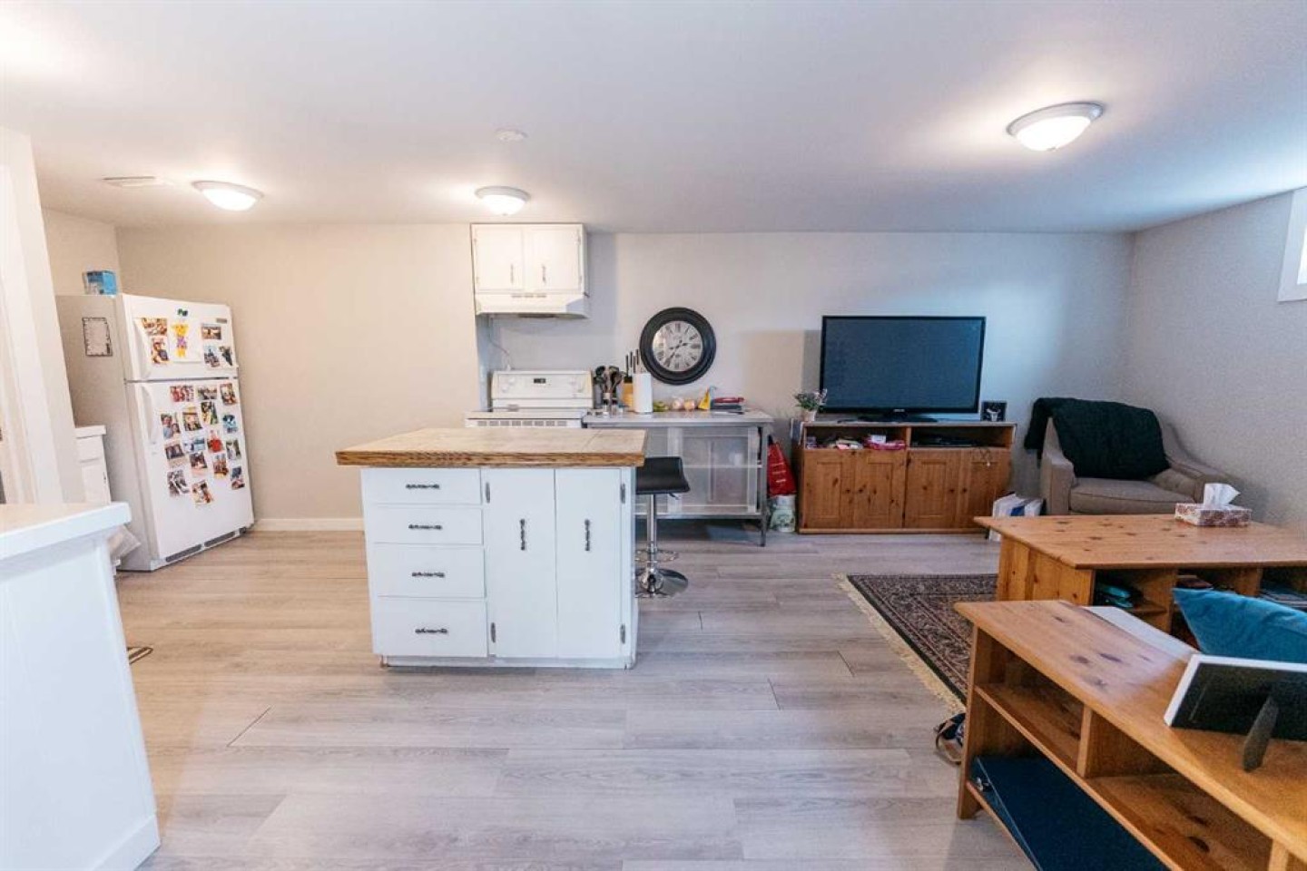 Basement-refrigerator, stove