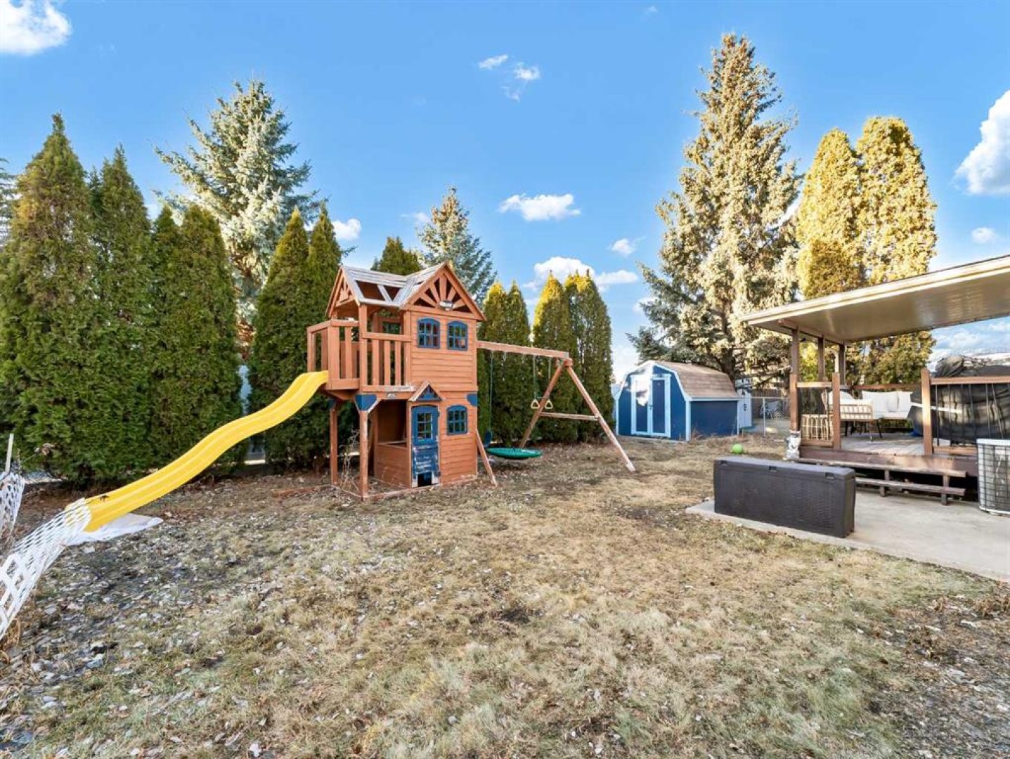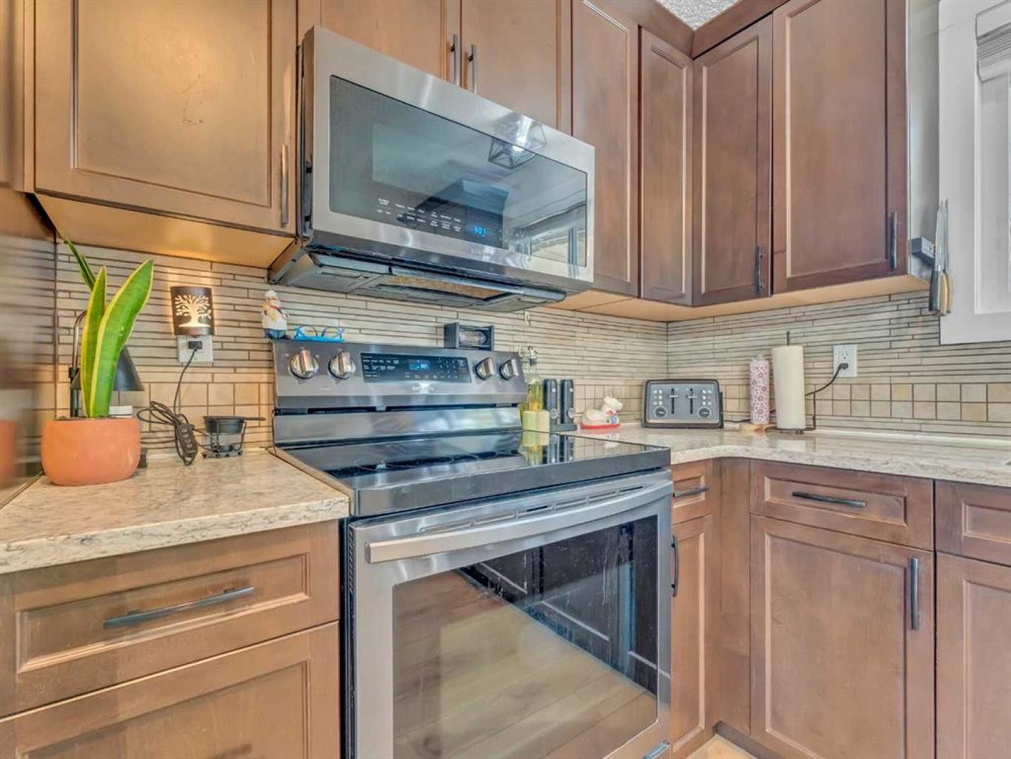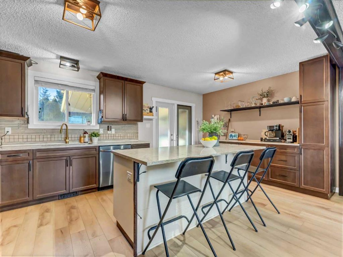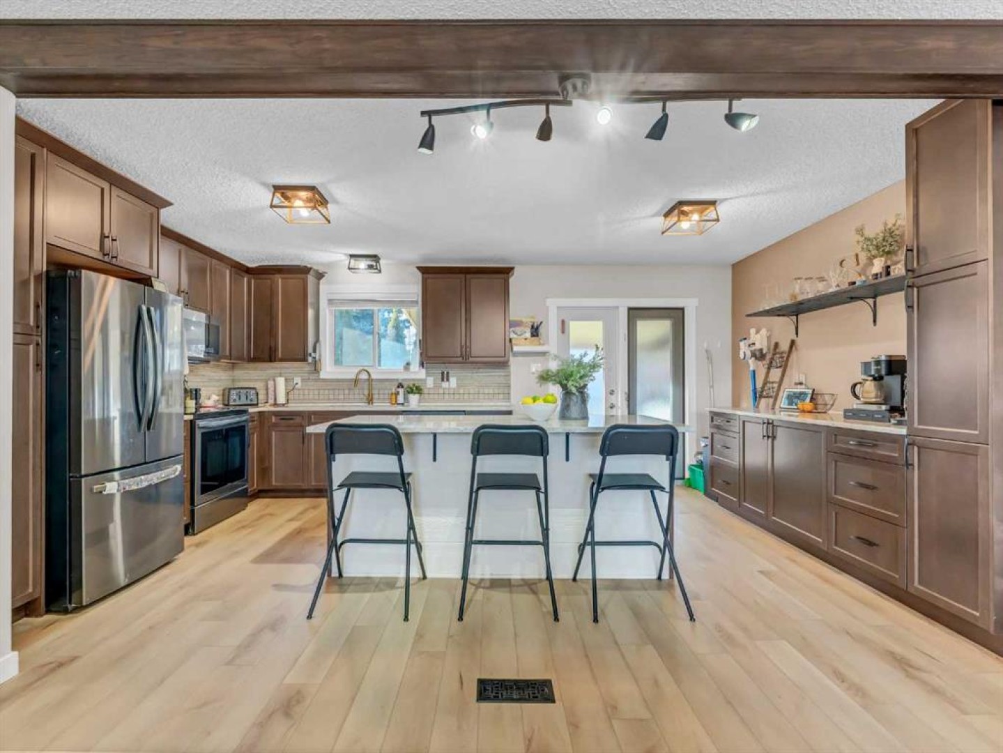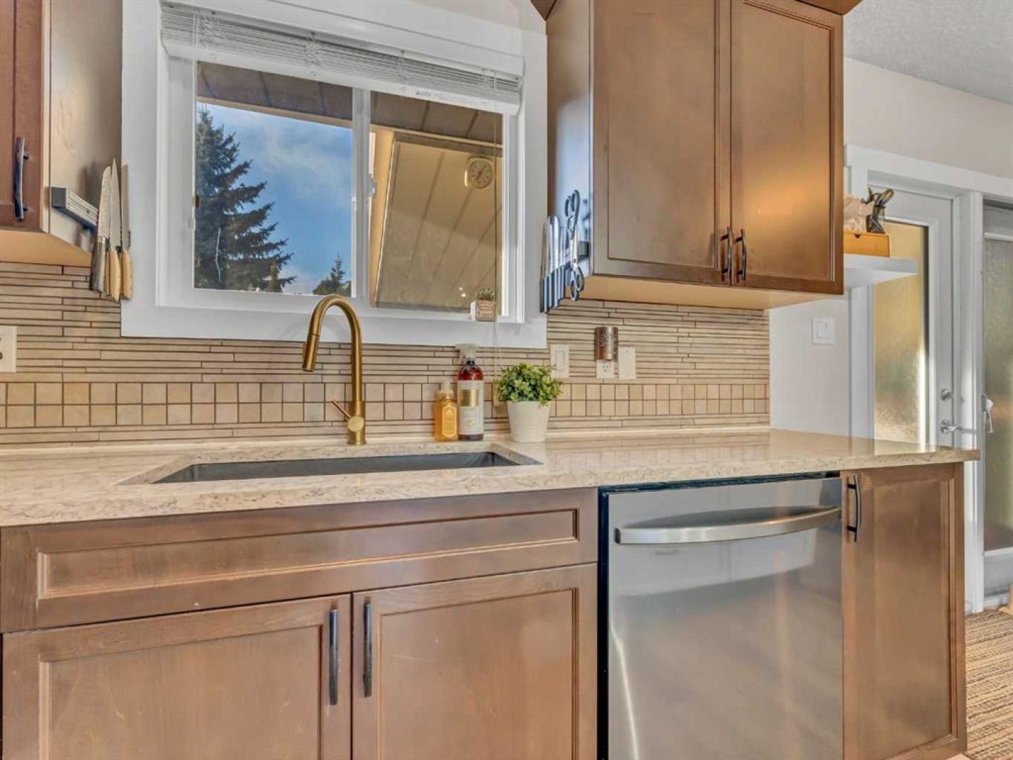 Move-In Ready, Nicely Renovated 4-Level Split with Heated Garage. Welcome to 103 Ewart Crescent SE—a beautifully renovated 4-level split offering 4 bedrooms, 3 bathrooms, and a layout that’s perfect for growing families. New, gorgeous vinyl plank flooring flows throughout the home, setting the tone for a bright and modern feel. The main floor features a huge front living room that opens seamlessly into the renovated kitchen (2020), creating an ideal space for everyday living and entertaining. The kitchen is a standout with tons of cabinetry and storage, newer appliances (2020), quartz countertops (2023), a large centre eat-at island, and a stylish coffee bar/serving station. Upstairs, you’ll find three bedrooms including the primary suite with a private 2-piece ensuite, along with the main 4-piece bathroom featuring a re-glazed tub. The third level adds even more functional living space with a large family room complete with a surround sound system—perfect for movie nights—plus a 3-piece bathroom, a spacious laundry/storage room, and direct access to the double attached heated garage. The lowest level offers exceptional flexibility with a large flex room ideal for a games room, gym, playroom, or additional living space, along with the fourth bedroom. Outside, the fully fenced backyard is ready for family fun with underground sprinklers, a covered deck, a shed, and a play centre—making it an ideal space for kids and pets. This thoughtfully updated home offers space, comfort, and functionality in a great SE location. A must-see for families looking for a move-in-ready home with room to grow.