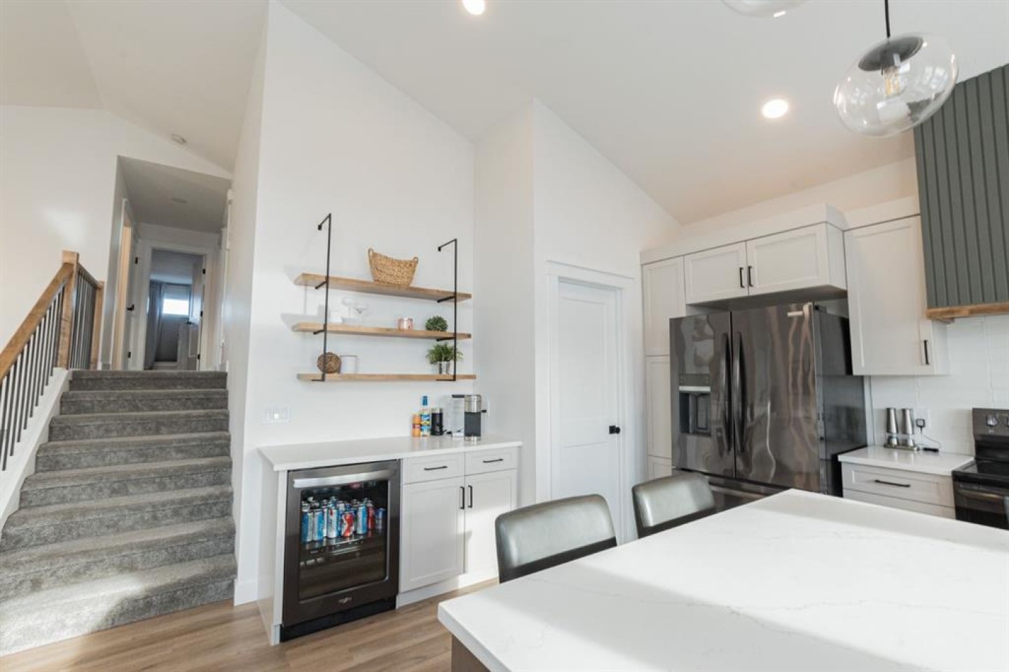 Located in the prestigious community of Arbour Hills, this impeccably finished modified bi-level showcases elegant design and premium features throughout, including a fully developed walkout basement. A generous front entry makes a striking first impression with a custom built-in coat rack, convenient 2-piece powder room, and main-floor laundry, while air conditioning and a heated garage add everyday comfort. The open-concept main level is both stylish and functional, anchored by a sophisticated living room fireplace and a chef-inspired kitchen featuring a large island, wine fridge, and an exceptional walk-in pantry with plug-ins. The upper level is highlighted by a serene primary retreat complete with a walk-in closet and a stunning 5-piece spa-like ensuite, alongside two additional bedrooms and a full bathroom. The fully finished walkout basement extends the living space with a fourth bedroom, 3-piece bathroom, and an expansive secondary living area with seamless outdoor access. Outside, the fully fenced and landscaped backyard is designed for relaxation and entertaining, featuring a two-tiered deck with gas line, elegant Regal railing, and stairs leading to a private hot tub with pergola, also accessible directly from the walkout. Additional upscale touches include powered custom blinds, exterior lighting and Christmas lights, and the assurance of 7 years remaining on the new home warranty. A truly refined home offering comfort, style, and lasting value. Book your showing today!