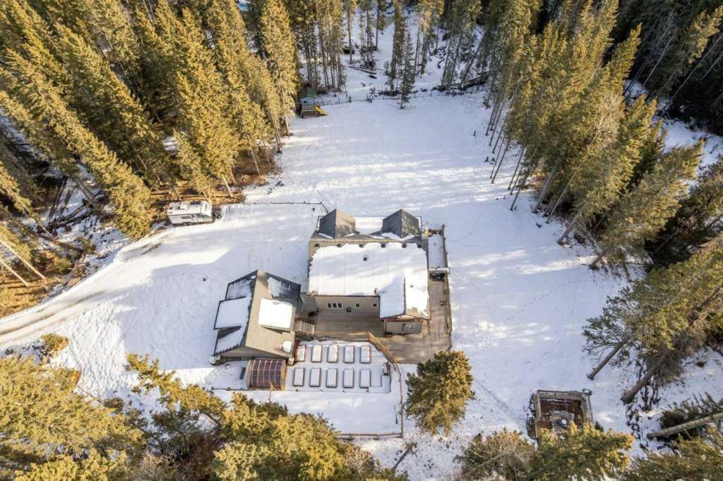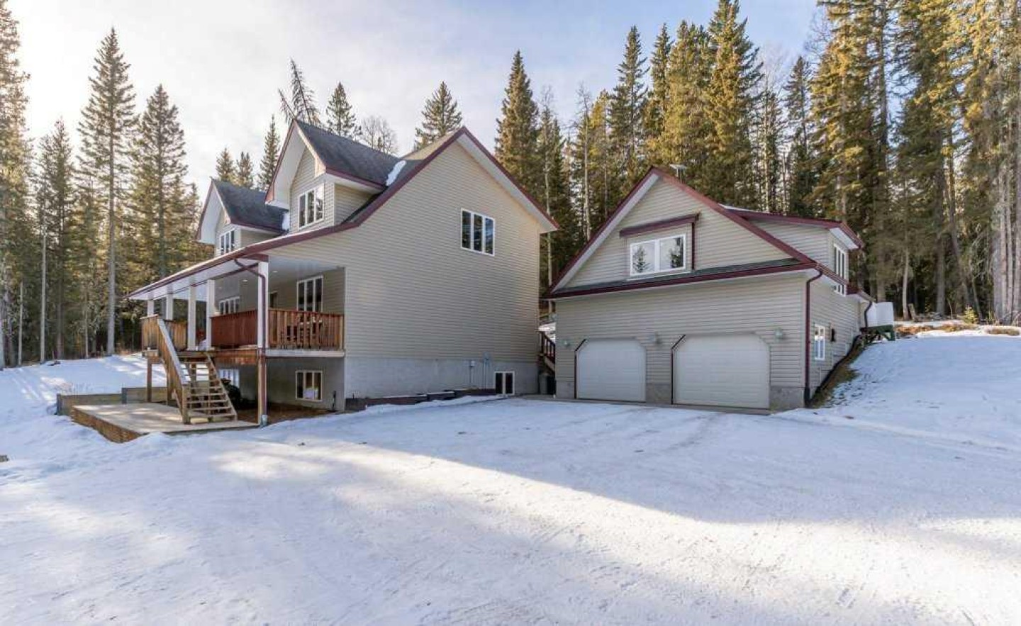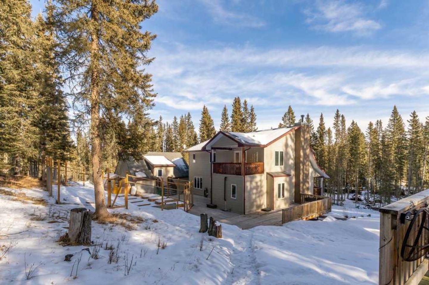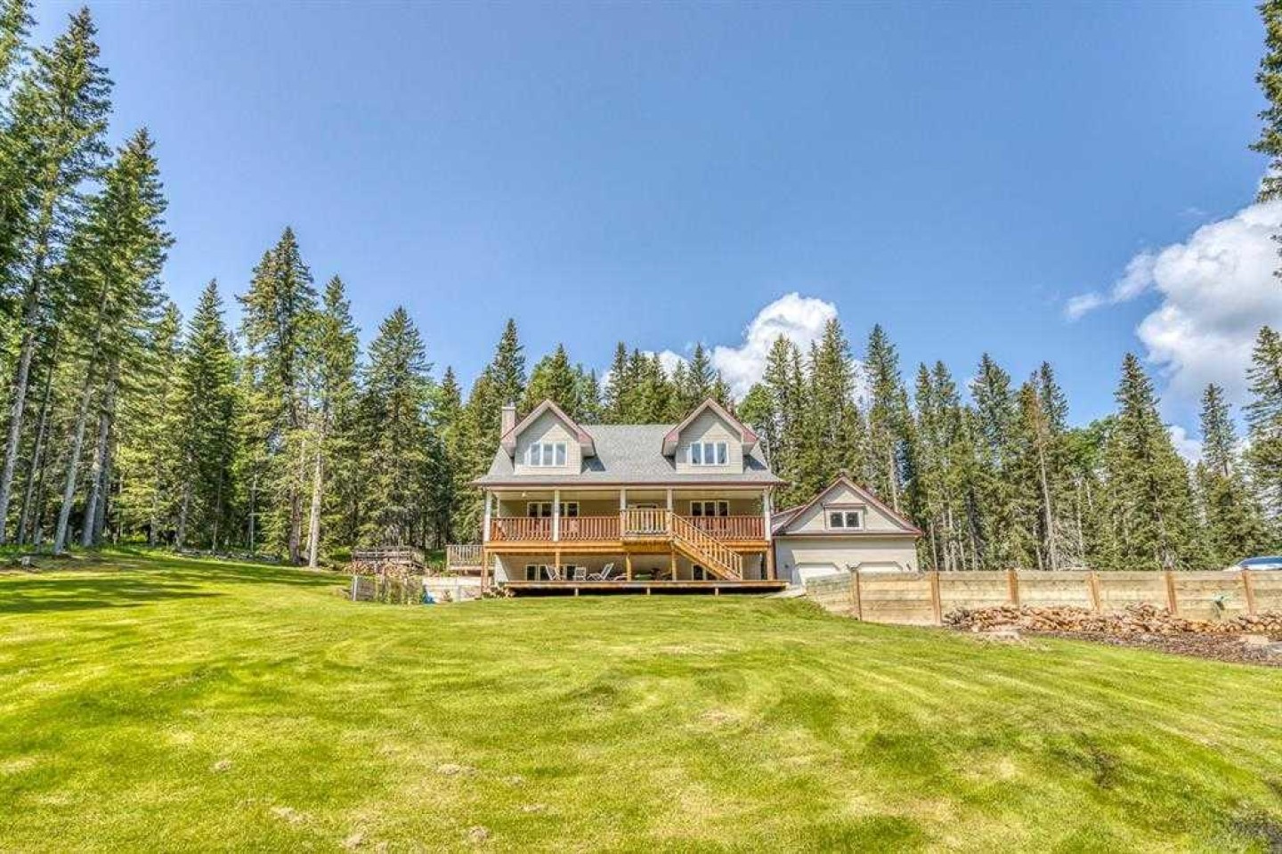 Private, treed, and packed with the charm you'd expect in Water Valley—this 1.5 storey walkout sits on 1.89 acres west of Water Valley and offers 3+2 bedrooms, 3 full bathrooms, and a heated double detached garage with a ~700 sq ft loft space ready for your ideas (guest suite, studio, office—your call). Enjoy outdoor living, surrounded by trees, with a massive front veranda, large rear decks, balcony, raised beds, and a greenhouse. The main floor features a bright country-chic kitchen with concrete countertops, butcher block island, high ceilings, a dining nook, and Forno stainless steel appliances. The living room impresses with vaulted, beamed ceilings and a cozy wood stove. There are two very spacious bedrooms on the main floor along with a refreshed 4 piece bathroom and enjoy main floor laundry also. Upstairs, a large bright loft flex space leads to a balcony with an outdoor pull-down theatre screen. The primary suite is incredibly bright and spacious with a 5-piece ensuite including a clawfoot tub and features a large walk-in closet with built-ins and a window. The finished walkout basement adds a large family room with gas fireplace and a door to a lower patio, a large rec room ideal for a gym or pool table, a big bedroom, a 4-piece bath, and space for another bedroom. The space has a suite-like feel that would be great for multi-generational living or perfect for guests/teens. RV parking, private setting, bus pickup at end of driveway, and easy commuting—45 minutes to Cochrane and under an hour to Calgary. Water Valley is a fantastic community with tons of charm. See the 3D tour.
