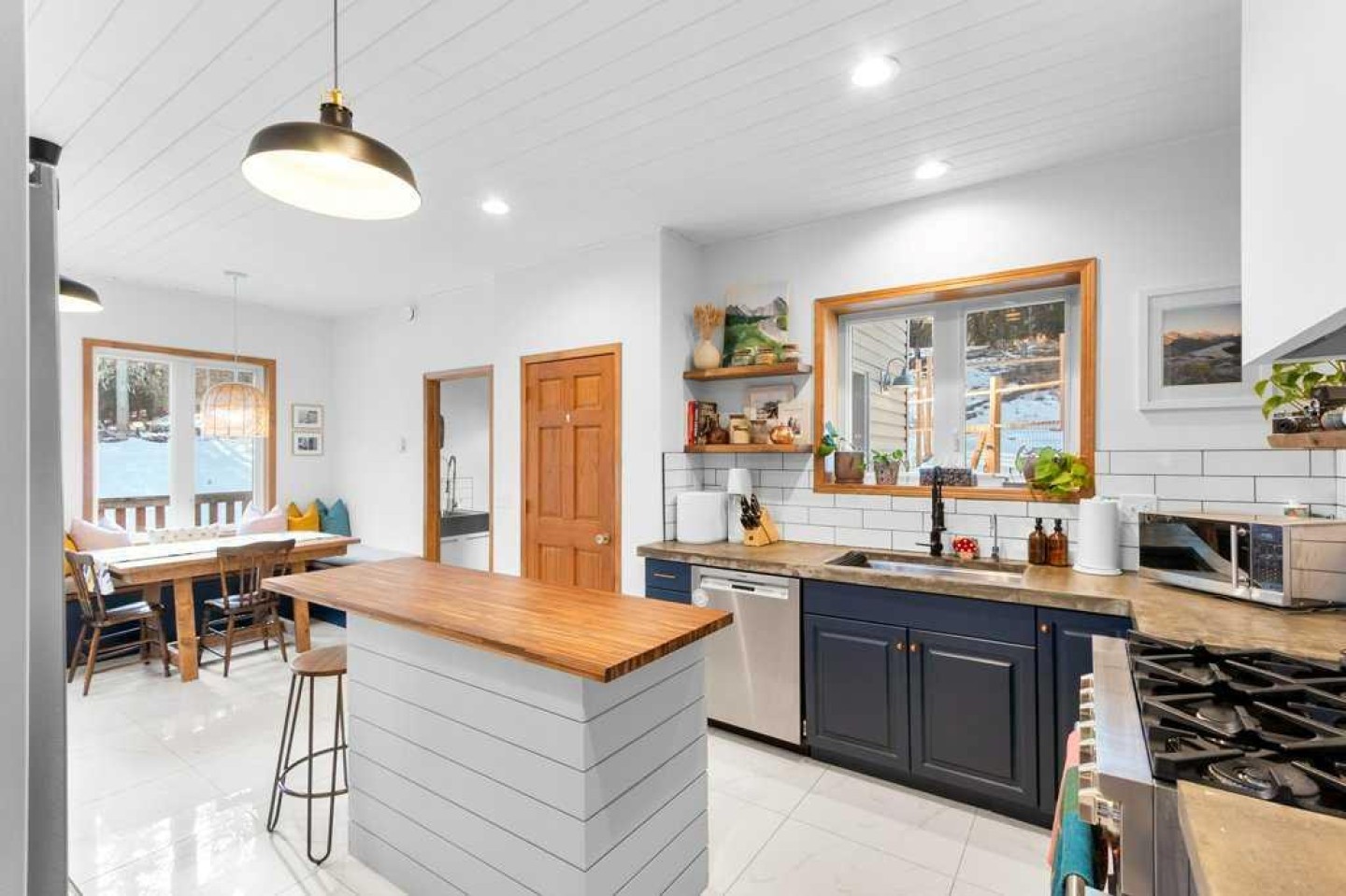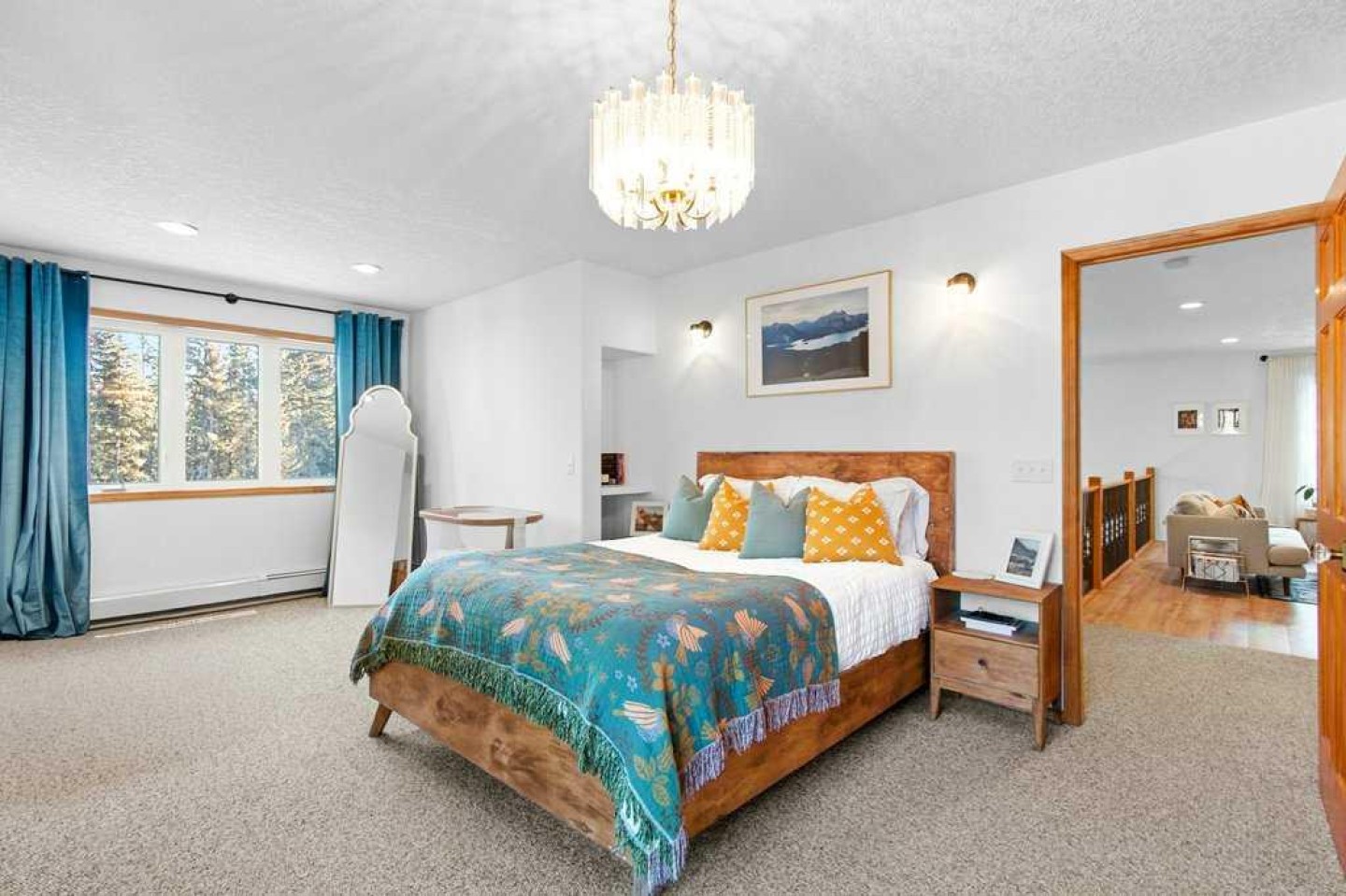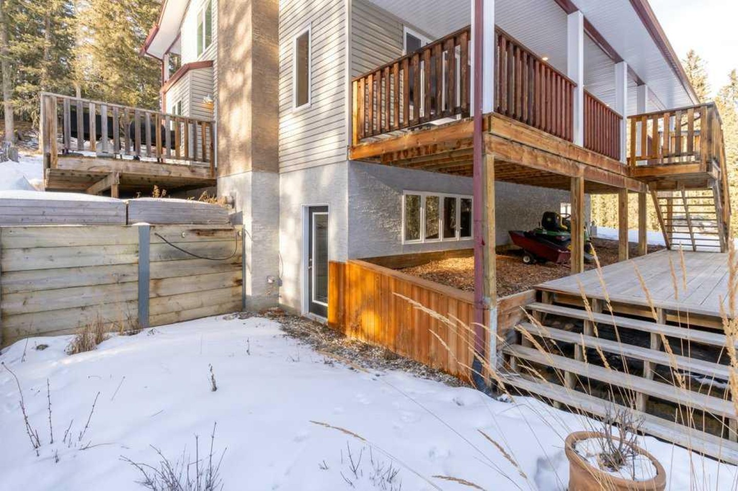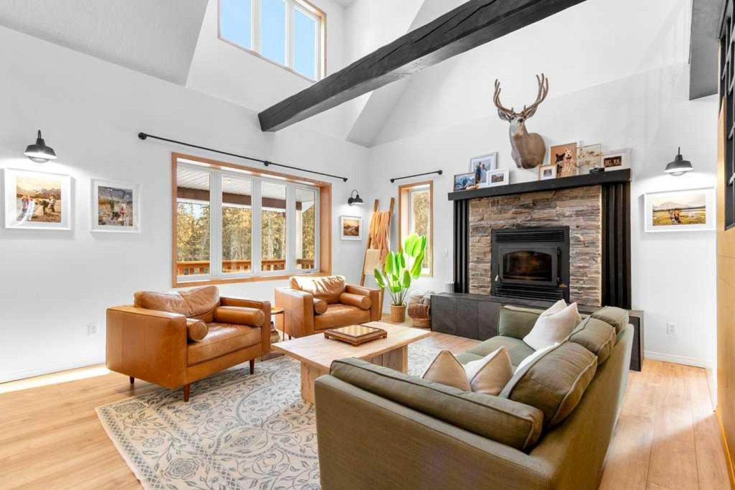 Private, treed, and packed with the charm you'd expect in Water Valley—this 1.5 storey walkout sits on 1.89 acres west of Water Valley and offers 3+2 bedrooms, 3 full bathrooms, and a heated double detached garage with a ~700 sq ft loft space ready for your ideas (guest suite, studio, office—your call). Enjoy outdoor living, surrounded by trees, with a massive front veranda, large rear decks, balcony, raised beds, and a greenhouse. The main floor features a bright country-chic kitchen with concrete countertops, butcher block island, high ceilings, a dining nook, and Forno stainless steel appliances. The living room impresses with vaulted, beamed ceilings and a cozy wood stove. There are two very spacious bedrooms on the main floor along with a refreshed 4 piece bathroom and enjoy main floor laundry also. Upstairs, a large bright loft flex space leads to a balcony with an outdoor pull-down theatre screen. The primary suite is incredibly bright and spacious with a 5-piece ensuite including a clawfoot tub and features a large walk-in closet with built-ins and a window. The finished walkout basement adds a large family room with gas fireplace and a door to a lower patio, a large rec room ideal for a gym or pool table, a big bedroom, a 4-piece bath, and space for another bedroom. The space has a suite-like feel that would be great for multi-generational living or perfect for guests/teens. RV parking, private setting, bus pickup at end of driveway, and easy commuting—45 minutes to Cochrane and under an hour to Calgary. Water Valley is a fantastic community with tons of charm. See the 3D tour.