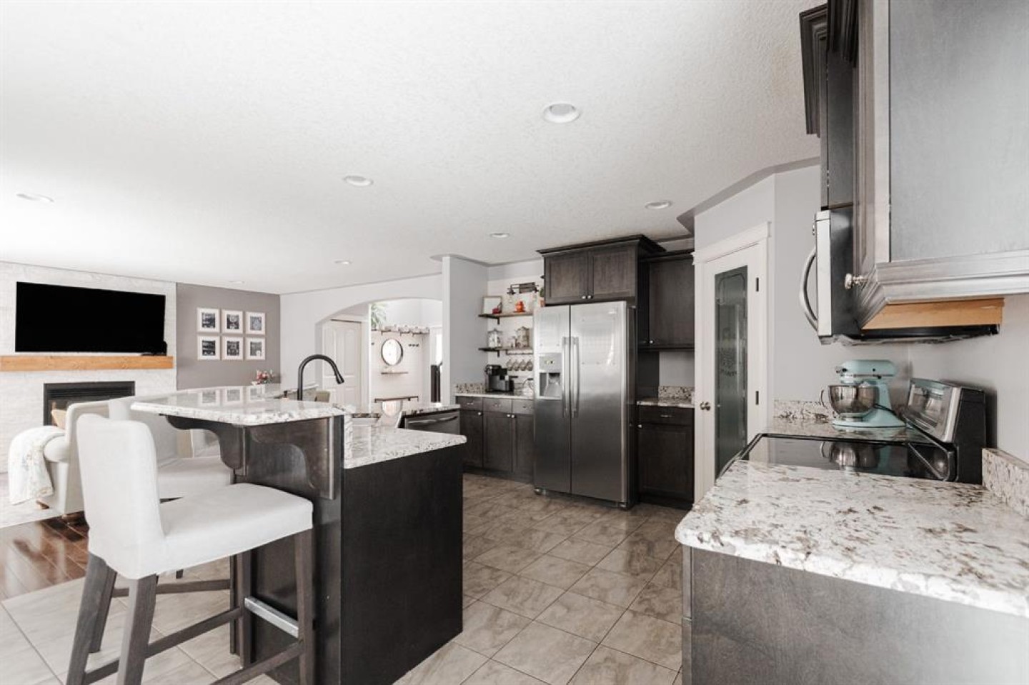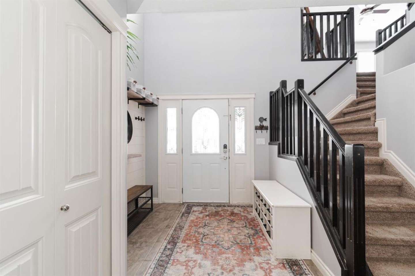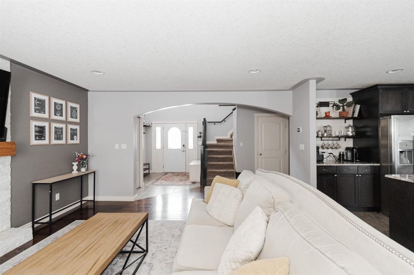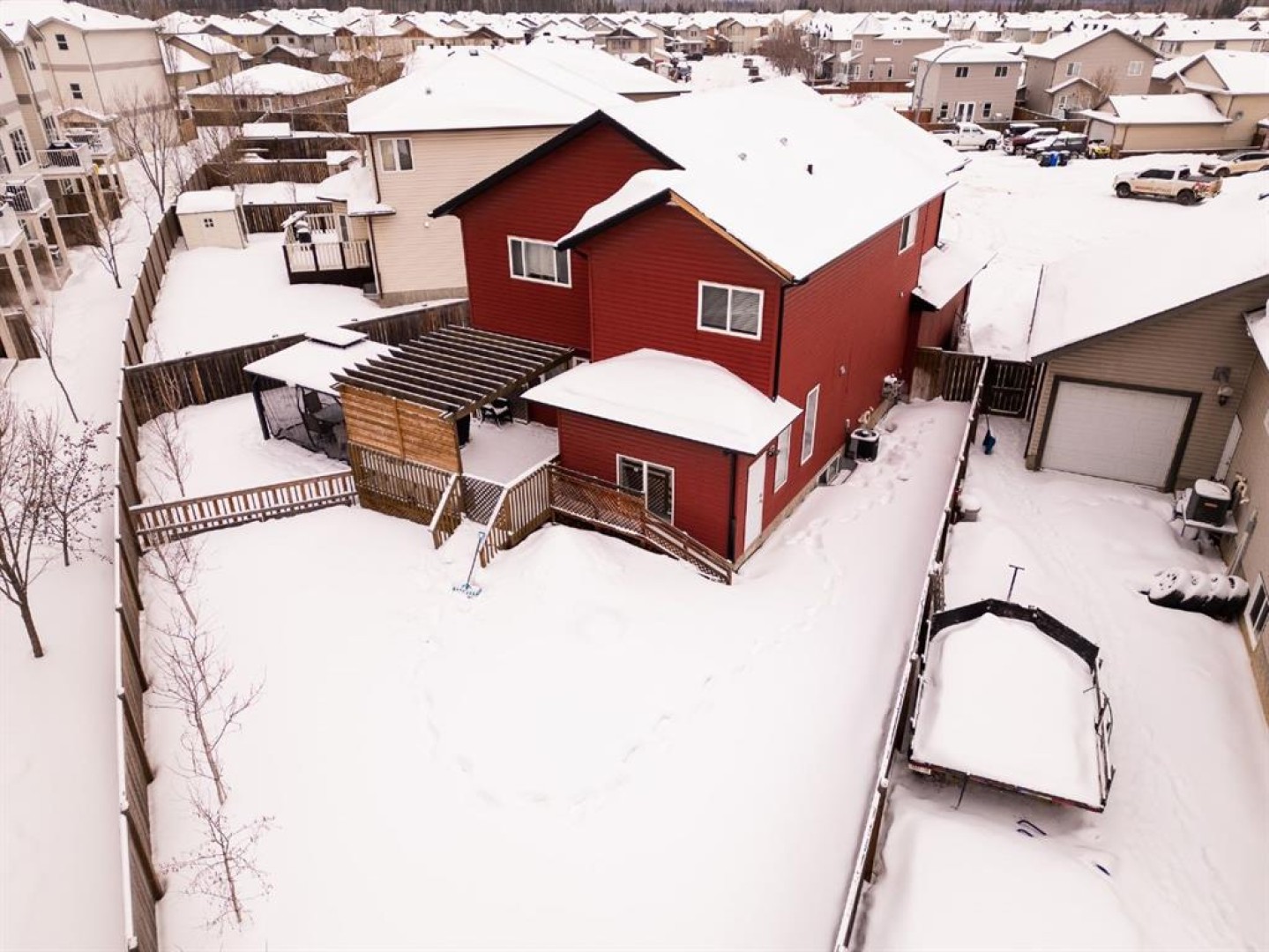 Welcome to 131 Chokecherry Place, a spacious and welcoming Timberlea home set on a generous 6,202 square foot pie lot with a backyard designed for connection, privacy, and everyday enjoyment. With farmhouse inspired modern updates throughout, this home offers a comfortable blend of character, function, and space in a layout that works beautifully for growing families. From the moment you arrive, the long driveway with parking for three vehicles and additional RV parking sets the tone for practicality. Stepping inside, the tiled entry welcomes you with a striking shiplap feature wall, built in shelving, crown mouldings, and a wagon wheel chandelier added in 2020 that immediately gives the home its charming farmhouse feel. The main living area features hardwood floors and a cozy gas fireplace framed by stone veneer and a wood beam feature also completed in 2020 when many updates were done. This space flows seamlessly into the kitchen and dining area, creating an inviting open concept environment for both daily living and entertaining. The kitchen is finished with granite countertops, an eat up island, black sprayer faucet, pantry storage, and a charming shiplap coffee bar with built in shelving. Wainscotting and an updated dining chandelier with Edison bulbs add to the character and warmth of the large space great for entertaining or nights in. The main floor also includes a convenient two piece bathroom with an updated light fixture and wood framed mirror. The laundry area is thoughtfully located off the garage mudroom and includes upper cabinets and a drying rod, making it both functional and efficient. Upstairs, you will find a large bonus room with a feature wall, perfect for movie nights or a second family space. The primary bedroom is spacious and includes a walk in closet and a five piece ensuite with dual sinks and a jetted tub. The bed frame and mounted nightstands in the primary bedroom are all included. The upper level is completed with updated finishes that tie the space together nicely, hosting two additional bedrooms and a four piece bathroom. The basement offers a flexible layout suited for a home gym, recreation space, or guest use. A four piece bathroom is included, along with cork flooring that provides warmth and moisture resistance for your home gym or entertaining space. A Murphy bed is included, along with multiple televisions that can stay, and built in speakers with a Sonos system, receiver included. This space also has a separate entrance into the backyard for easy indoor outdoor access. Outside, the large pie shaped backyard offers a mix of open space and privacy. With added privacy walls on the deck, planted trees, and the natural pie lot shape help create a peaceful setting. The gazebo stays, along with a gas line for the barbecue, a fire pit area, a two tiered deck, and a dedicated dog run. This yard has clearly been enjoyed and designed for making memories. Additional features include central air conditioning and an updated humidifier.