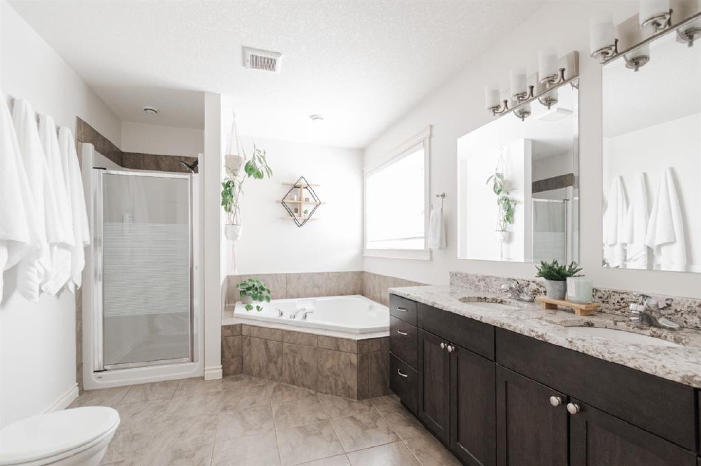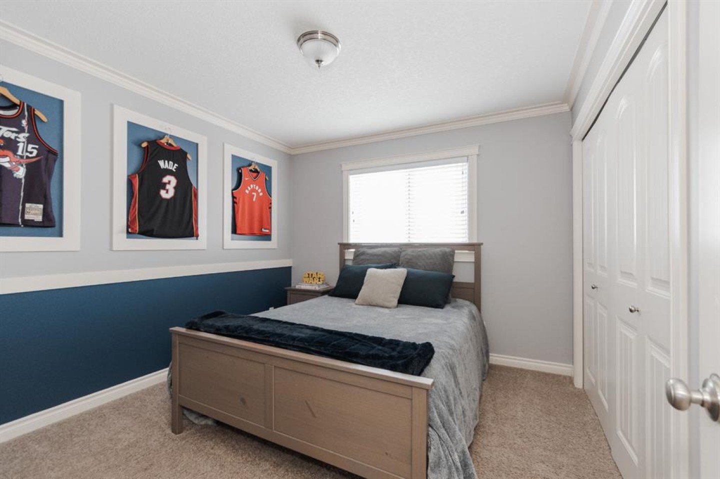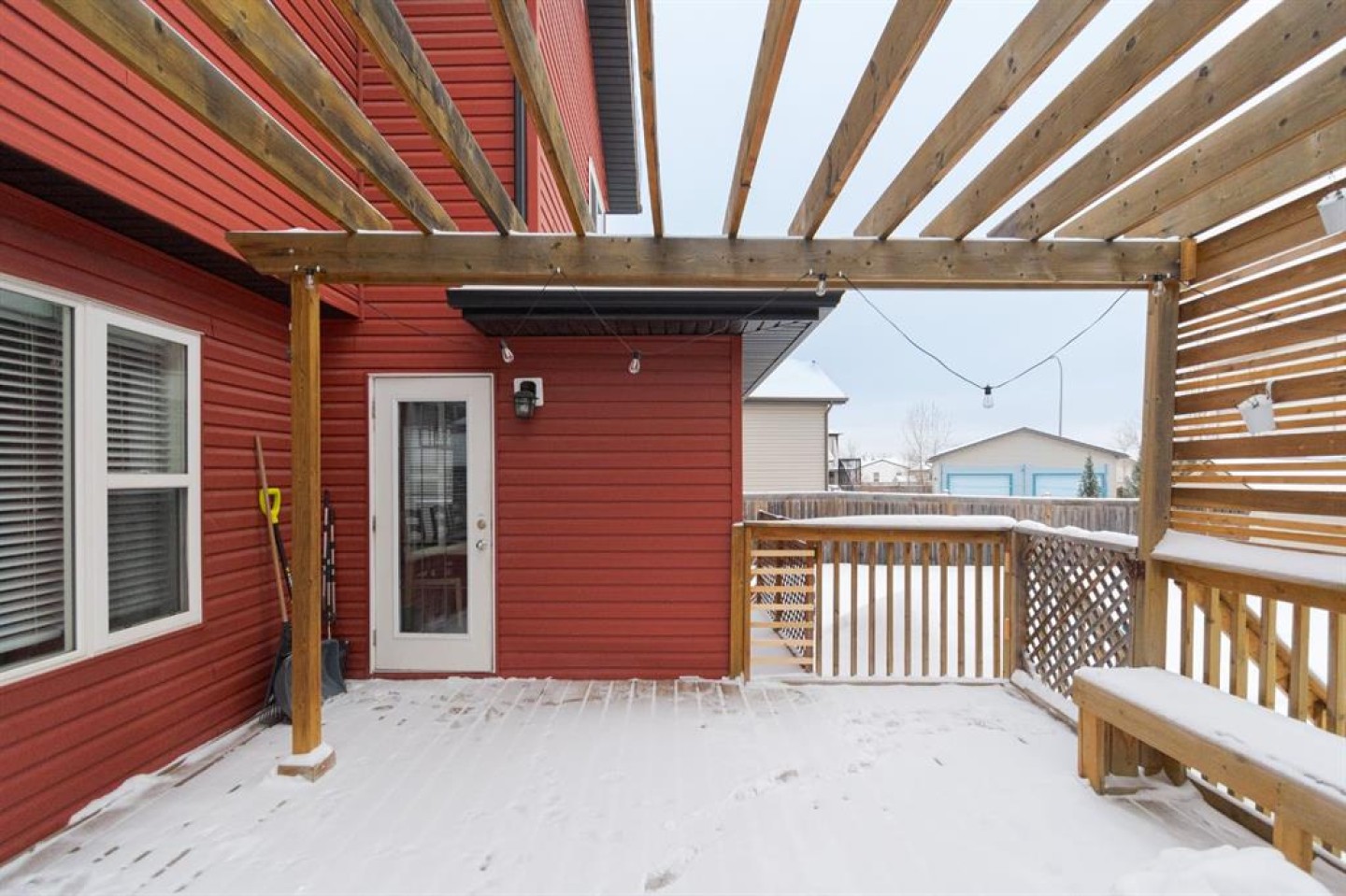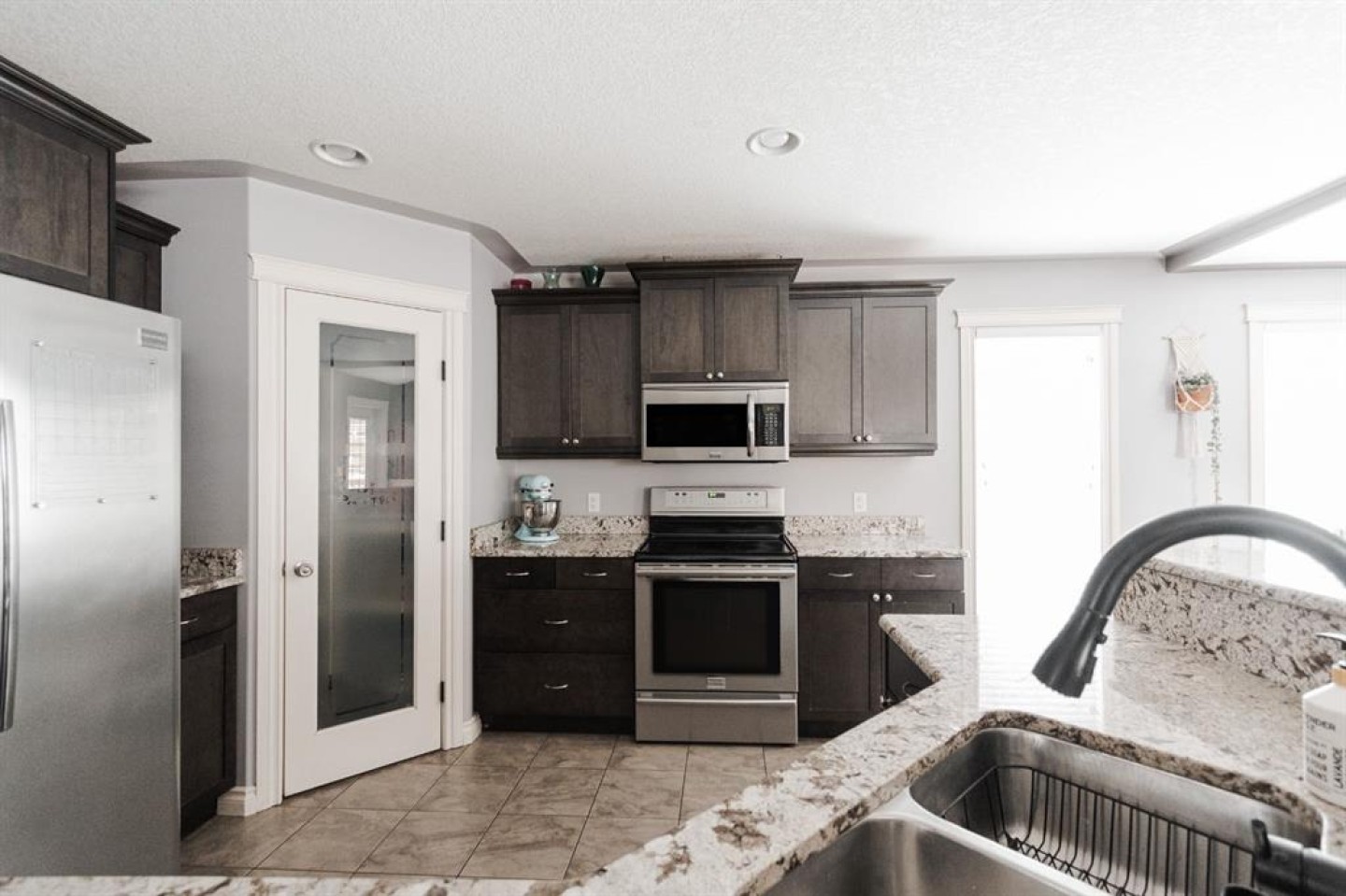 Welcome to 131 Chokecherry Place, a spacious and welcoming Timberlea home set on a generous 6,202 square foot pie lot with a backyard designed for connection, privacy, and everyday enjoyment. With farmhouse inspired modern updates throughout, this home offers a comfortable blend of character, function, and space in a layout that works beautifully for growing families. From the moment you arrive, the long driveway with parking for three vehicles and additional RV parking sets the tone for practicality. Stepping inside, the tiled entry welcomes you with a striking shiplap feature wall, built in shelving, crown mouldings, and a wagon wheel chandelier added in 2020 that immediately gives the home its charming farmhouse feel. The main living area features hardwood floors and a cozy gas fireplace framed by stone veneer and a wood beam feature also completed in 2020 when many updates were done. This space flows seamlessly into the kitchen and dining area, creating an inviting open concept environment for both daily living and entertaining. The kitchen is finished with granite countertops, an eat up island, black sprayer faucet, pantry storage, and a charming shiplap coffee bar with built in shelving. Wainscotting and an updated dining chandelier with Edison bulbs add to the character and warmth of the large space great for entertaining or nights in. The main floor also includes a convenient two piece bathroom with an updated light fixture and wood framed mirror. The laundry area is thoughtfully located off the garage mudroom and includes upper cabinets and a drying rod, making it both functional and efficient. Upstairs, you will find a large bonus room with a feature wall, perfect for movie nights or a second family space. The primary bedroom is spacious and includes a walk in closet and a five piece ensuite with dual sinks and a jetted tub. The bed frame and mounted nightstands in the primary bedroom are all included. The upper level is completed with updated finishes that tie the space together nicely, hosting two additional bedrooms and a four piece bathroom. The basement offers a flexible layout suited for a home gym, recreation space, or guest use. A four piece bathroom is included, along with cork flooring that provides warmth and moisture resistance for your home gym or entertaining space. A Murphy bed is included, along with multiple televisions that can stay, and built in speakers with a Sonos system, receiver included. This space also has a separate entrance into the backyard for easy indoor outdoor access. Outside, the large pie shaped backyard offers a mix of open space and privacy. With added privacy walls on the deck, planted trees, and the natural pie lot shape help create a peaceful setting. The gazebo stays, along with a gas line for the barbecue, a fire pit area, a two tiered deck, and a dedicated dog run. This yard has clearly been enjoyed and designed for making memories. Additional features include central air conditioning and an updated humidifier.