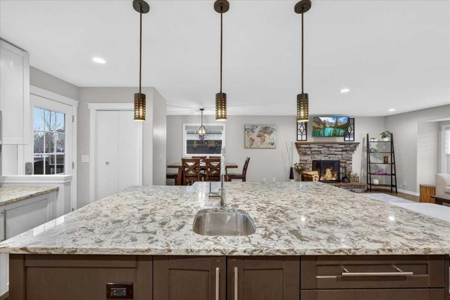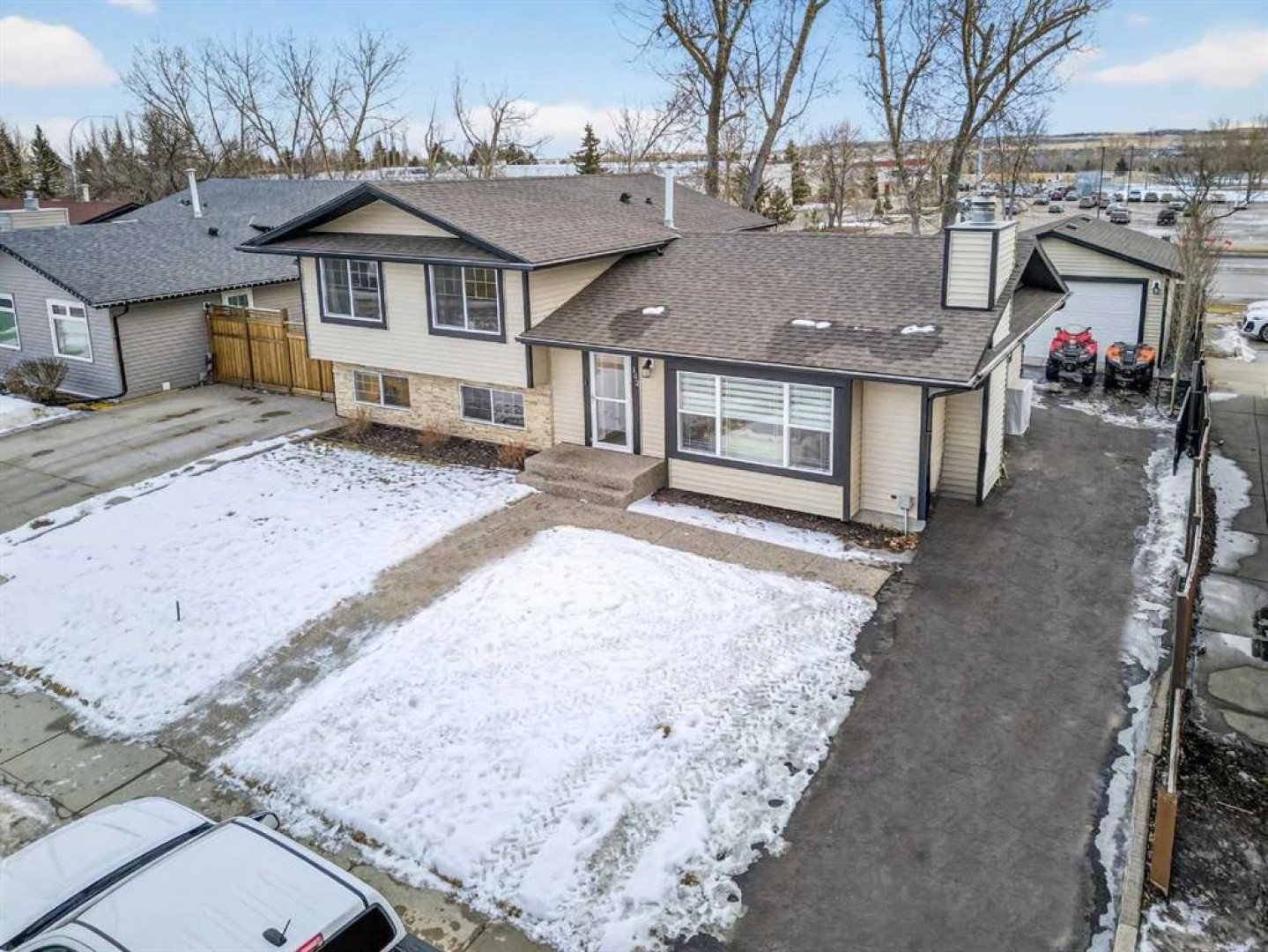 You do not want to miss this incredible family home! With a fantastic floorplan, meticulous care, and a location that’s within walking distance to schools, shopping, and the recreation center, this home truly has it all. As you step through the front door, you’ll be amazed at the expansive living space this well-designed four-level split offers (approximately 2,400 sq ft of developed living space). The thoughtful layout creates a home that lives much larger than its square footage suggests. The spacious kitchen is a chef’s dream, featuring a massive island with a prep sink, stunning quartz countertops, plenty of cabinet space, and ample room for seating—perfect for both cooking and entertaining. The large living room is cozy yet inviting, with a wood-burning fireplace and a bright dining area surrounded by windows that fill the space with natural light. It’s the perfect place to relax and unwind. On the upper level, you’ll find two children's bedrooms that share a 4-piece bath, and a master bedroom with a 4-piece ensuite. The lower level offers a large family/playroom, a 3-piece bath, and a laundry room. On the lowest level, you’ll enjoy even more space with a sizable rec room, an additional bedroom, and a utility/storage room. Outside, the large tiered deck (with gas line to the barbeque) and raised garden beds provide the perfect space for outdoor living. And don’t forget about the 20’x21.6’ detached garage, which is heated and in like-new condition! This home has been thoughtfully updated over the last 10 years, with modern features like air conditioning, a newer hot water tank, furnace, and a Kinetic water filtration system. You’ll truly fall in love with this beautiful home—and as a bonus, you’ll have the best neighbors around!