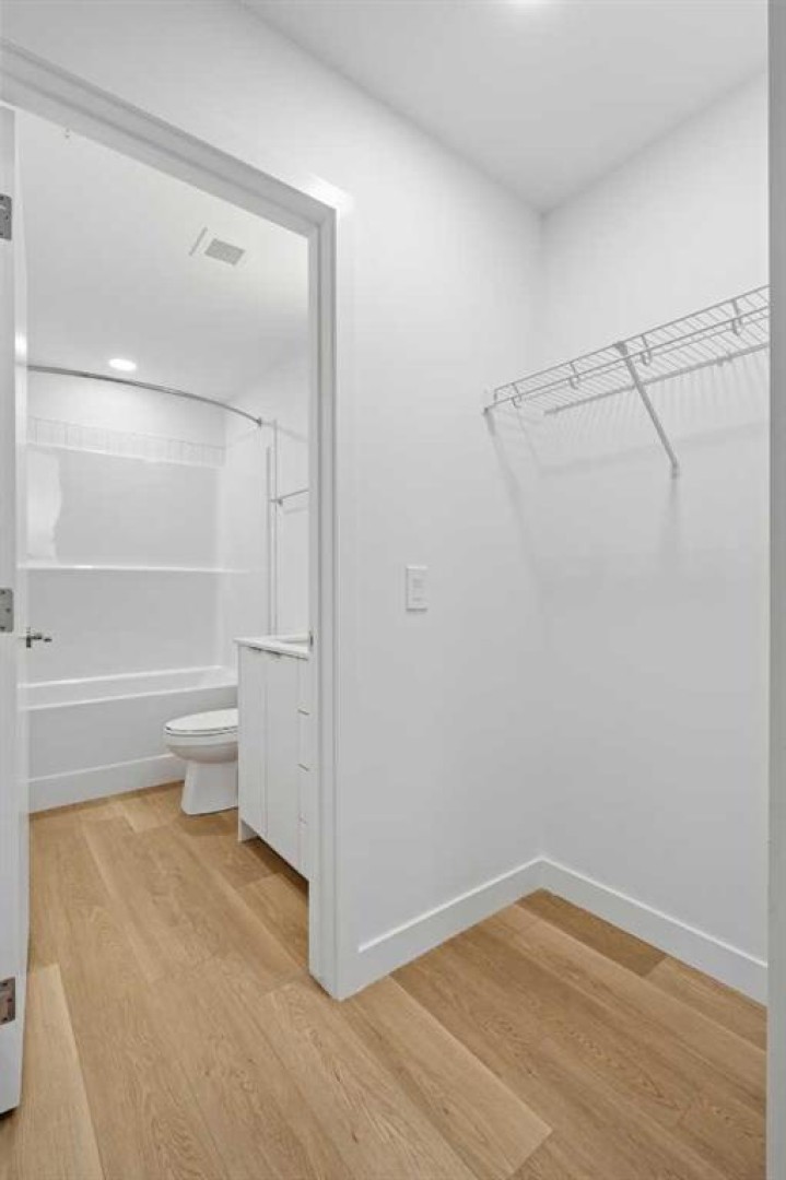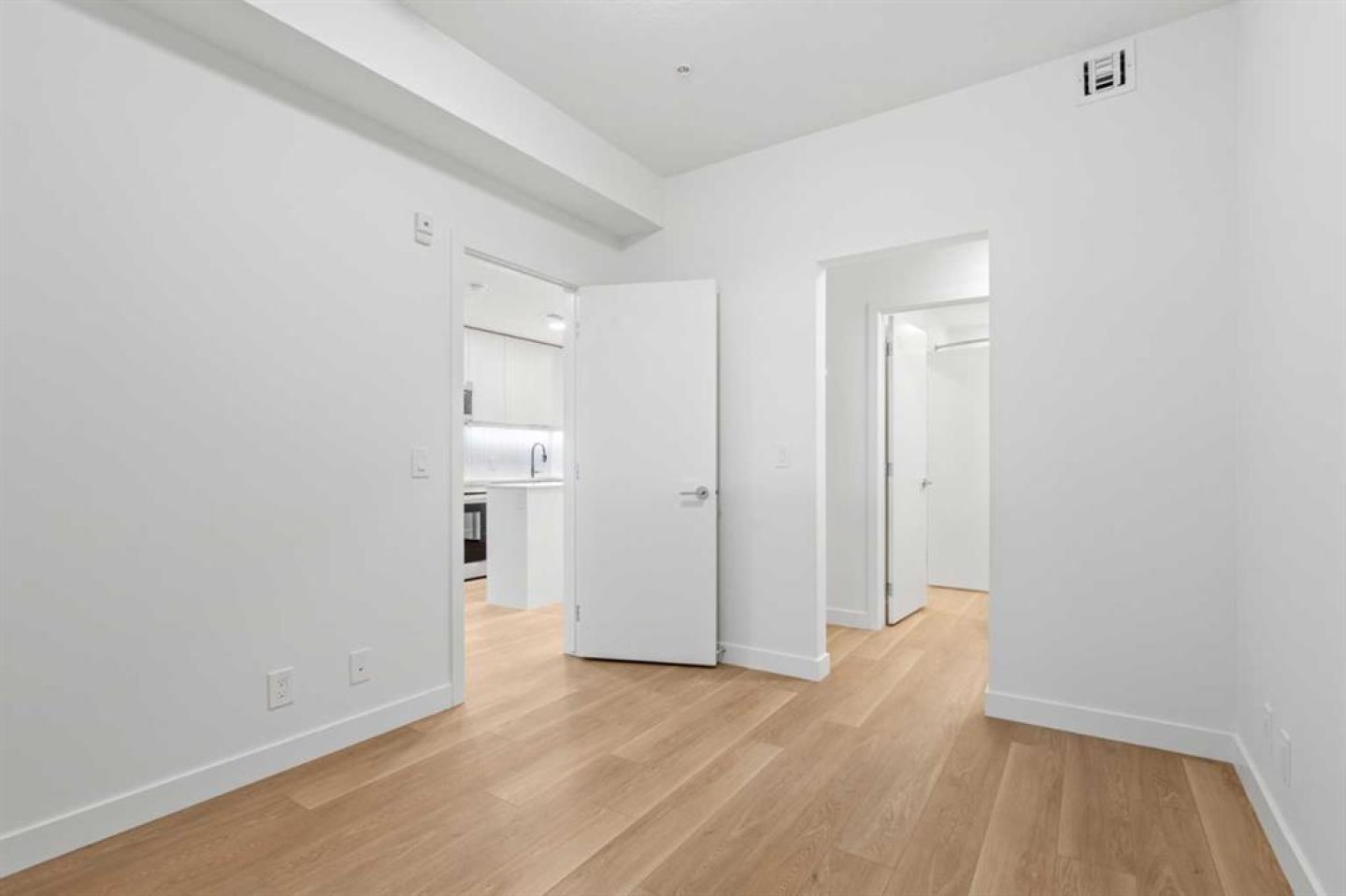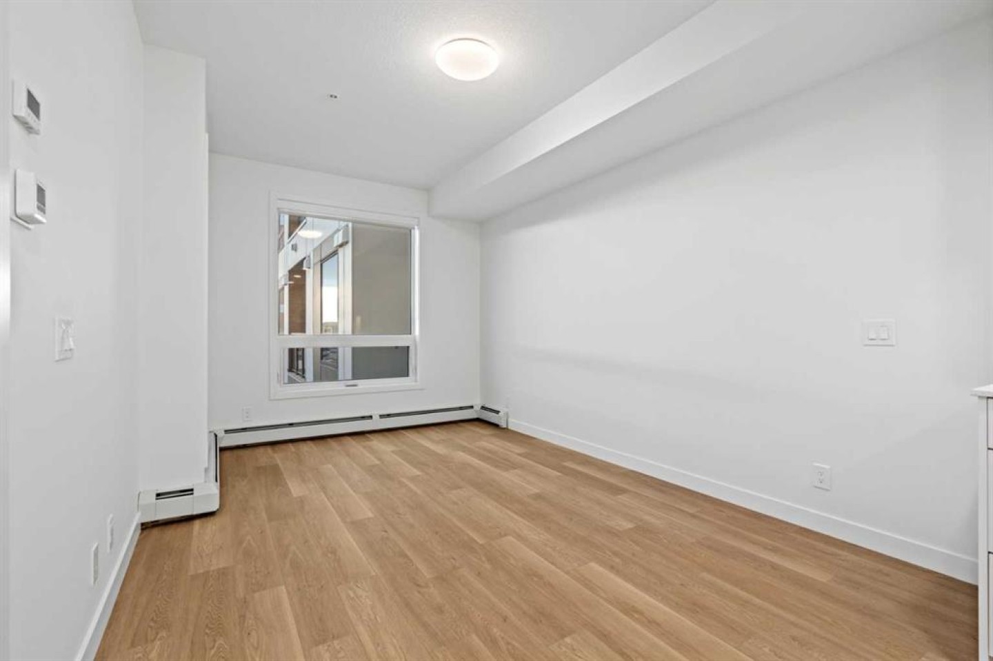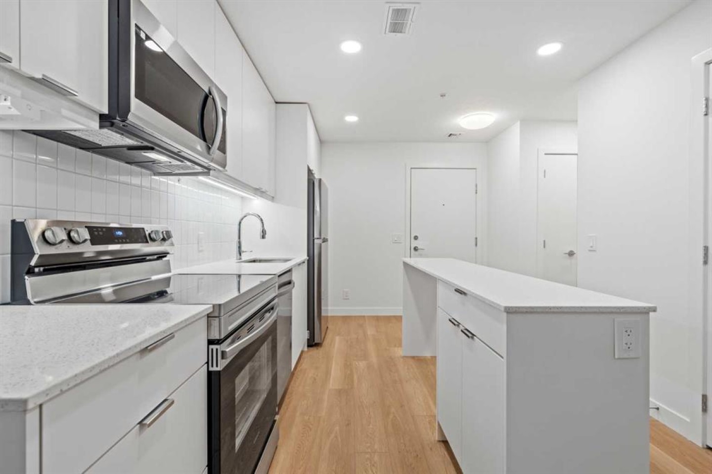BRAND NEW | 1 BED / 1 BATH / 502 SQ FT | MODERN FINISHES | LOW CONDO FEES | TITLED PARKING – Welcome to East Hills by Minto Communities, an award-winning Canadian builder with over 70 years of experience. This condo complex is located in the growing community of Belvedere, just steps from East Hills Shopping Centre. Designed to foster a true sense of community, East Hills features pedestrian pathways, nearby greenspace, and a walkable, neighbour-friendly layout. Enjoy unbeatable convenience with Costco, Walmart, banks, restaurants, and everyday essentials right across the street, along with quick access to major roadways and public transit for an easy commute downtown or around the city. This brand-new 1 bedroom, 1 bathroom condo offers a smart and efficient layout with 560 sq ft of well-designed living space and modern finishes throughout. As you enter the home, the kitchen is located at the front on the left and features a functional island, stainless steel appliances, ample cabinetry, and convenient storage. The open-concept layout flows seamlessly toward the back of the home into the living area, where you’ll find access to a private balcony—perfect for relaxing or enjoying warm summer evenings. The bedroom is located just off the living room and offers a comfortable retreat, complete with a walk-through closet that leads directly into the bathroom. The bathroom is thoughtfully designed with dual access from both the primary bedroom and the foyer, adding convenience for guests. In-suite laundry is also located here, maximizing functionality without sacrificing space. Additional highlights include titled parking, a pet-friendly building (with restrictions), and access to an on-site fitness centre, enhancing the lifestyle appeal of this low-maintenance home. With modern design, low condo fees, and an exceptional location, this is an excellent opportunity for first-time buyers, investors, or those looking to downsize in one of southeast Calgary’s most convenient communities. Contact Minto’s sales staff and book your visit today!