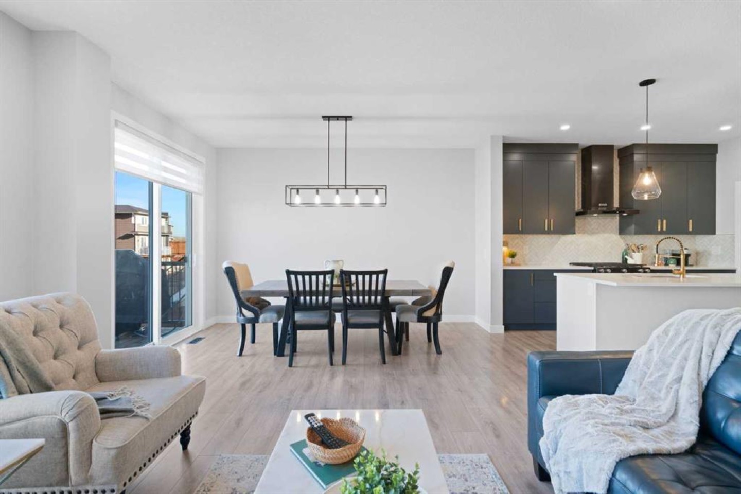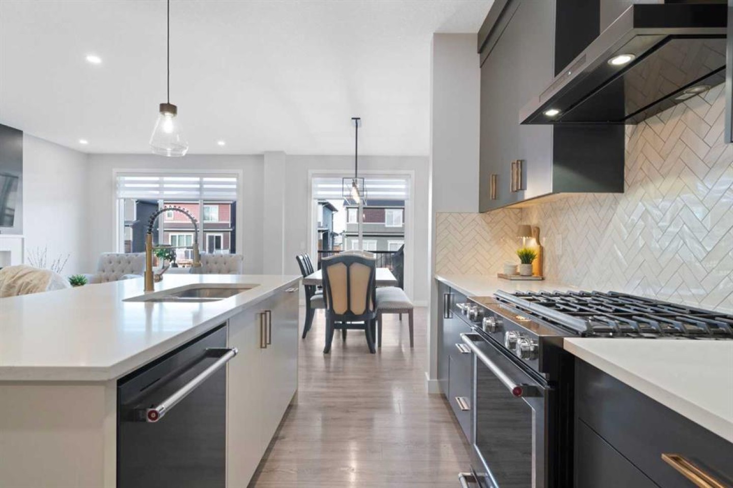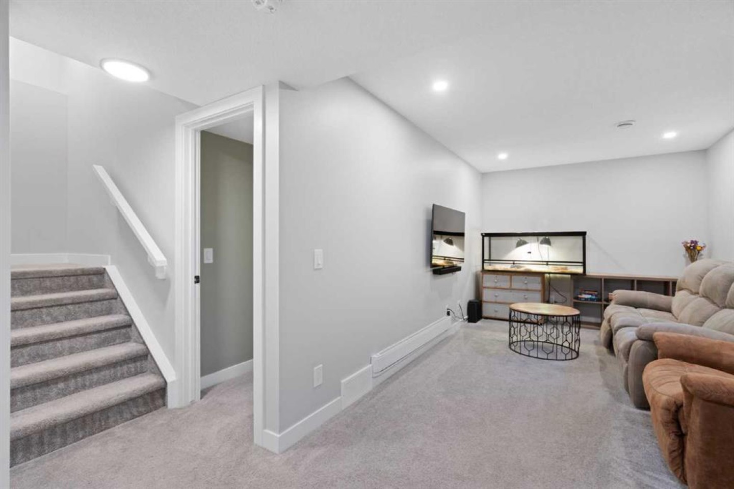 Welcome to this beautifully finished and thoughtfully upgraded Calbridge-built home backing onto a pathway and offering a blend of style, comfort, and functional living across all three levels. From the triple-pane windows to the fully developed sunshine basement, every detail has been selected to enhance everyday life. The main floor features a spacious front entry, 9 ft ceilings, fresh paint, a convenient 2pc bath, and an open-concept layout that is ideal for both family living and entertaining. The kitchen stands out with full-height dark grey/blue cabinetry, quartz countertops, herringbone tile backsplash, a large island, and KitchenAid dark stainless steel appliances including a gas range, and built-in microwave. The walk-in pantry provides exceptional storage with tons of shelving. The bright living room offers a gas fireplace with conduit to keep media wiring hidden and large windows that capture serene views of the backyard and pathway. The dining area comfortably fits a full-size table and leads to the back deck with BBQ gas line, stairs down to an exposed concrete patio, fresh mulch landscaping, storage under the deck, and a built-in cast iron firepit, perfect for relaxing or hosting. Upstairs, brand new carpet leads to a central bonus room with tray ceiling and pot lights. The primary suite feels like a retreat with vaulted ceilings, gimbal pot lights, a feature wall, a large walk-in closet, and a 5pc ensuite including comfort-height double vanity with quartz counters, a soaker tub, and a tiled shower with niche. Two secondary bedrooms (one with a walk-in closet), a full 4pc bathroom with quartz countertops, and an upper laundry room with folding shelf complete this level. The fully finished sunshine basement is warm and inviting thanks to double-insulated walls and a dual-zone furnace, and includes a spacious recreation room, large bedroom with walk-in closet, 4pc bath with quartz counters, storage space, sump pump, and rough-in for radon. The double attached garage is plumbed and ready for utility use, making it ideal for future workshop needs. This is a move-in ready home where thoughtful upgrades, practical design, and location come together, set in a quiet, family-friendly area with direct pathway access right out your back door.