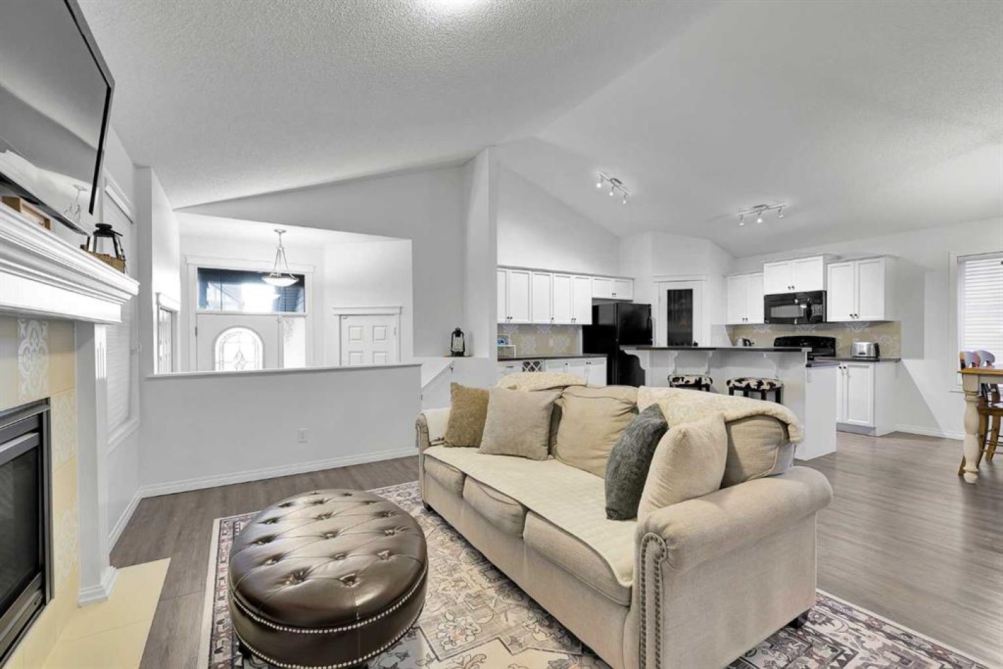 Looking for a UNIQUE home in Cochrane that won’t break the bank? Welcome to 65 Sunset Heights, Sunset Ridge—a thoughtfully designed 3-level split offering 4 bedrooms, 3 full bathrooms, and a layout that stands apart from the typical cookie-cutter home. The entire home has just received a full repaint, giving it a fresh, clean, move-in-ready feel from top to bottom. From the moment you arrive, pride of ownership is on display with a beautifully maintained garden and inviting curb appeal. Step inside to a spacious front entry with excellent storage and direct access to the double attached garage—perfect for busy families. A short flight of stairs leads to the heart of the home, where an eye-catching vaulted ceiling creates an airy, open feel. The main living area features a cozy gas fireplace and an open-concept kitchen, dining, and living space finished with seamless vinyl plank flooring and a separate kitchen island that delivers warm, country-kitchen vibes—ideal for everyday living and entertaining. Just off the main floor, the open-to-below living space adds versatility and charm, making it the perfect spot for game nights, movie marathons, or family gatherings. The fully finished basement offers a private retreat—ideal for older teens, guests, or extended family—complete with a bedroom, full bathroom, and a rare, oversized crawl space that functions like your own personal storage locker. Additional space is perfect for hobbies, a home gym, or a music area. Upstairs, the primary bedroom features a walk-in closet and full ensuite, while a second bedroom and another full bathroom complete this highly functional upper level. Outside, the backyard is fully finished with an expertly designed patio that directs water away from the home, helping protect the foundation. A privacy screen and decorative fencing mean all that’s left to do is fire up the BBQ and relax this summer. Located within walking distance to Rancheview K–8 School and St. Timothy’s School (7–12), and just minutes from Sunset Ridge’s commercial hub—including gas, medical and dental offices, pharmacy, pub, and takeout restaurants—this home delivers incredible value, versatility, and location.