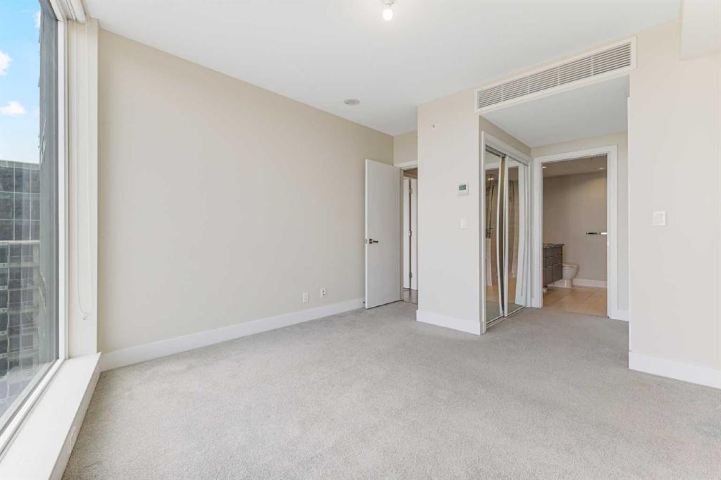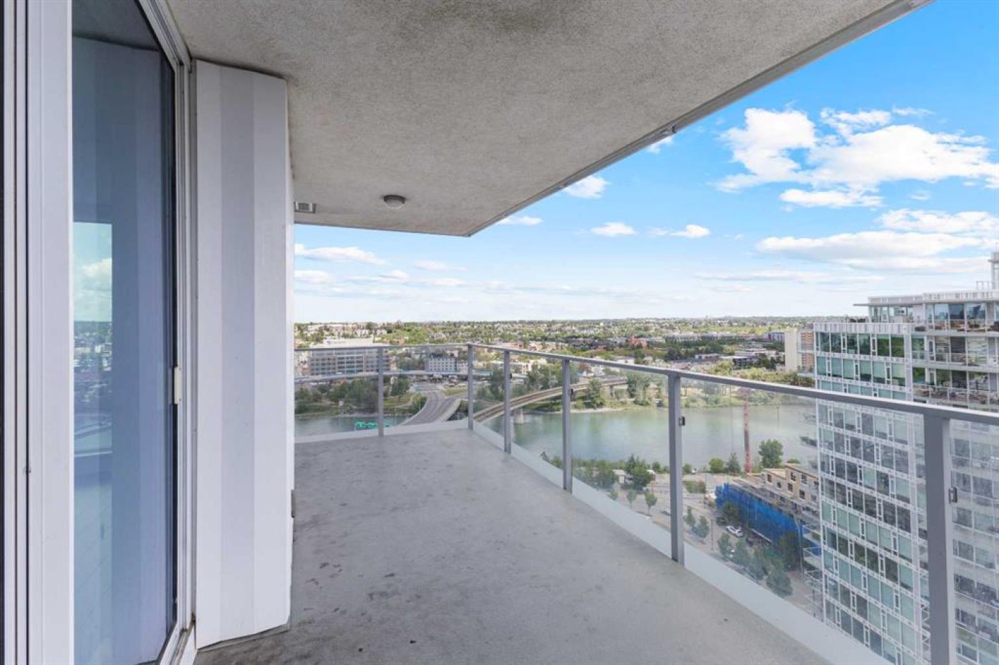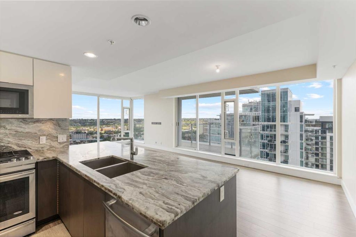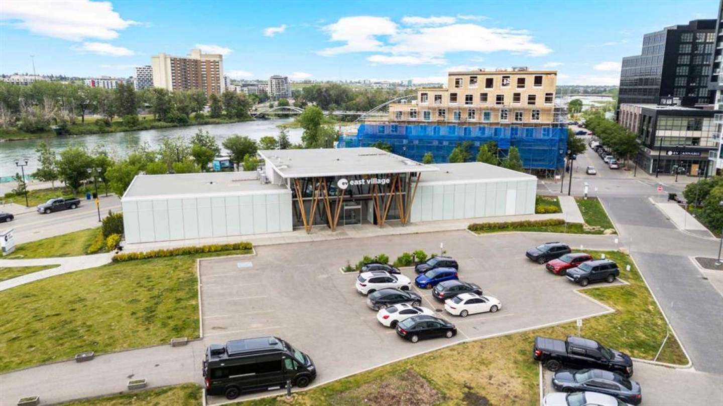 Welcome to your dream urban oasis in the heart of East Village. This stunning 19th-floor, 2-bedroom, 2-bathroom residence showcases breathtaking views of the Bow River and downtown skyline through expansive floor-to-ceiling windows that flood the home with natural light. Sleek laminate flooring throughout enhances the modern, open feel of the space. The contemporary kitchen is designed to impress, featuring granite countertops, a gas range stove, and ample storage—perfect for both everyday living and entertaining. The spacious bedrooms offer generous closet space, while the convenience of in-suite laundry adds to the home’s effortless functionality. Residents enjoy access to premium building amenities, including a state-of-the-art fitness centre and sauna. Located steps from the river pathways, dining, shopping, and downtown core, this home delivers the perfect blend of style, comfort, and urban lifestyle. Don’t miss this exceptional opportunity—schedule your private viewing today