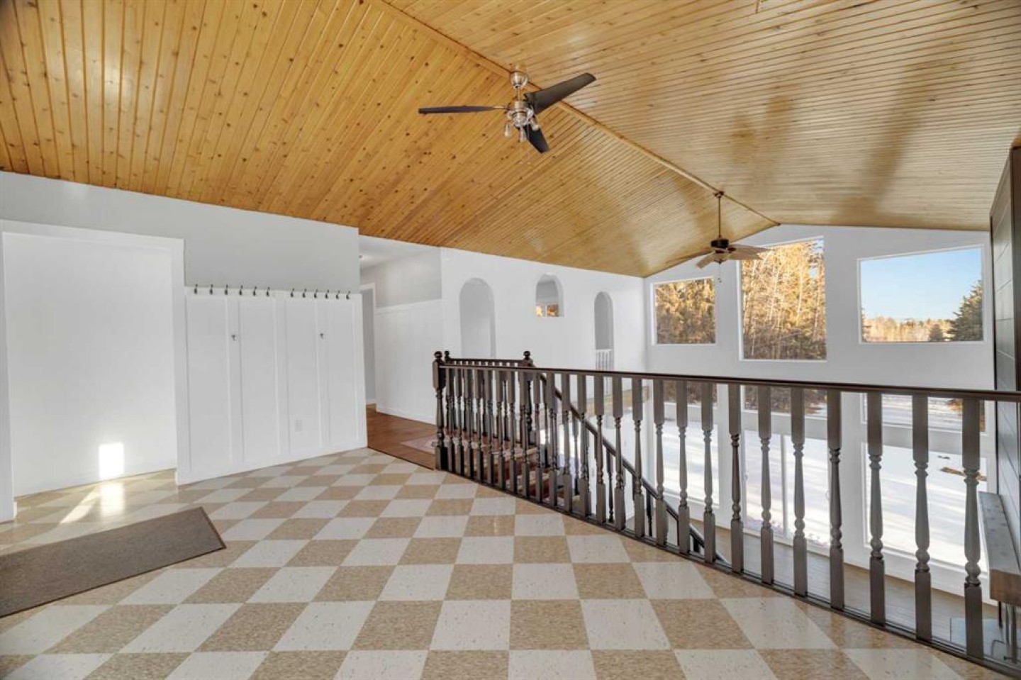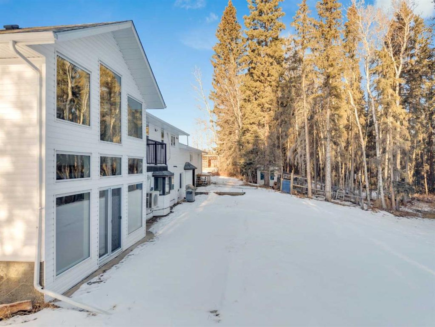 Welcome to this extensively upgraded acreage offering 3.56 acres backing directly onto the Blindman River, complete with accessible river trails, a private oxbow pond, and peaceful views north toward the Town of Rimbey from the backyard. This 4 bedroom, 3 bathroom home has undergone significant improvements over the years, creating a truly move-in-ready rural property where major systems and finishes have already been addressed. Inside, you’re greeted by a spacious, light-filled entrance that opens into a stunning lower family room featuring soaring ceilings, expansive windows, and a striking fireplace with custom hearth and surround—an ideal space for gathering and entertaining. The home offers a functional layout with a large upper den overlooking the backyard, perfect for a home office, reading nook, or flex space. The backyard is a standout feature, offering both river frontage and a secluded oxbow pond that is ideal for winter ice skating and features a small island with a picnic table, creating a unique and peaceful retreat rarely found on acreage properties. Recent upgrades include a new roof, siding, soffit, fascia, windows, kitchen and pantry, updated bathrooms, flooring, paint, high-efficiency heating and cooling systems, in-floor heat, multiple wood stoves, and more—offering long-term peace of mind and energy efficiency. The property is equally impressive outdoors with productive gardens, fruit trees, raised beds, a covered workspace, and multiple storage sheds. A rare opportunity to own a turn-key, river-backing acreage that blends privacy, functionality, and natural beauty, all within close proximity to town of Rimbey.