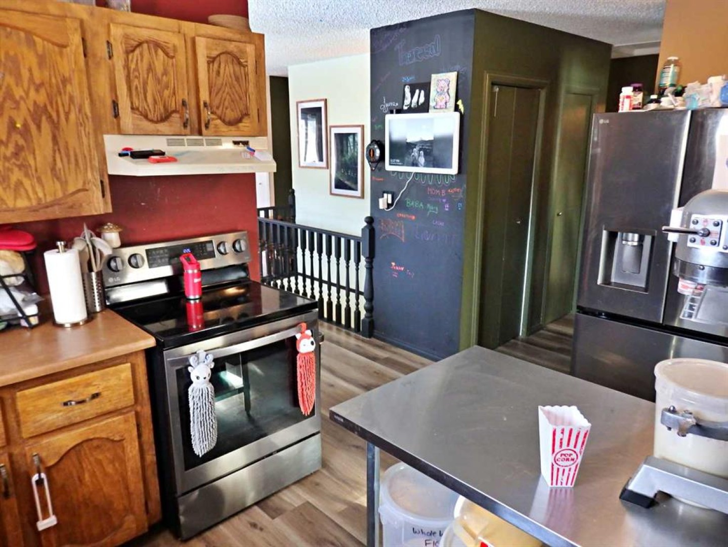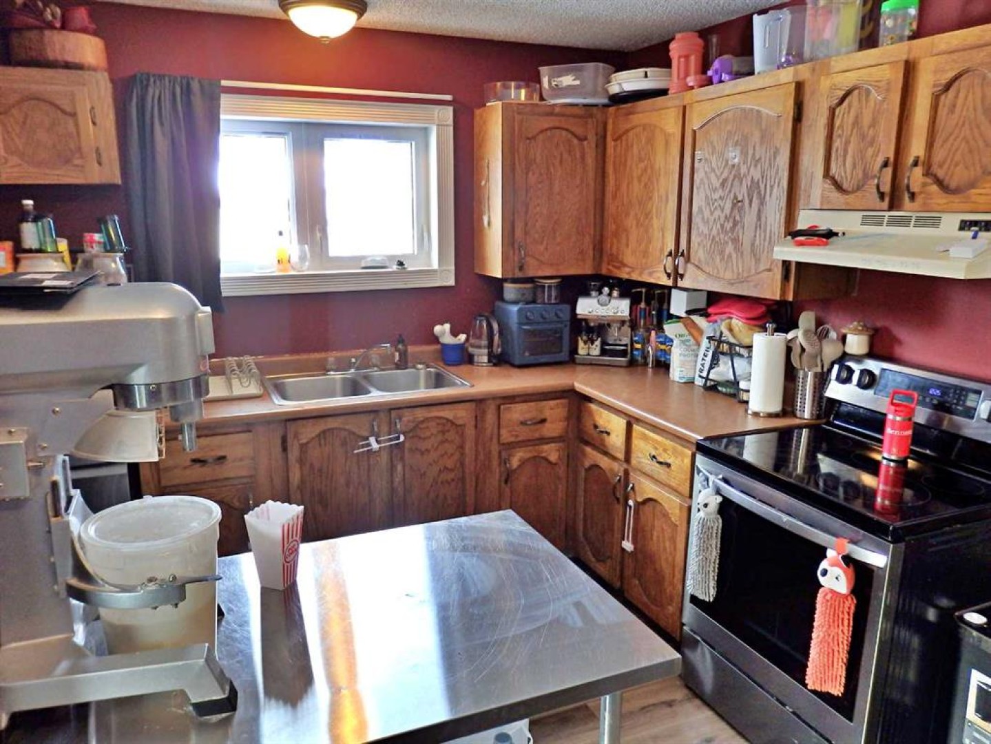 Updated bungalow situated in a quiet cul-de-sac on Vermilion's west-end. The oversized, fully-fenced lot provides a double detached-heated garage, large storage shed & established fire pit area. The home has seen a multitude of renovations as of late: new vinyl windows, doors, siding, bathroom, furnace, HWT and metal roof for longevity. A recent fire next door has left the lot adjacent, open. Large areas of greenspace & playgrounds within a short walk from the property. The extra-long driveway supplies a ton of parking spaces for toys etc. Majority of the appliances are new within a year and are all set to stay. A renovated family home in a fantastic location.