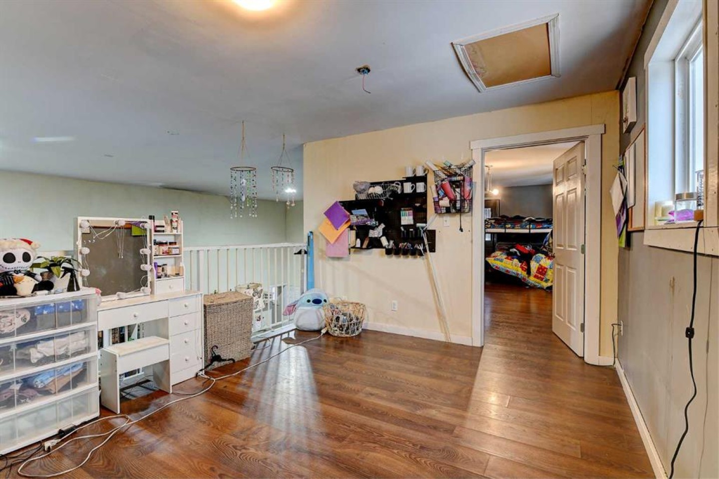 Welcome to peaceful acreage living just minutes from Grovedale. Situated on nearly 10 acres, this private property is surrounded by mature trees, offering exceptional privacy and a true country feel. The home features four bedrooms and one bathroom, with a functional layout designed for comfortable everyday living. A spacious upper area overlooks the open-concept living and dining space below, creating an airy feel and a great spot for a home office, reading nook, or additional living area. The primary bedroom offers direct access to a deck, making it the perfect place to enjoy your morning coffee while overlooking the treed yard. A large attached garage provides plenty of room for vehicles, storage, or projects, adding to the practicality of this acreage. Outside, the mature trees and expansive land offer space to relax, entertain, or explore, all while enjoying the peace and privacy of country living. This property is ideal for anyone looking to escape the city and embrace acreage living near Grovedale, while still being within easy reach of amenities. Book your showing before this property is gone.
