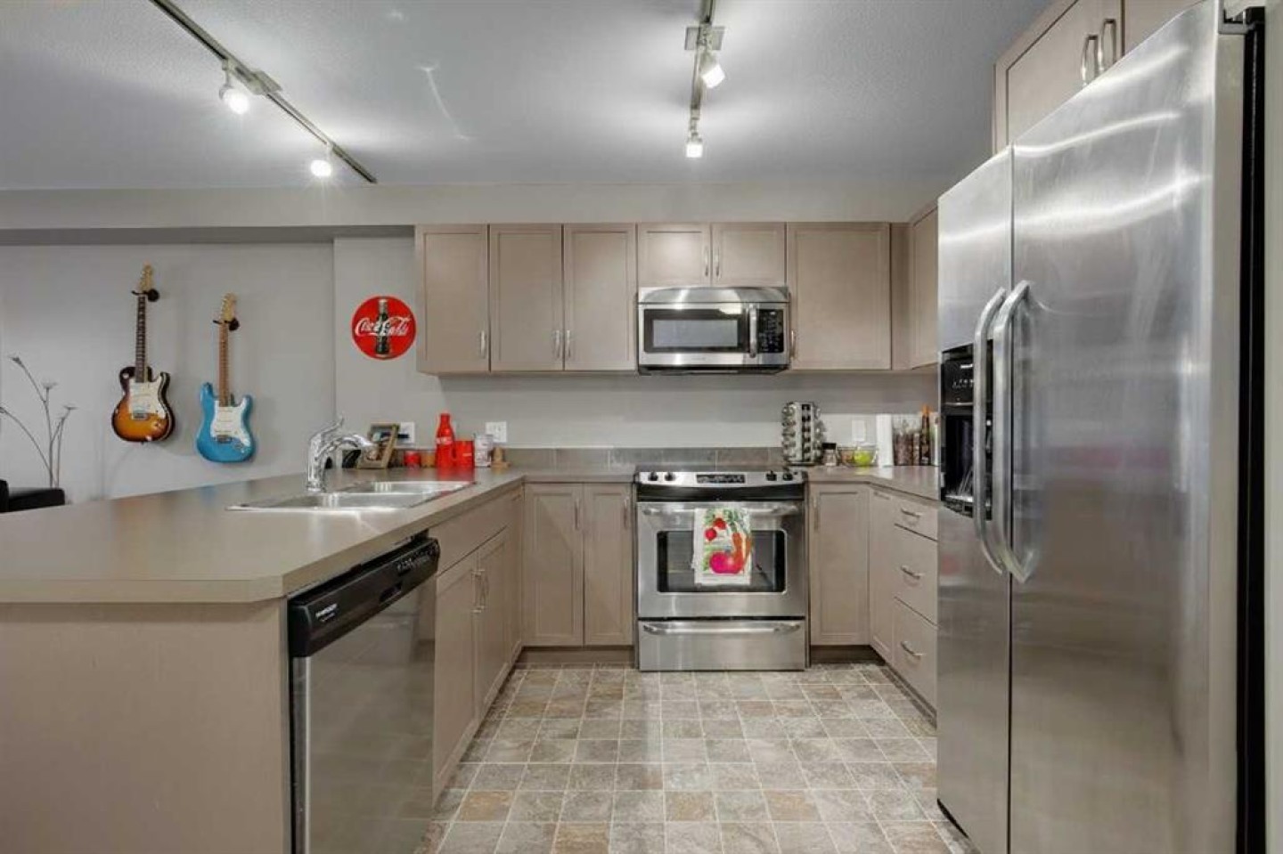 Beautifully appointed 1 bedroom unit in a quiet adult building in the Kincora Summit complex. Unit offers an open functional floor plan, upgraded appliance package and full-sized washer dryer. The u-shaped kitchen is exceptionally functional with ample counterspace and storage. Additional features in the kitchen include built-in microwave, breakfast bar and ceiling height cabinetry. The open concept living area provides a fantastic space for relaxing or entertaining with access to the SW facing LARGE 120 sq ft patio with BBQ gas line. Bedroom is a great size and offers a walk-through closet and cheater ensuite. Unit is uniquely located on the second floor and situated between a stairwell and elevator allowing a buffer from your neighbours! Enjoy low condo fees and efficient in floor heating in this safe and secure building. Excellent location close to all major traffic routes the airport and a quick walk to the newly constructed shopping plaza for all your shopping needs.