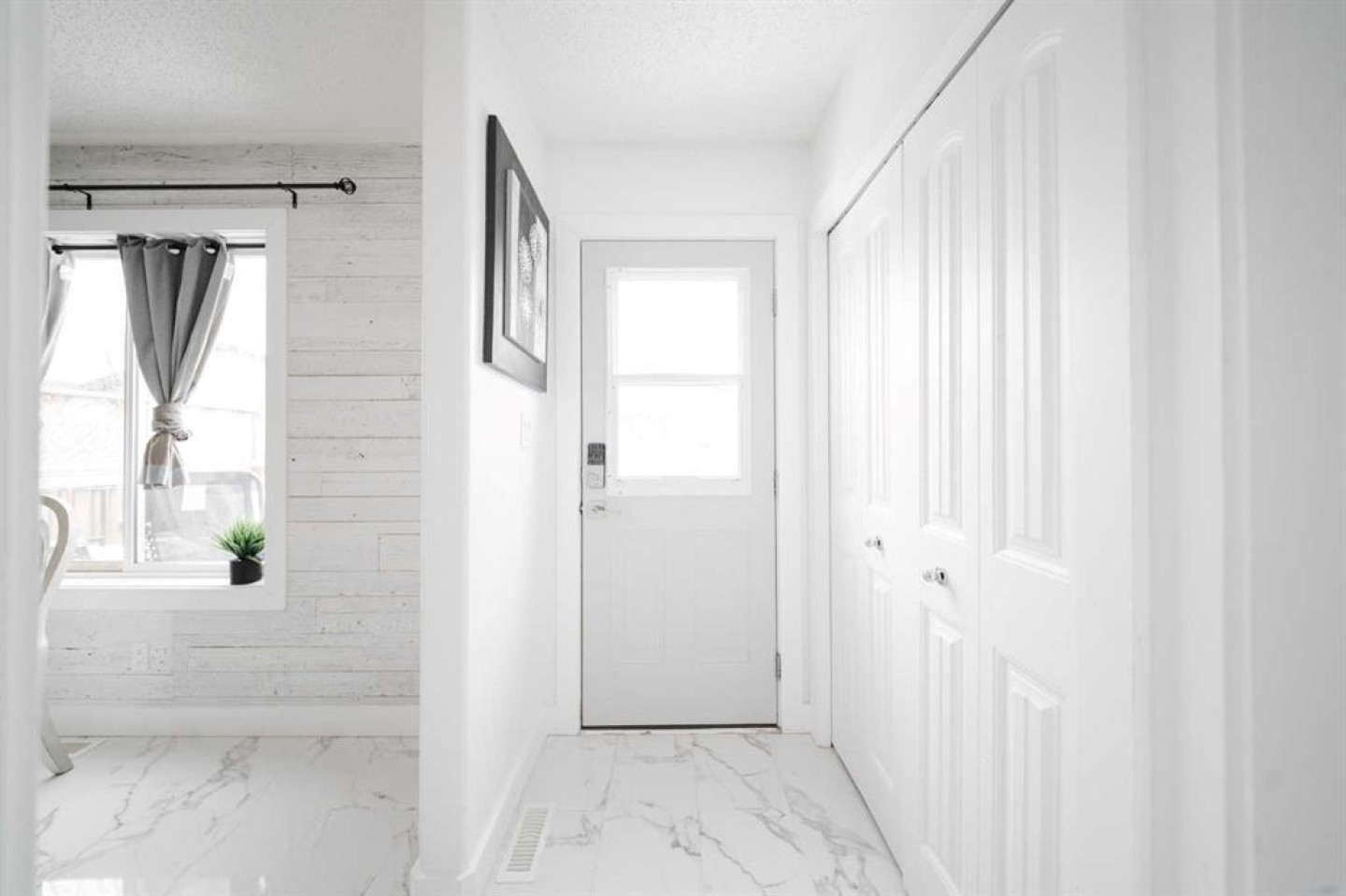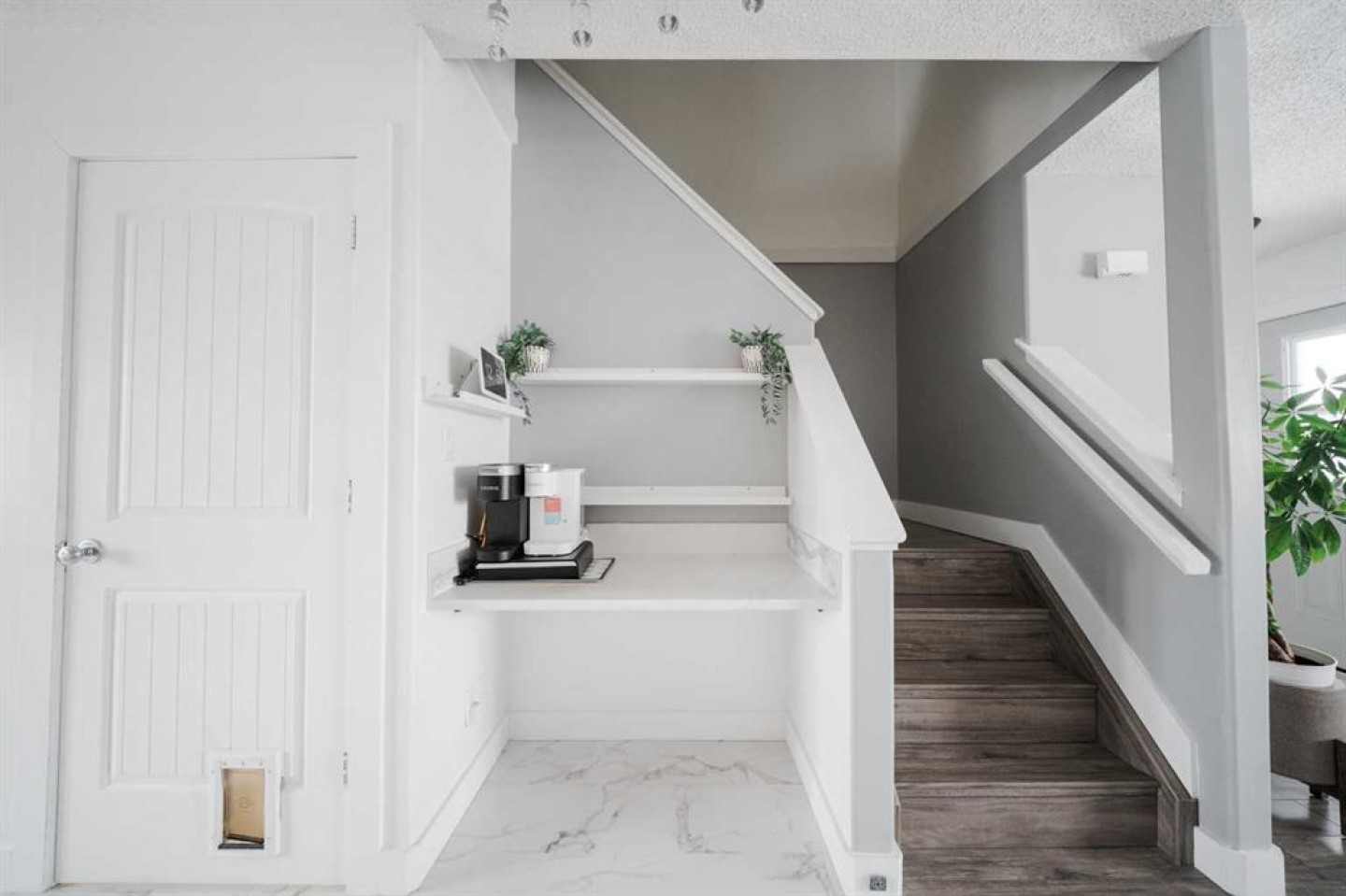 Welcome to 237 Sandstone Lane, where exceptional craftsmanship, thoughtful upgrades, and timeless design come together in one stunning Stone Creek home. Major exterior improvements include updated shingles, exterior doors, a newer deck, and a dedicated hot tub pad with wiring completed (permit approved). Step inside to a spacious front living room featuring modern laminate flooring and a striking feature wall, flowing seamlessly into a show-stopping white kitchen by Jos-Will Millwork. Built with solid maple doors, elegant gold hardware, under-cabinet lighting, glass-front uppers, and a massive 8-foot island topped with seamless quartz countertops, this chef’s kitchen is both beautiful and built to last. Upgraded Frigidaire Professional Series appliances (including a gas stove), luxury vinyl plank flooring, contemporary lighting, a coffee bar, and a built-in wine cooler complete the space. The main level also offers a stylish updated 2-piece bathroom and a spacious dining area accented by a chandelier overlooking the backyard. Upstairs you’ll find new trim, new closet doors, three bedrooms, and two fully renovated bathrooms — all finished with matching cabinetry, quartz countertops, new toilets, mirrors, and luxury vinyl plank flooring for a cohesive high-end feel. The newly completed basement features a professionally finished California knockdown ceiling, cozy family room, spacious bedroom, full bathroom, and beautiful laminate flooring — perfect for guests or growing families. Outside, enjoy the private backyard oasis with a deck (2021) with privacy lattice, full fencing, tasteful landscaping with Aspen trees, interlocking brick, flower beds, an enclosed dog run with artificial turf, and a detached double garage (2022) with rear alley access. Additional highlights include central A/C and a prime location close to schools, shopping, and all Stone Creek amenities. Move-in ready luxury — this home truly checks every box!