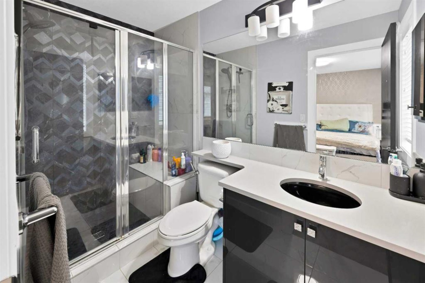 Welcome to this impeccably maintained 3-bedroom detached home in the highly desirable community of Cornerstone, offering the perfect blend of modern design, comfort, and functionality. A former show home, this property features premium finishes and thoughtful upgrades throughout. The main floor welcomes you with a bright open-concept layout, filled with natural light and enhanced by designer fixtures. The seamless flow between the living, dining, and kitchen areas makes it ideal for everyday living and entertaining. Upstairs, you’ll find three spacious bedrooms, two full bathrooms, and a convenient upper-floor laundry room. The Master Bedroom includes a walk-in closet and a 4-piece ensuite, while the remaining two bedrooms share a well-appointed main bath. The fully developed basement offers a versatile studio-style living space with a private rear entrance, complete with its own kitchen, full bathroom, and open living/sleeping area (Illegal Basement)—perfect for extended family or added flexibility. Step outside to a beautifully landscaped backyard featuring a deck, fire pit, and central air conditioning for year-round comfort.