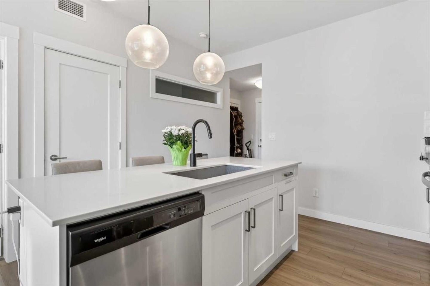 Experience effortless living in this beautifully finished top-floor condominium located in the vibrant lake community of Auburn Bay, complete with separately titled underground parking and a dedicated storage area for added convenience and security. This 2-bedroom, 1-bathroom home features an open-concept layout that seamlessly connects the kitchen and living areas, creating a bright and welcoming space for everyday living and entertaining. The kitchen is appointed with quartz countertops throughout, stainless steel appliances, and a central island, while luxury vinyl plank flooring enhances the entrance, kitchen, and living room. The bathroom is finished with tile, and both bedrooms offer carpet for added comfort. Step onto the west-facing balcony, complete with a natural gas line for BBQ, ideal for enjoying evening sun and outdoor meals. Residents of Auburn Bay enjoy exclusive lake access, year-round recreation, scenic pathways, playgrounds, nearby schools, shopping, dining, and convenient access to major roadways and transit - making this an exceptional opportunity in one of Calgary’s most sought-after southeast communities.