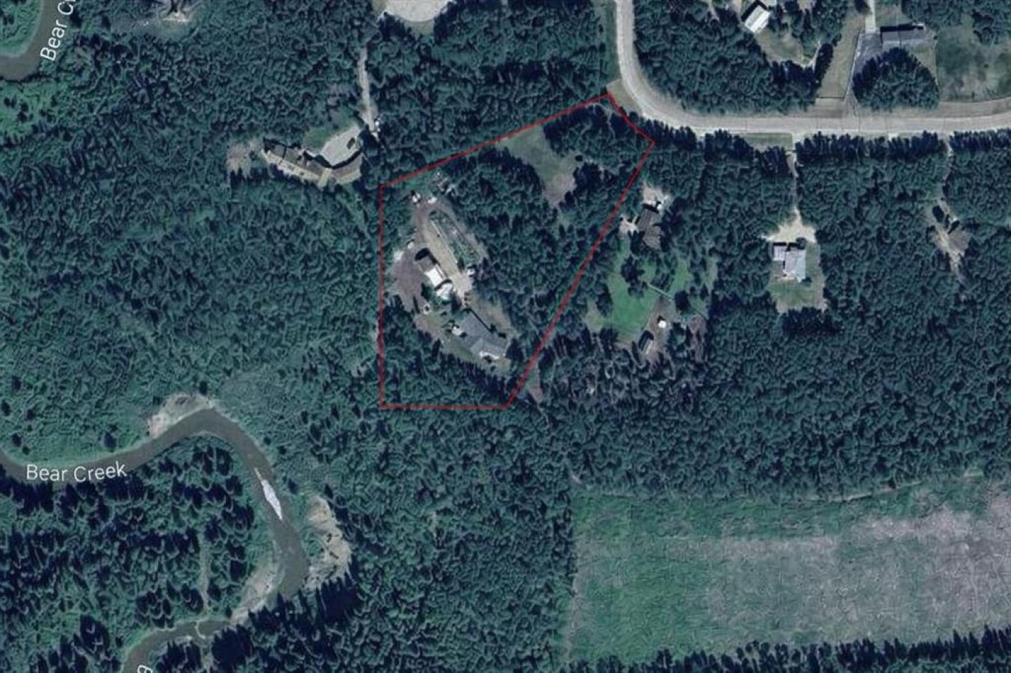 **ONE OF A KIND PROPERTY** Over 2,000 sq. ft. bungalow is nestled on a beautifully treed 4-acre lot backing onto green space and Bear Creek/Crown Land, with miles of ATV and walking trails right in your own backyard. The home offers 3 bedrooms and 2.5 bathrooms, including a large ensuite with a tiled walk-in shower, soaker tub, and dual sinks, plus two generous living rooms featuring wood-stove inserts for cozy winter days. A large upgraded kitchen and dining area provide the perfect space for entertaining, while recent updates include brand-new shingles and two new furnaces, along with a newer hot-water-on-demand system. Basement is undeveloped. The garage is huge with a radiant gas heater and man door. The property is fully fenced, garden plots with fruit trees, outbuildings and more. Zoned CR-2 (allows for some horses and other animal units) On a water well, grandfathered in septic system and ample power locations ran throughout the property and a concrete pad ready for a detached garage or shop for future developments! If you are looking for ultimate privacy, space, unending adventures this could be the one!