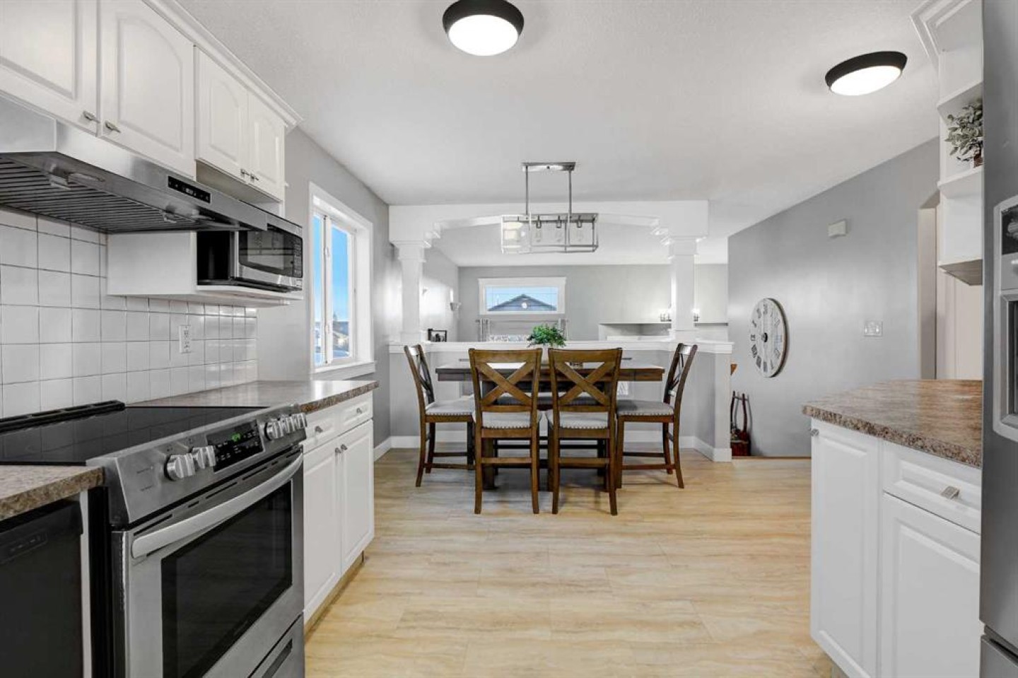 Welcome to this 4 bedroom, 3 bathroom, beautifully maintained and updated bi-level family home, ideally located in the desirable Westpointe neighbourhood. This 1,100 sq. ft. residence, built in 2002 has no carpets and offers 3 bedrooms/2 bathrooms up and 1 spacious bedroom / 1 bathroom down, providing a functional layout perfect for growing families. The primary bedroom has a nice sized walk in closet, and 3 piece ensuite. As you enter the home you have a cute little front porch perfect for morning coffees. The main level showcases numerous upgrades including newer flooring throughout the main floor and upper floor, stainless steel appliances, newer stove and range hood, updated baseboards and trim, and modern light fixtures. All the upstairs bedrooms feature new ceiling fans, enhancing comfort and style. The fully developed basement is designed for both relaxation and entertaining, featuring a cozy wood stove, a custom bar area, a large renovated bedroom, and an updated 3-piece bathroom. Additional highlights include an incredible crawl space storage area with a custom access door, and newer washer and dryer. Additional updates include newer shingles and a hot water tank (2023), ensuring long-term peace of mind for future owners. The attached garage is finished with a gas heater, a new garage door, making it ideal for year-round use. Step outside to enjoy the impressive outdoor space, featuring a private two-tiered deck with enclosed storage beneath the deck, and a new 8’ x 16’ shed. The yard offers ample space for family activities. This well maintained family home is in a quiet, amenity-rich location on a local roadway, near schools, shopping, and major services, this property continues to stand out for its quality, care, and thoughtful upgrades. You are close to Costco, Eastlink Centre, Shopping and Restaurants.