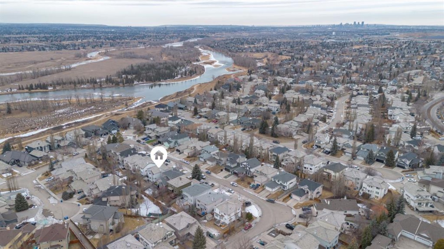 Lovingly cared for by the same owner for the past 27 years, the home reflects a true pride of ownership, evident in its exceptional upkeep and thoughtful attention to detail throughout. Perfectly positioned on a quiet street just one block from the 48-kilometre Bow River pathway system, this beautifully maintained residence offers an exceptional blend of serenity, natural light, and thoughtful design. A bright south-facing backyard captures sun throughout the day, creating an inviting outdoor retreat framed by mature landscaping, a professionally finished patio, and a low-maintenance composite deck with modern railings completed in 2021. The exterior has been meticulously cared for over the years, including routine fence upkeep and a treated shake roof professionally serviced on a consistent three-year schedule. Upon entry, you are welcomed by a striking custom staircase set beneath dramatic open foyer, softened by plush carpeting and an immediate sense of warmth and scale. The main floor unfolds gracefully with gorgeous hardwood floors from the elegant front sitting room into a formal dining area, continuing into the beautifully renovated kitchen and breakfast nook before opening to a second inviting living space. A thoughtfully positioned main floor office and functional mudroom complete the level, all framed by refined nine-foot ceilings and cohesive design elements introduced during the comprehensive 2016 renovation. The custom kitchen serves as the heart of the home, showcasing granite countertops, a quartz island, and floor-to-ceiling cabinetry, seamlessly connected to the living room where a gas fireplace creates architectural presence and comfort. Updated flooring, railings, ceilings, and designer lighting further enhance the timeless aesthetic throughout. Upstairs, the home transitions into a true retreat. The expansive primary suite offers a luxurious escape with its own lounging area and custom walk-in closet, leading to a stunning five-piece ensuite featuring dual sinks, a deep soaker tub, and a custom glass-enclosed shower. Two additional generously sized bedrooms and custom 3pc bathroom complete the upper level, all bathed in abundant natural light and designed with the same attention to detail and quality craftsmanship found throughout the home. Mechanical upgrades offer both comfort and peace of mind, including a high-efficiency furnace, central air conditioning, and a newer hot water tank. Additional features such as a Culligan water softener and an app-controlled smart garage door opener (2021) add everyday convenience. The expansive sunshine basement remains untouched, already equipped with a bathroom rough-in and ready for future customization. Quietly located yet exceptionally connected to Calgary’s premier pathway network, this home delivers a rare combination of mindful upkeep, modern upgrades, and long-term potential — an ideal setting for comfortable living today and effortless growth into tomorrow. Welcome Home!