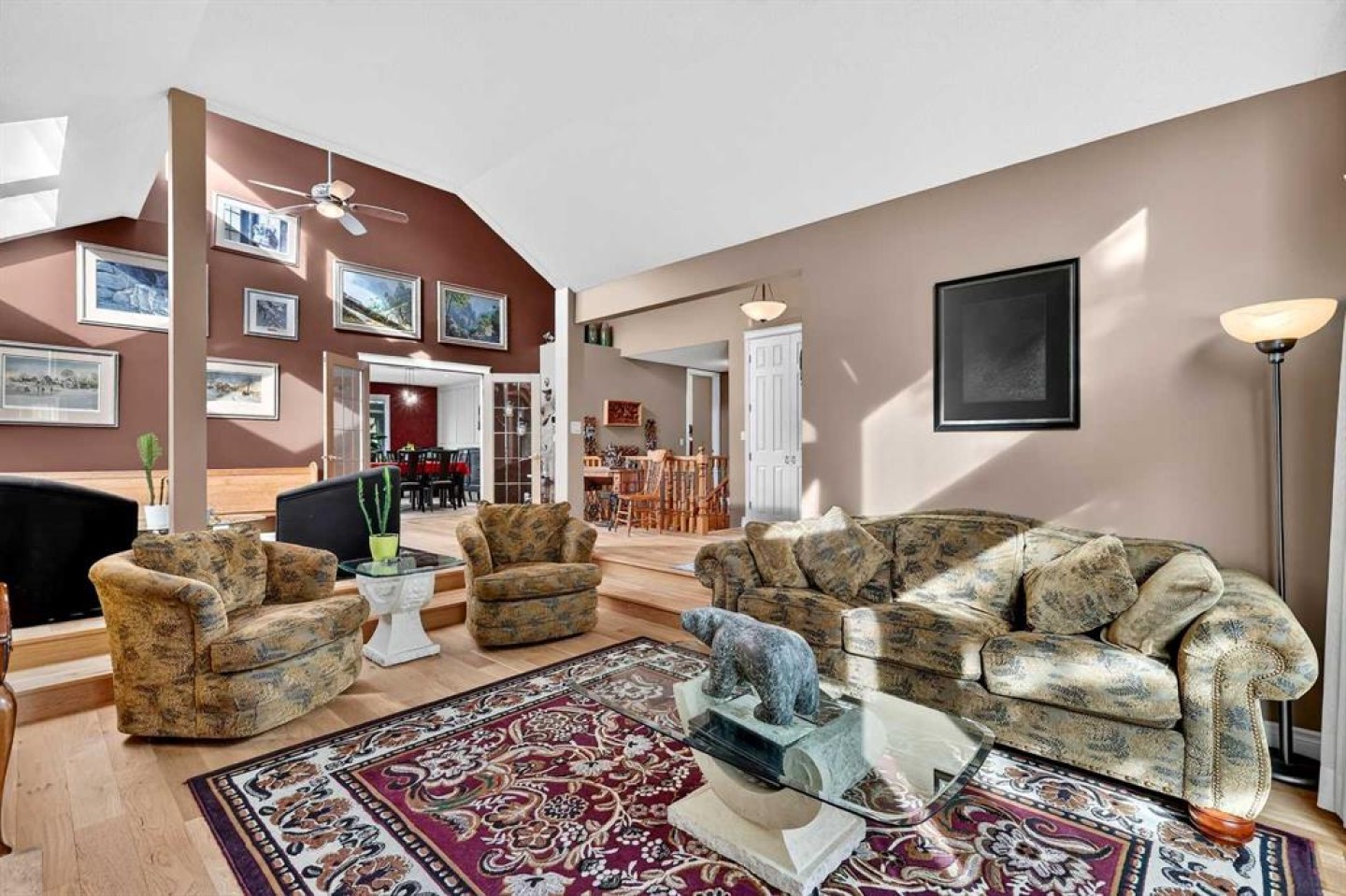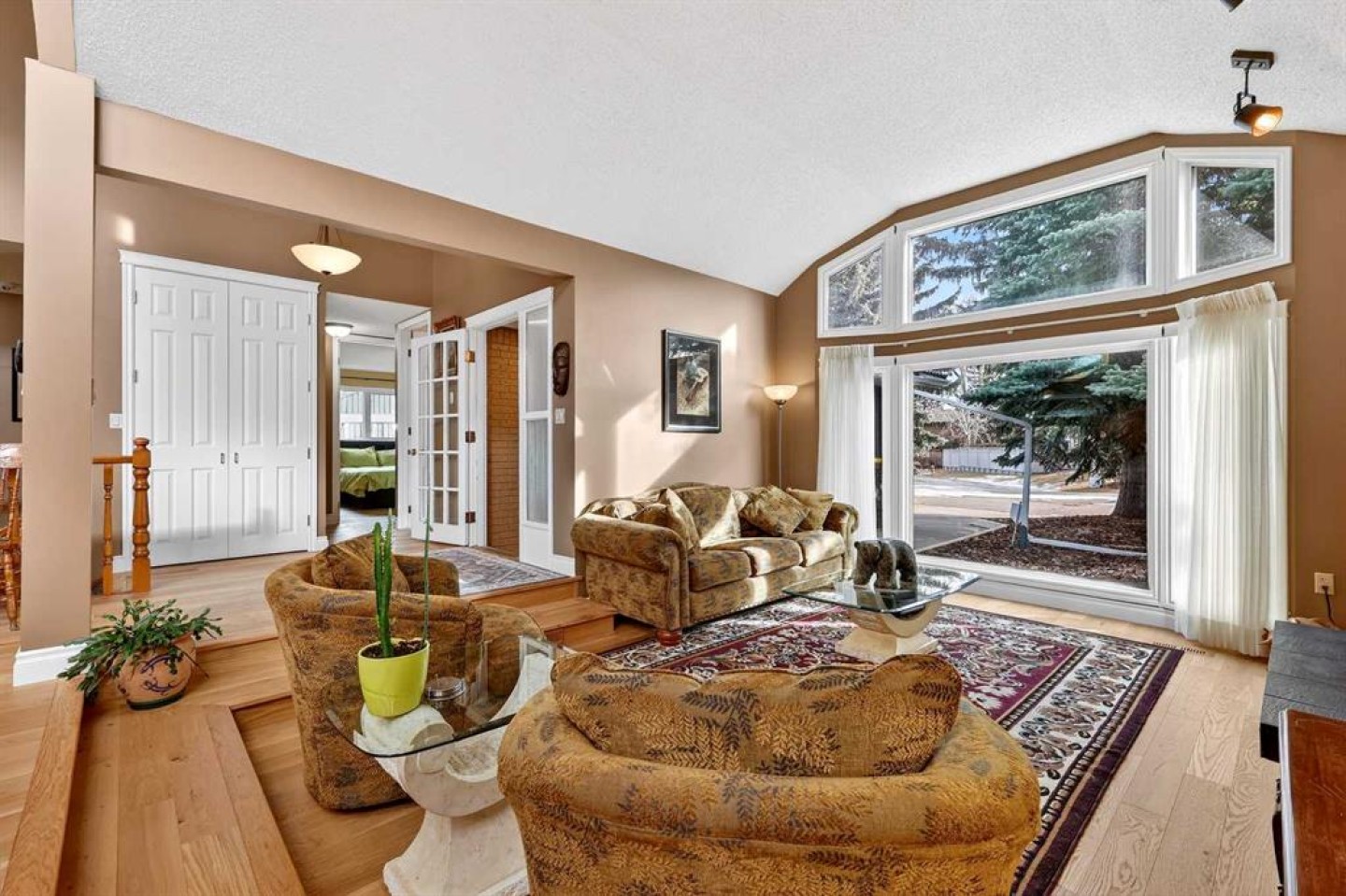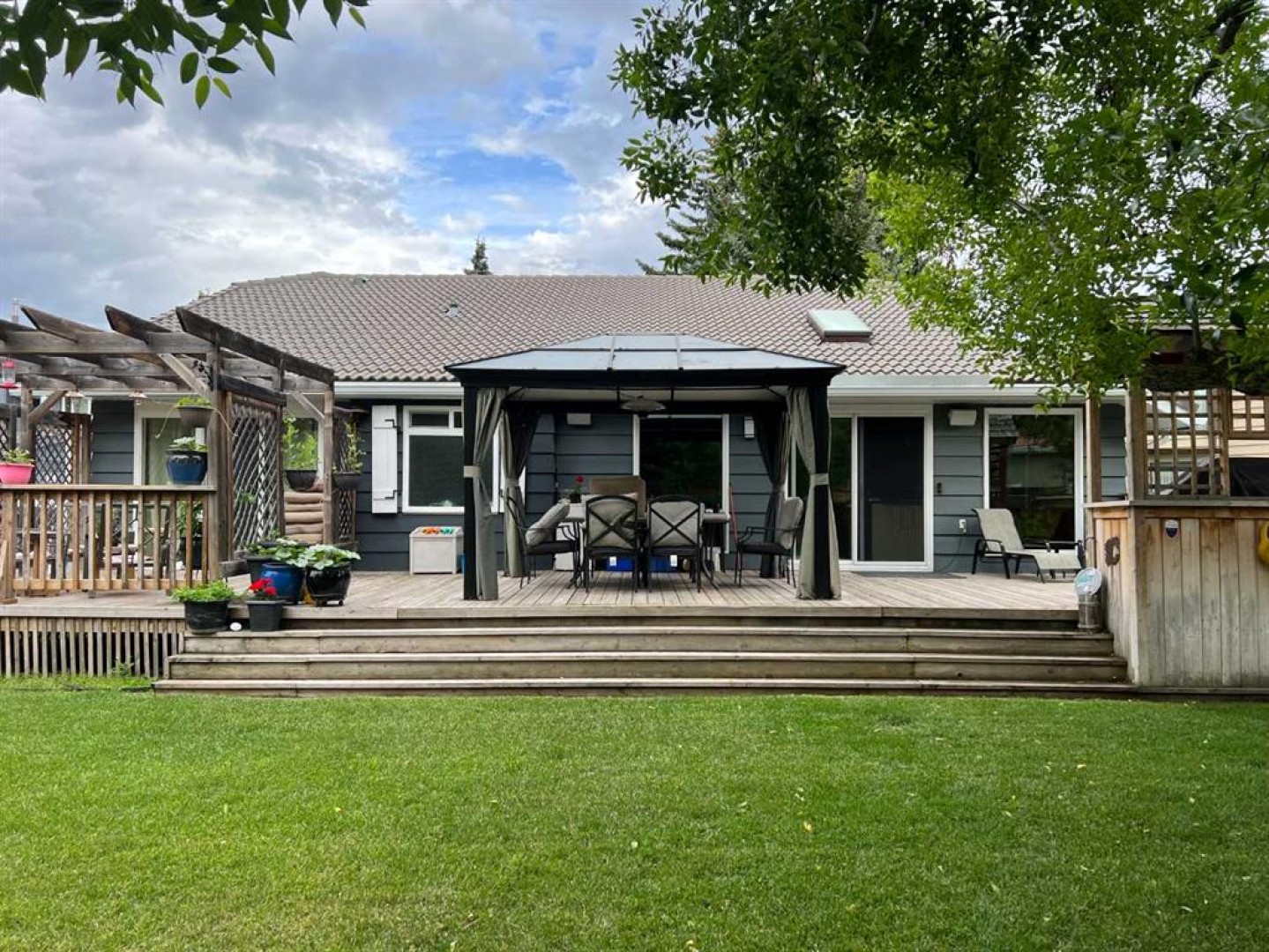 Welcome to this lovingly maintained Oakridge home where timeless character, thoughtful updates, and exceptional indoor and outdoor living come together on one of the largest pie shaped lots in the community. Step inside to a private foyer that creates a natural transition from outdoors to in and provides a comfortable space for family and guests to settle in. This entrance still showcases the home’s original front door, setting the tone for the warmth and charm found throughout. Beyond the second entry, the home opens into a bright and airy living space featuring soaring ceilings and abundant natural light. The spacious living room offers a cozy gas fireplace with a beautiful brick surround and a large bay window that fills the room with sunshine, while the tiered upper living area creates excellent flow for both daily living and entertaining. The kitchen is truly the heart of the home and designed for gathering. It features a massive island, granite countertops, generous cabinetry, and an additional wet bar, making it perfect for hosting family dinners, holiday celebrations, or casual evenings with friends. The stainless steel appliance package includes a Wolf range, brand new dual ovens, a one year old refrigerator, dishwasher, and built in microwave. A reverse osmosis tap that feeds the refrigerator provides added convenience and water quality. Sliding patio doors lead to the expansive back deck, creating an ideal space for morning coffee, summer barbecues, and seamless indoor outdoor entertaining. The primary retreat offers a peaceful escape with sliding glass door access to the deck. The spa inspired ensuite features a 40 gallon soaking tub, separate shower, double vanity, and private water closet. Two additional bedrooms, a 3 piece guest bathroom, and a laundry room with Miele washer and dryer complete the main level, along with direct access to the double attached garage. The fully developed basement expands the living space with two additional bedrooms, a comfortable TV and family room, office or flex area, cold storage, and a dedicated work or craft space. A 3 piece bathroom with a functional dry sauna creates a relaxing retreat. Dual furnaces provide independent comfort for each level. Outside, the mature landscaping includes pear, cherry, and apple trees, along with a pergola, greenhouse, and expansive yard offering exceptional gardening and entertaining opportunities. Additional upgrades include a new front bay window installed in 2016, all remaining windows replaced in 2017, and a fully functional vintage radio intercom system. Located minutes from South Glenmore Park, shopping, restaurants, numerous amenities, and offering easy access to the South Ring Road via 90th Avenue, this home delivers comfort, character, and an outstanding Oakridge lifestyle.