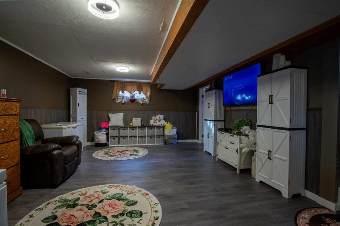 This Taber bungalow home has an excellent layout and plenty of space for the whole family! Featuring five bedrooms, three bathrooms, a finished basement, recent renovations including furnace and air conditioning, and an attached double garage finished with flooring and lighting, this home is ideal for any family wanting space to explore hobbies and enjoy quality time together. Step inside and you'll enter into a cheerful living room with large front windows and high ceilings. Further back, the open-concept kitchen and dining area features plenty of counter and cupboard space and access to the rear deck to make summer entertaining a breeze. Down the hall, two bedrooms and a four-piece bath can be found nearby to the primary bedroom which includes a three-piece ensuite bath. Downstairs, you'll find a large rec room alongside three bedrooms, a three-piece bath, a walk-in closet, and a convenient storage room. The double attached garage has been fully finished with shelf storage and tile flooring, adding to the space available to set up a play space, games room, or store tools and recreation equipment. Out on the spacious back deck, stairs lead down to a firepit, rear lawn, and shed storage so you can enjoy warm summer nights hosting friends and family. If a bungalow home with a functional layout in a quiet neighborhood sounds like the place for you, give your REALTOR® a call and book a showing today!