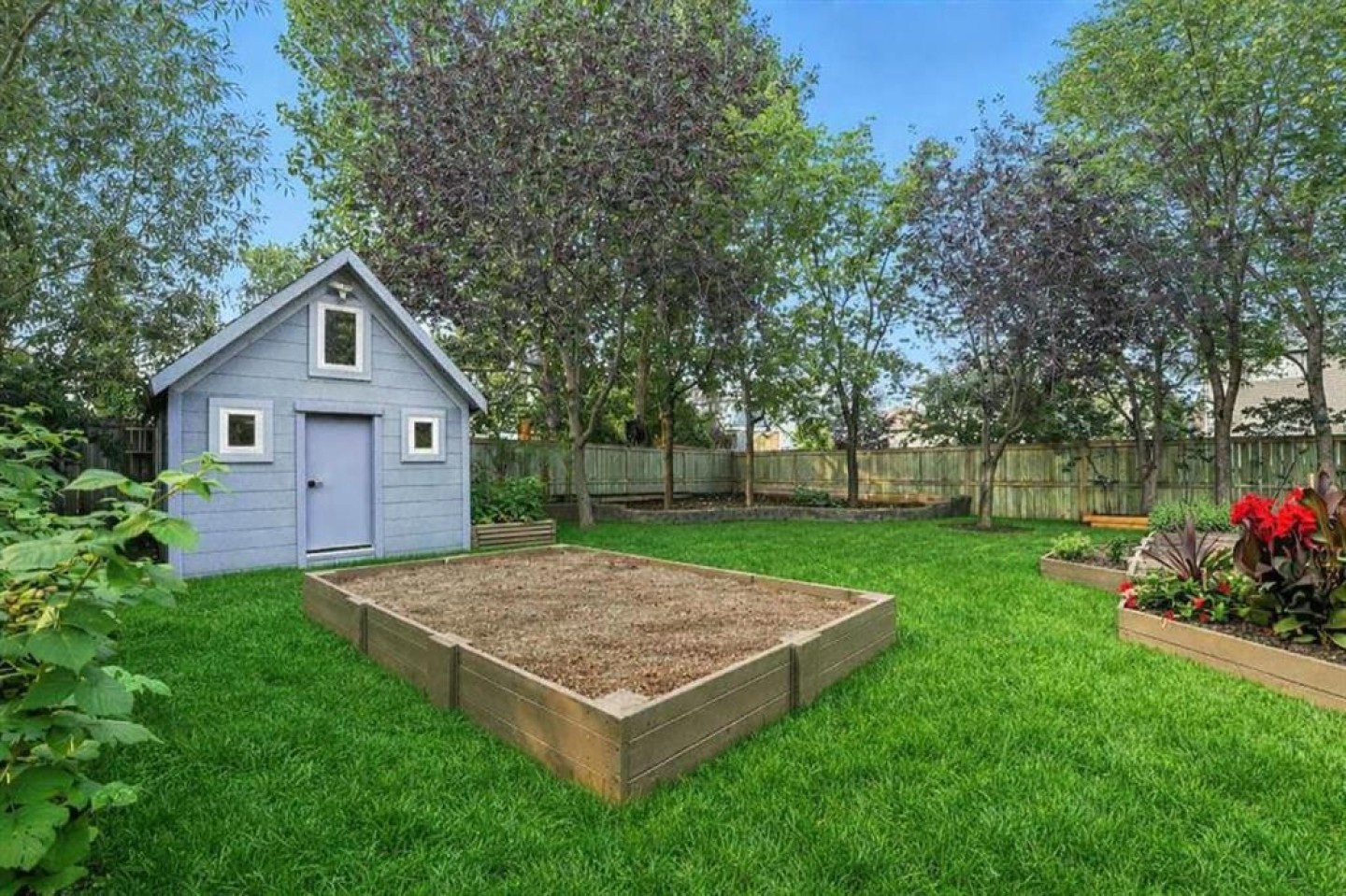 Back Yard, Few Trees, Garden, Gazebo, Landscaped, Rectangular Lot, Treed, Yard Lights
