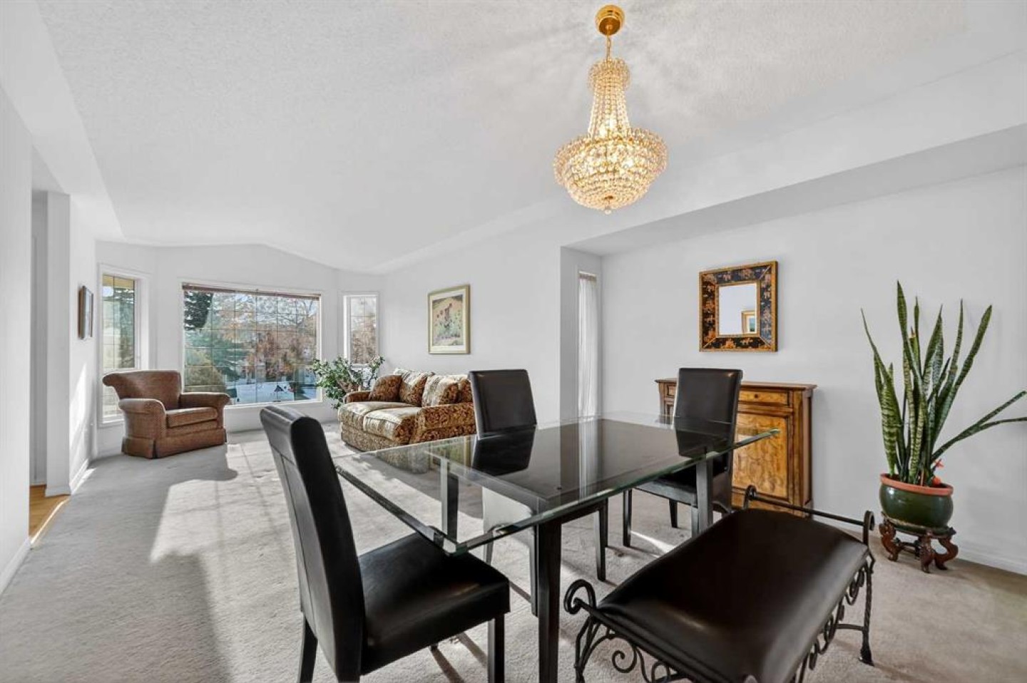 Welcome to easy living in this charming semi-detached bungalow in the heart of Signal Hill. With over 2,100 sq. ft. of finished space, no condo fees, and low-maintenance perks like included lawn care and snow removal ($150/month), this home is ideal for anyone looking to simplify without sacrificing space or comfort. Step inside to a bright and welcoming main floor. The front living room features a bay window that brings in natural light and overlooks the beautifully kept front yard. A dedicated dining room offers the perfect space to gather with family or friends. Toward the back of the home, the kitchen is warm and inviting, with a breakfast bar and cozy dining nook that opens to a relaxed family room complete with a gas fireplace and custom built-in shelving. The spacious primary suite offers a quiet retreat with a walk-in closet and a 4-piece ensuite featuring a soaker tub. Main-floor laundry, a convenient powder room, and direct access to your private backyard make everyday living seamless and functional. The finished basement is perfect for guests, hobbies, or movie nights. It includes a large recreation area, a generous second bedroom, and another full 4-piece bathroom. A roomy utility/storage area adds even more flexibility. Notable upgrades include a new roof (2024) and a double attached garage with access via a paved rear lane. The home sits in a quiet, well-maintained setting within a well-established community known for its walkability and access to nature and amenities. You’re just minutes from Signal Hill Centre and Westhills Towne Centre for groceries, dining, and daily essentials. Enjoy nearby parks, walking paths, playgrounds, transit, and LRT, with easy access to Stoney Trail and Highway 8 for weekend escapes to Bragg Creek or the mountains. No age or pet restrictions make this a flexible choice for many lifestyles—from right-sizers to snowbirds to anyone looking for a low-stress home in one of Calgary’s most desirable west-side communities.
