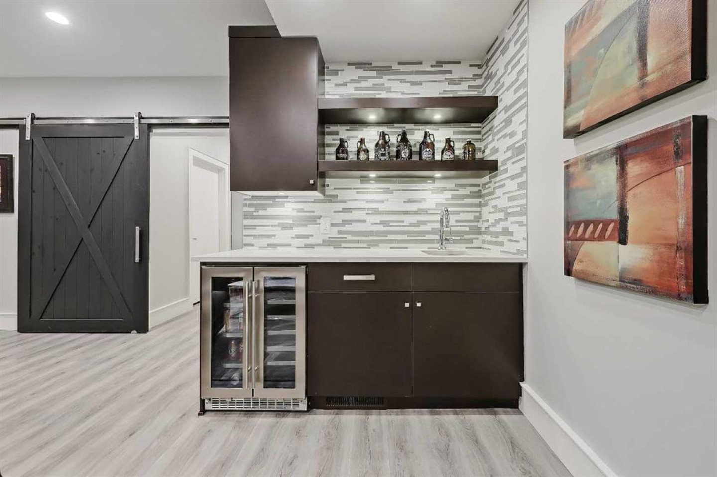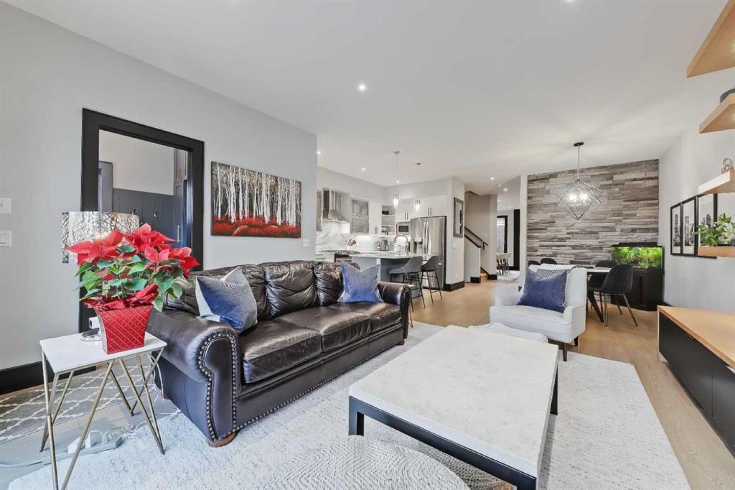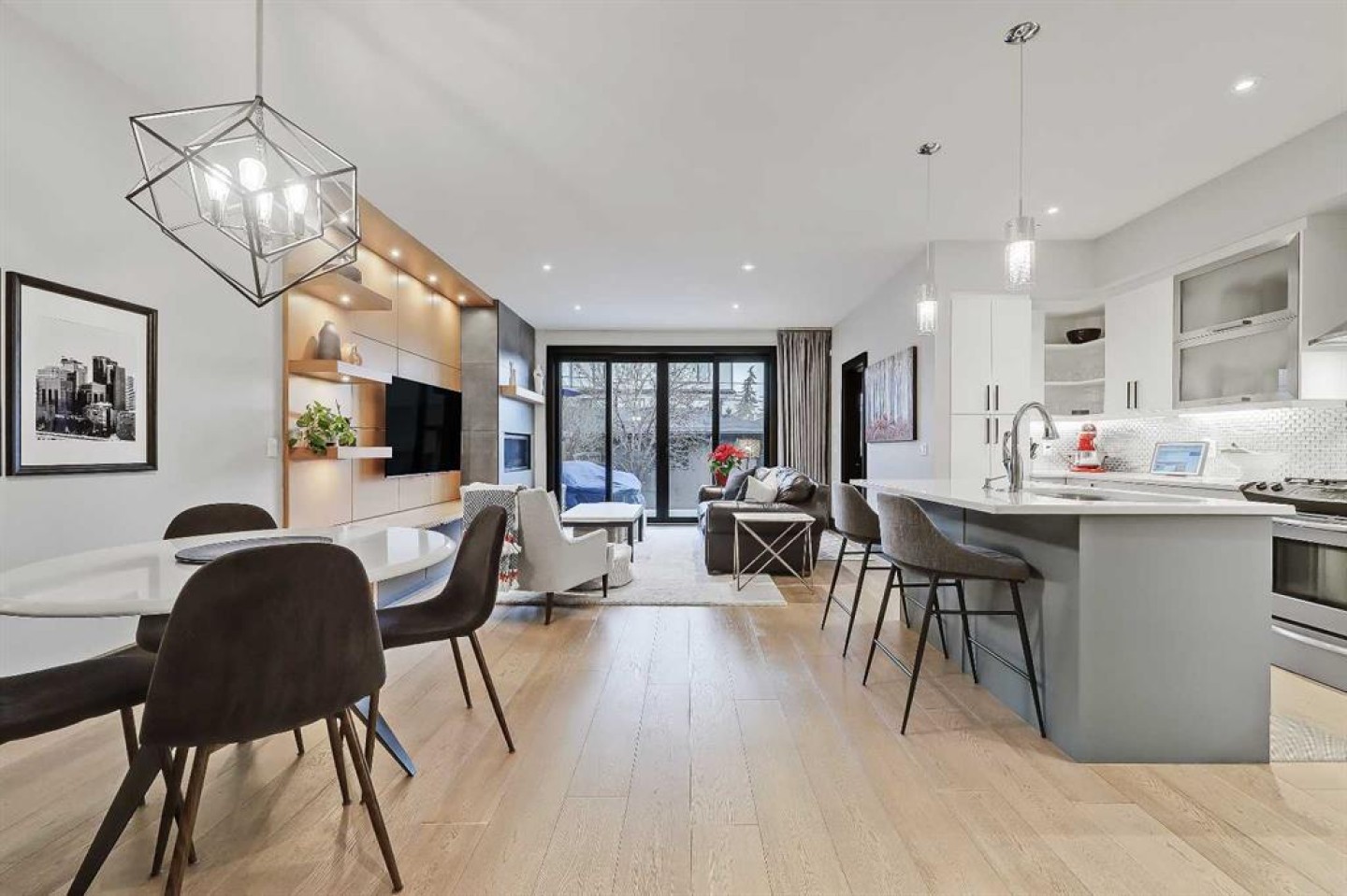 STYLE, COMFORT, AND LOCATION. Experience the best of Marda Loop living in this gorgeous semi-detached home located in the highly sought-after Richmond community. Just a quick 10-min walk away from shops, amenities, fitness studios, restaurants, and more! Families will appreciate the proximity to schools, parks, and playgrounds. Recently renovated and meticulously maintained, this home boasts over 2,700 sq ft of developed living space, 4 beds and 3.5 baths, a spacious basement, a private fenced backyard, and a double detached garage. This is a perfect opportunity for anyone seeking the best of inner-city living. Step inside through the oversized custom fibreglass front door into the welcoming formal front foyer with tiled flooring and a large closet. The main floor features engineered hardwood flooring throughout, leading to the bright formal dining room, which offers plenty of room for a full furniture arrangement. The modern kitchen features ample cabinetry and counter space, quartz counters, and a central island with bar seating, dual basin stainless steel sinks with a garburator, and a full stainless steel appliance package. The adjacent dining nook with an accent stone wall is a great spot for casual meals. The expansive living room boasts a custom built-in entertainment center with display shelves and pull-out drawers, and a tiled gas fireplace. High-end Pella glass sliding doors lead to the rear deck and backyard. Just off the living room is a convenient tiled mudroom with a pocket door, built-in storage, hooks and access to the backyard. Neatly tucked away, a 2pc powder room with tiled flooring completes the main floor. The upper floor showcases an impressive primary bedroom with large windows, a private balcony, a walk-in closet, and a luxurious 5pc ensuite. The ensuite features a quartz vanity with dual sinks and storage, a drop-in soaker tub with a handheld shower wand and tile surround, and a fully tiled stand-up shower. Two additional bedrooms with oversized windows and large closets, a main 4pc bathroom, and a tiled laundry room provide comfort and convenience. Downstairs, the fully developed basement features luxury vinyl flooring and in-floor heating throughout. A modern barn door opens into the massive rec room, which features a wet bar with a beverage fridge, quartz counters and tiled backsplash, and shelving. Down the hall, you’ll find a wine room with 10 mm glass enclosure, a guest bedroom with a walk-in closet, and a sleek 4pc bathroom. Outside, enjoy a composite deck, stone patio, grassy area, gas line for BBQs, and an insulated, drywalled, double-detached garage. Additional features include a high-efficiency furnace, central A/C, new roof (2024), new front door (2023), new main-floor sliding doors (2023), and a new fridge (2024). Don't miss out on this exceptional property that offers style, functionality, and an unbeatable location. Schedule your showing today and discover the best of Marda Loop living!