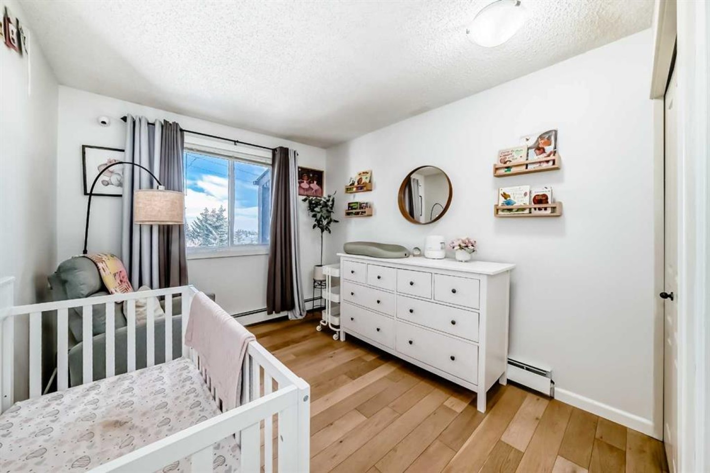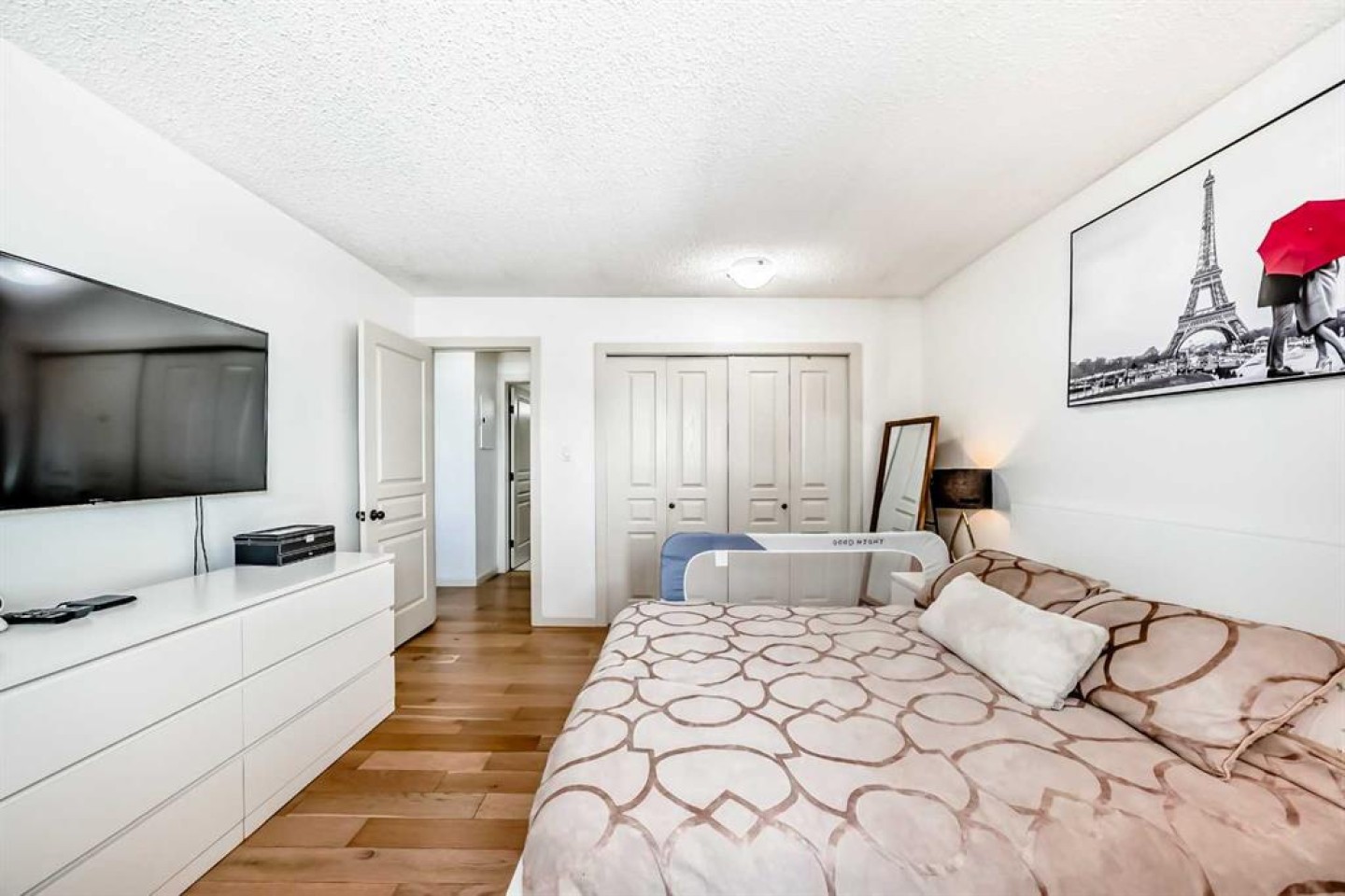 2 TV wall mounts (living room & primary bedroom), Paris picture (primary bedroom) Shelving by the front door.Black book shelf & free standing mirror in the loft.Four matching wooden shelves & mirror in the secondary bedroom.
