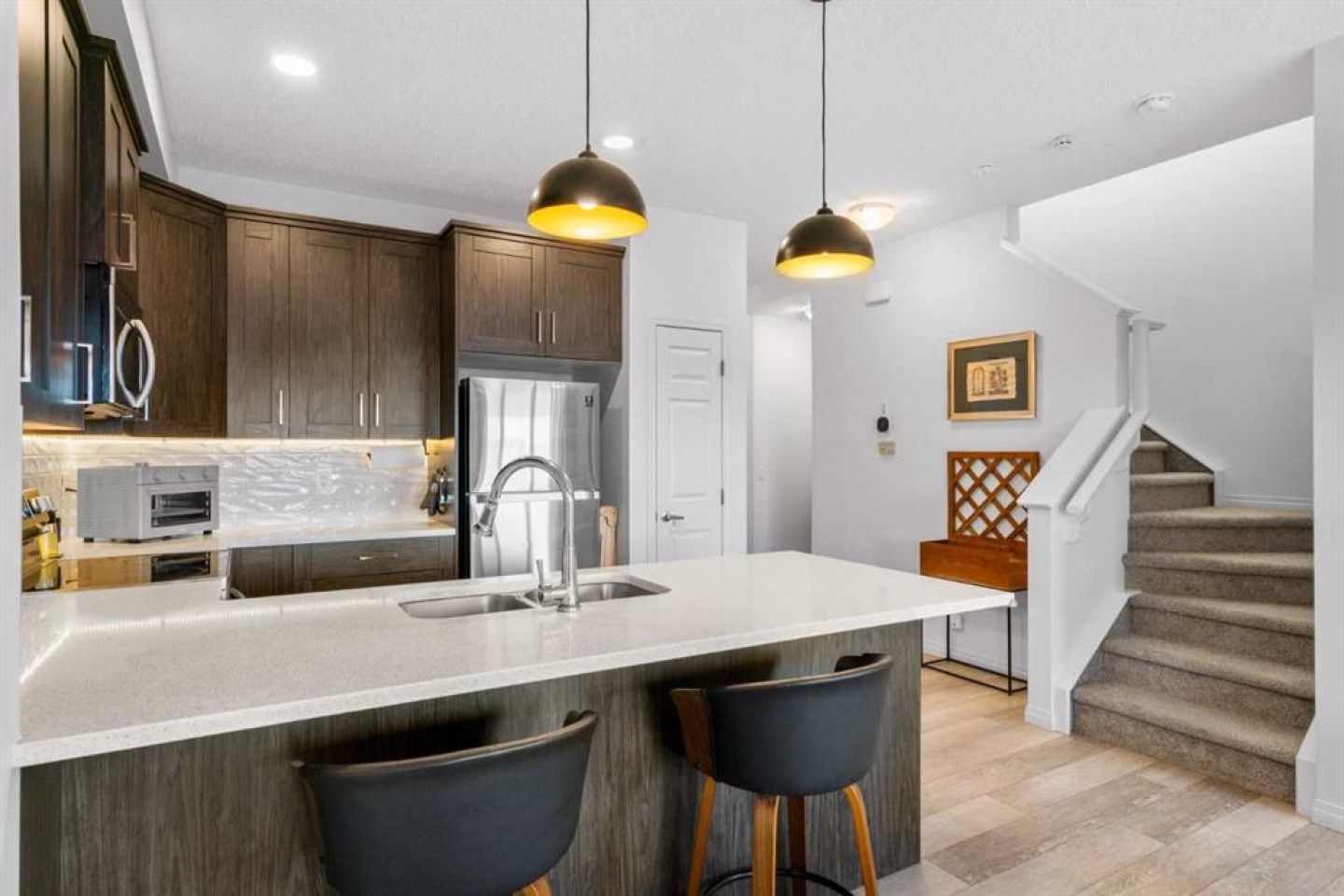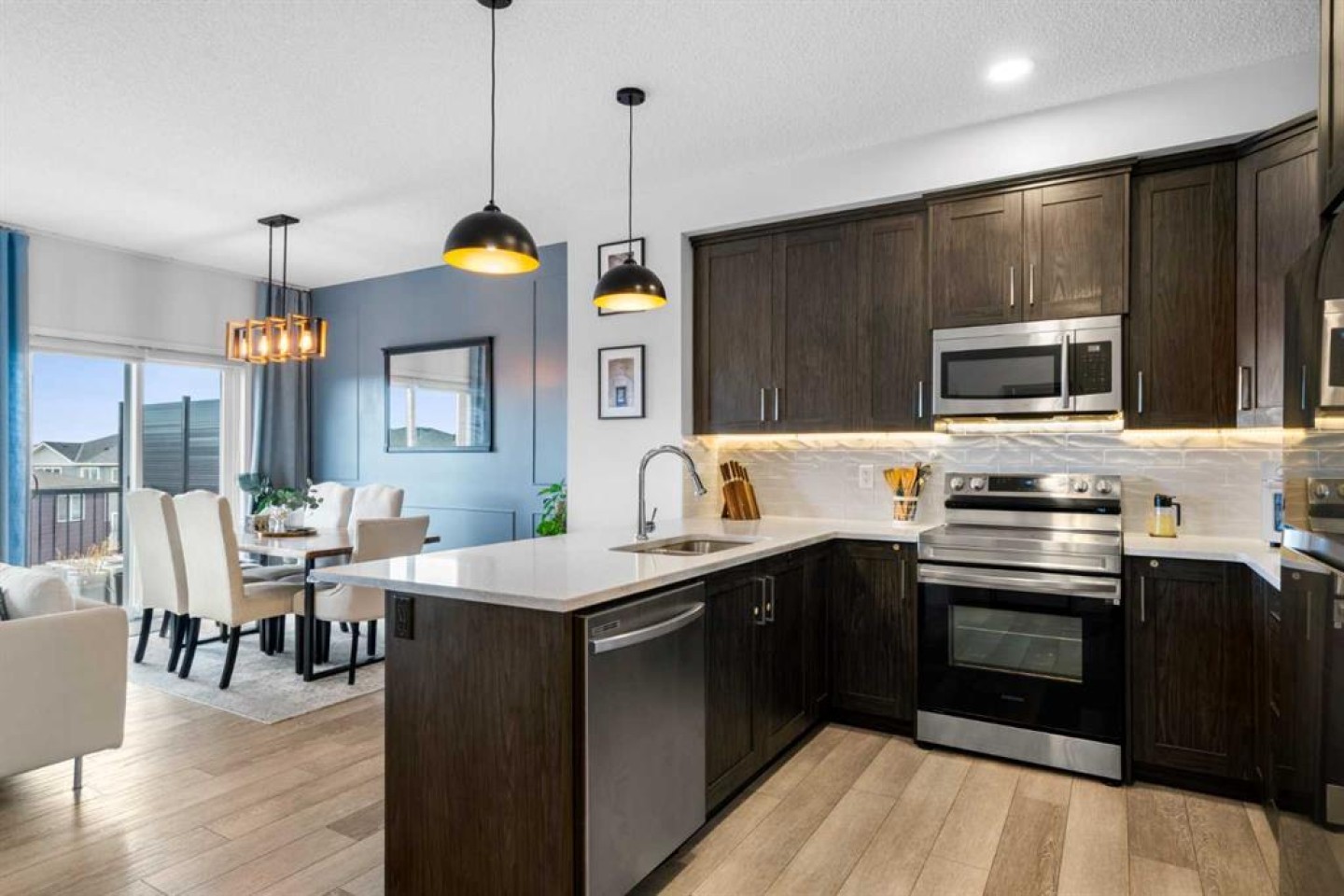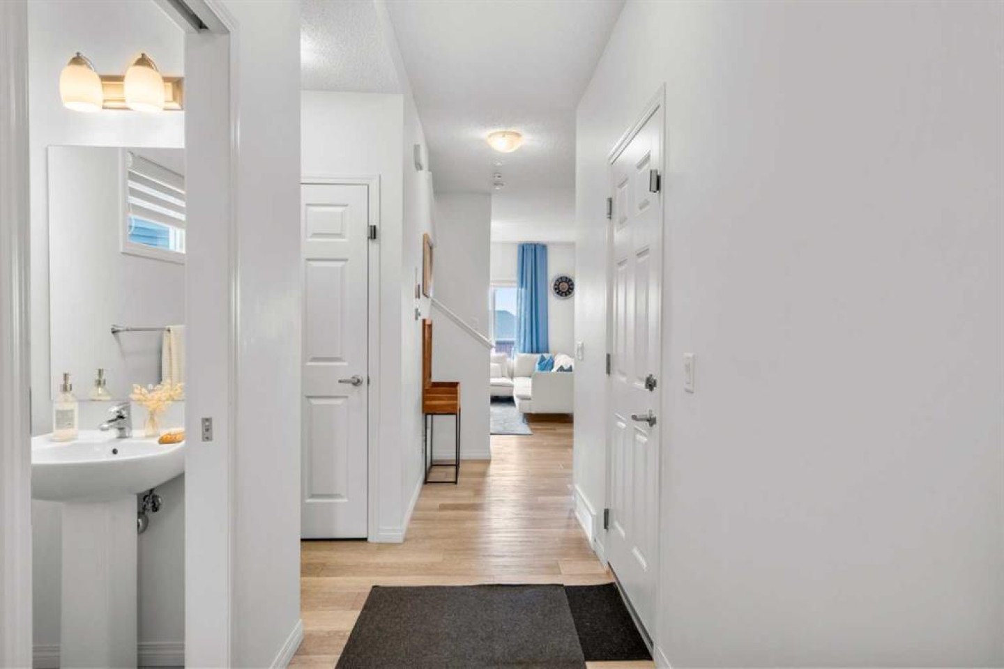 ***Home Sweet Home in Desirable Carrington*** Welcome to this beautifully maintained 2-storey home, ideally located in a quiet and perfectly positioned pocket of Carrington — just steps to parks, pathways, shopping, transit, and convenient new access routes. Offering over 1,400 sq. ft. of thoughtfully designed living space, this fully developed home showcases a modern décor palette and numerous upgrades throughout. The award-winning open-concept layout features 9-foot ceilings on the main floor and beautiful vinyl flooring, creating a bright and inviting atmosphere. The upgraded kitchen is equipped with stainless steel appliances and flows seamlessly into the spacious living and dining areas — perfect for entertaining family and friends. Upstairs, you’ll find three generously sized bedrooms and 2.5 bathrooms, including a comfortable primary retreat. Central air conditioning (installed in 2024) keeps the home cool and comfortable during the summer months. The walkout basement is unspoiled and ready for your personal touch, offering excellent potential for additional living or entertainment space. Enjoy the oversized sunny backyard, outstanding curb appeal with a private covered front entry, rich stone accents, and maintenance-free metal and vinyl siding. The home also features a front-attached single garage and a huge concrete driveway accommodating 3–4 additional vehicles. Recent upgrades include Class 4 impact-resistant shingles (offering enhanced durability and potential insurance savings), new siding, and a 2024 A/C installation. Don’t miss this incredible opportunity — call your favorite REALTOR® today to book your private showing!