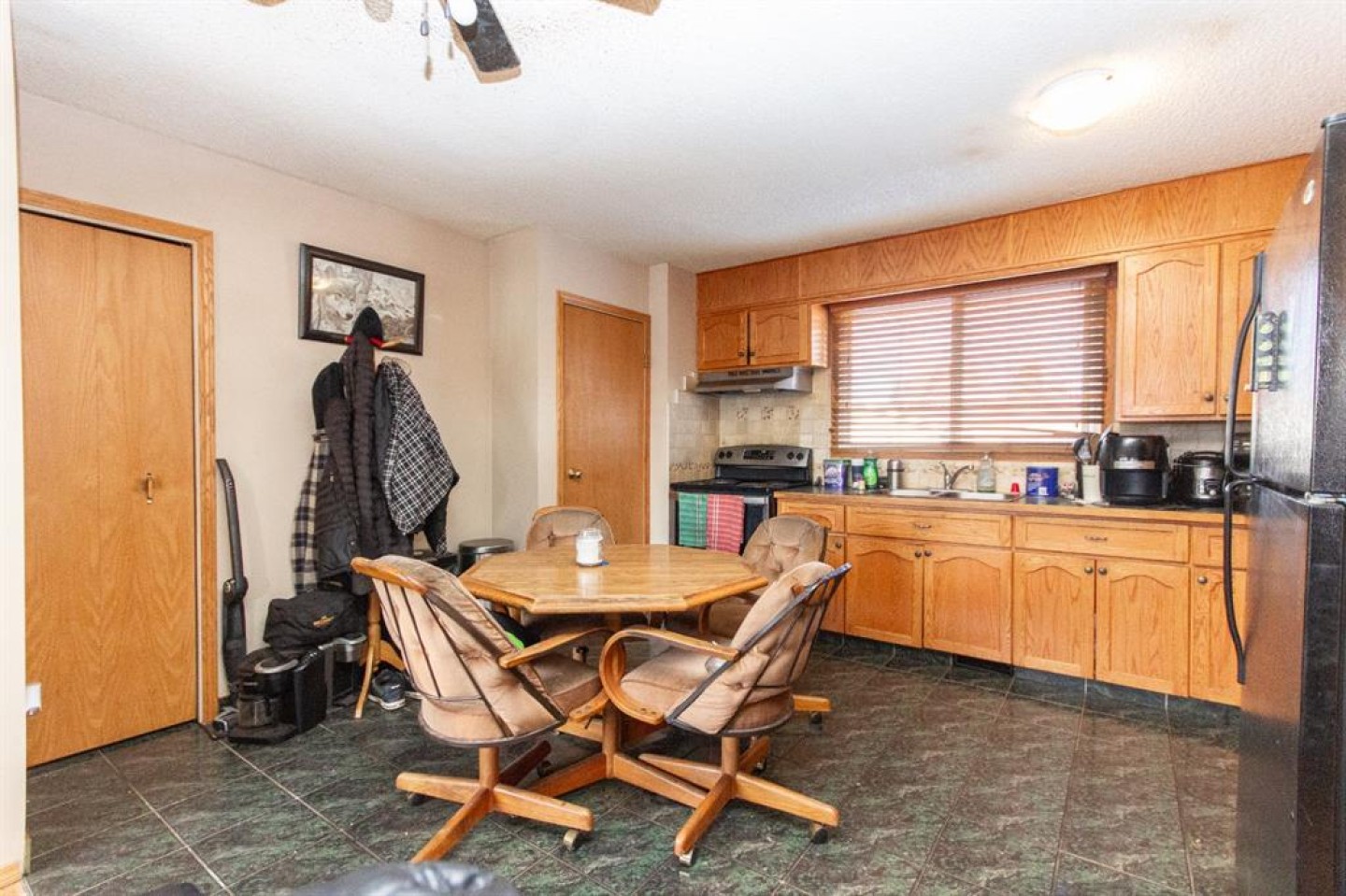 Great opportunity for first time buyers or investors in this 4 bedroom bungalow with a legal suite and plenty of potential. The open concept main floor features a bright south facing living room that flows into an eat-in kitchen overlooking the large backyard. Two bedrooms and a full 4-piece bathroom complete the main level. Downstairs, the fully developed walk up basement suite adds two additional bedrooms, another 4-piece bath, a living room, a small kitchen equipped with a fridge and stove as well as laundry making it ideal for extended family, roommates, or added flexibility. Outside you’ll love the large, fully fenced yard with back alley access, a 3 car gravel parking pad, and a rolling gate for secure, convenient entry. There’s also a concrete pad off the back door and a 21 x 12 shed. This home is tenant occupied and in need of some TLC.
