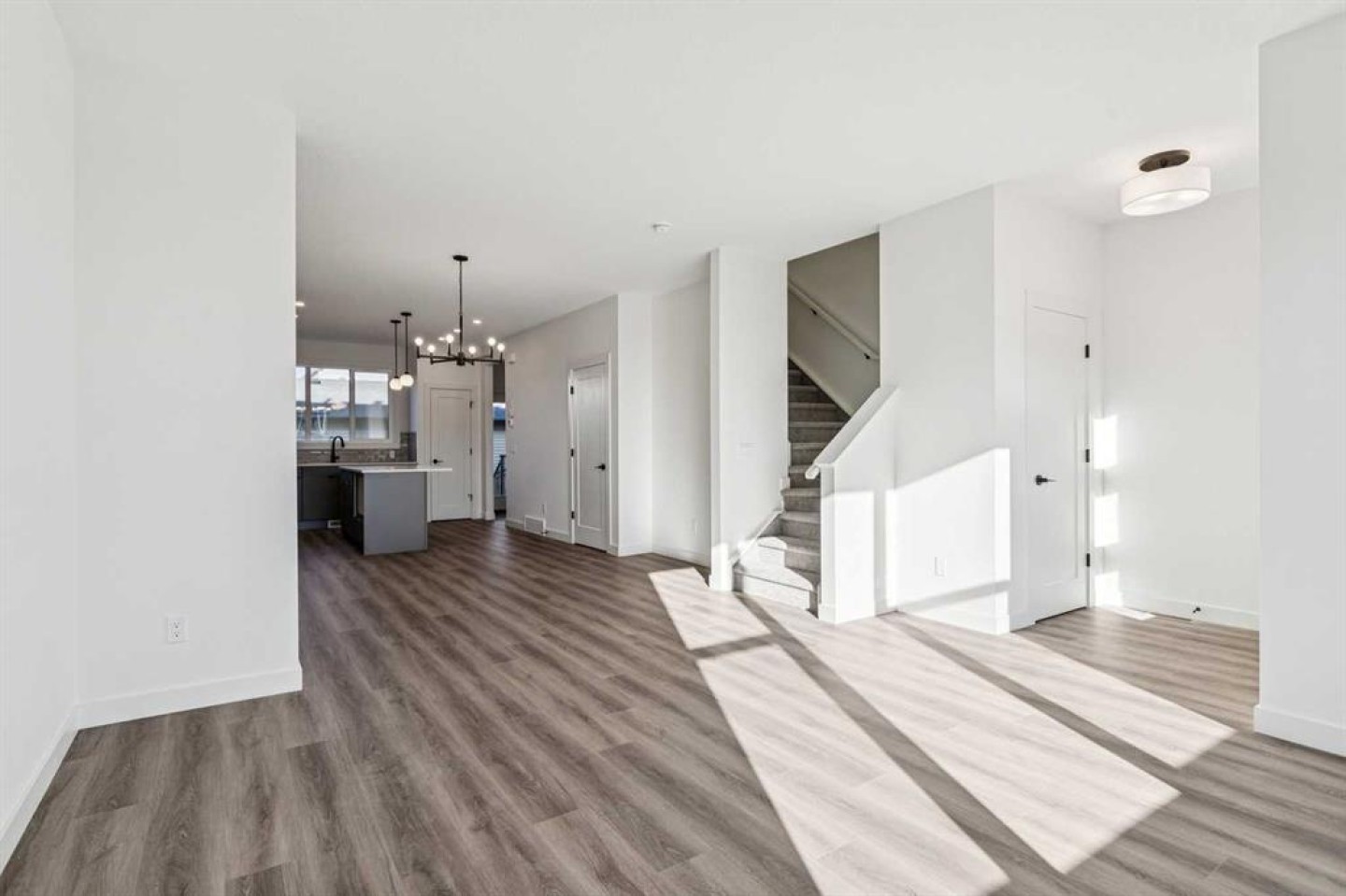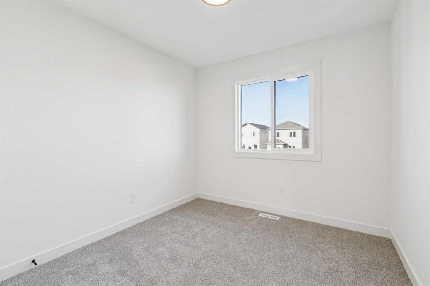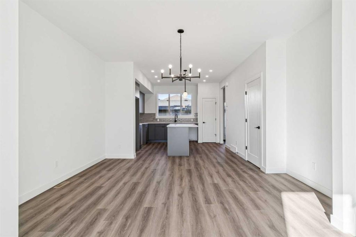The "Newport" by Fifth Avenue Homes provides an open and airy ambiance, with a well-appointed kitchen and comfortable living space. The main floor with an excellent, open plan, features a huge great room, adjoining dining area, dream kitchen highlighted by an island with breakfast bar, Quartz countertops & custom tile backsplash, access to the large 10x10 deck & 2 pc bath. The upper level offers two spacious bedrooms, 4 pc bath, a gorgeous primary suite with walk-in closet + a 3 pc ensuite & laundry. Undeveloped lower level with loads of storage and mechanical. Double detached garage. High-end plumbing & lighting fixtures throughout! Fifth Avenue Homes is well known for above standard finishings & attention to detail both in design & workmanship. This listing has just been completed & is ready for occupancy – pick your possession & move right in. Just minutes away from East Hills Shopping Center (Costco, movie theatre, shops & restaurants), close to future CBE elementary school site & 10 minutes to downtown on the Max Purple transit. Belvedere offers a wonderful family lifestyle with parks, natural wetlands and pathways. Book a showing with your Realtor today!