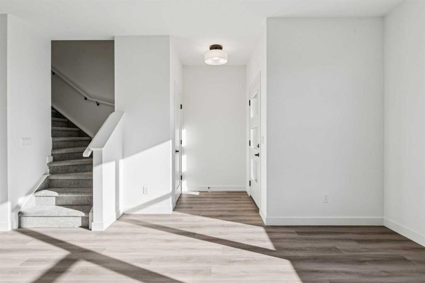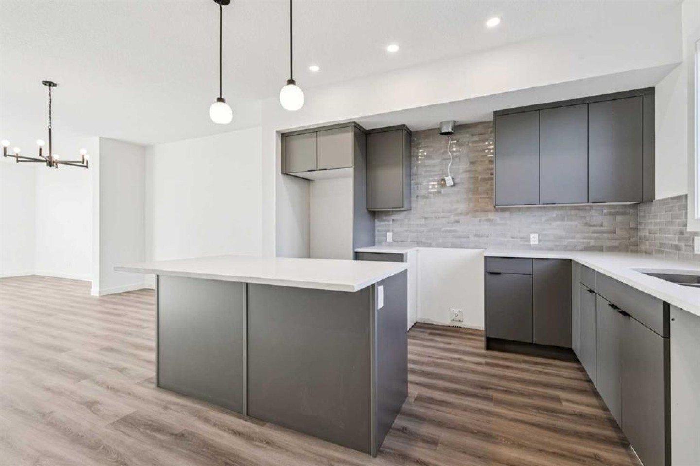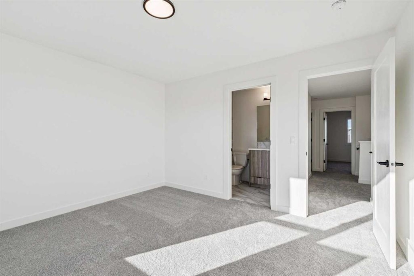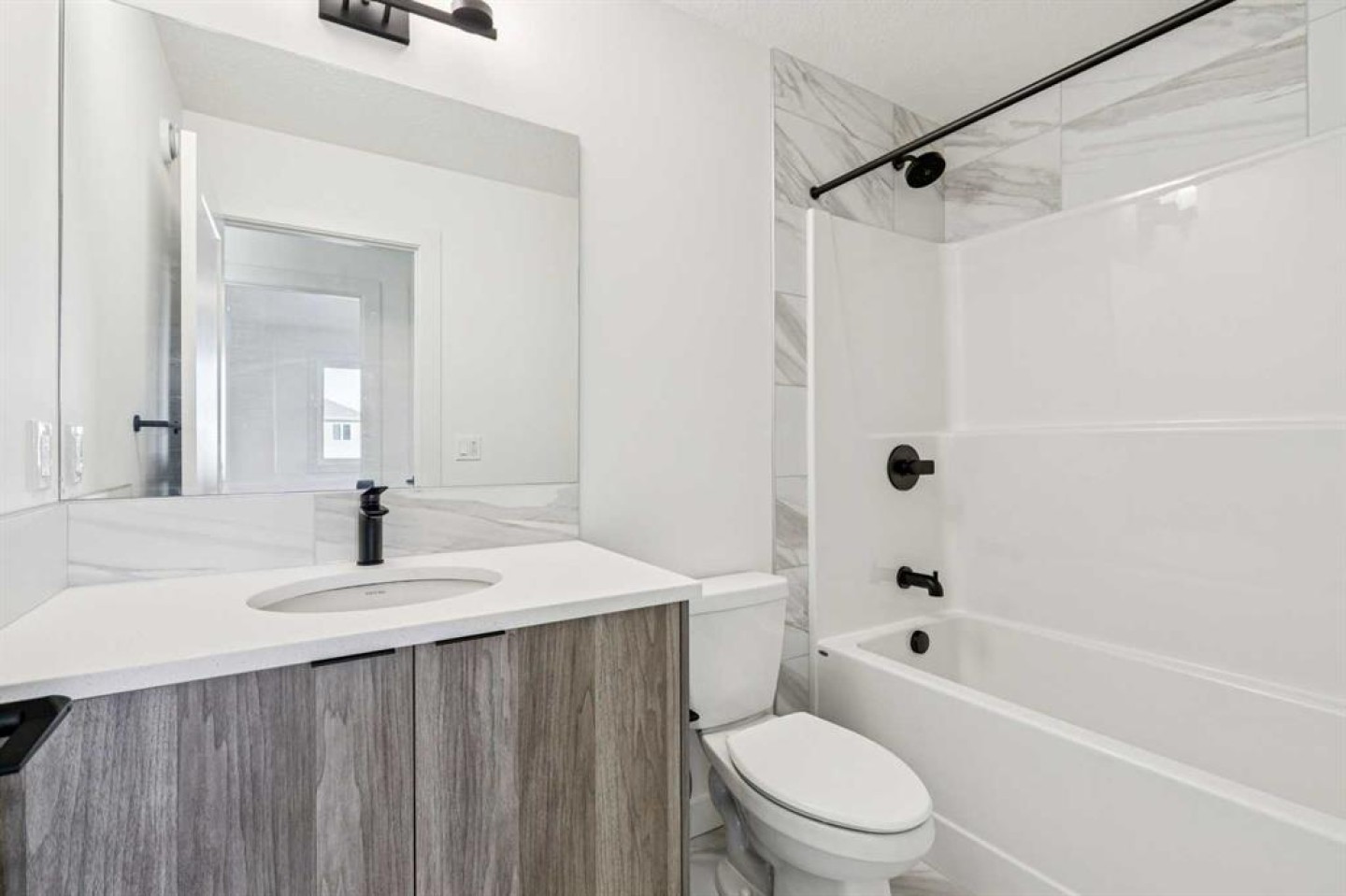 The "Newport" by Fifth Avenue Homes provides an open and airy ambiance, with a well-appointed kitchen and comfortable living space. The main floor with an excellent, open plan, features a huge great room, adjoining dining area, dream kitchen highlighted by an island with breakfast bar, Quartz countertops & custom tile backsplash, access to the large 10x10 deck & 2 pc bath. The upper level offers two spacious bedrooms, 4 pc bath, a gorgeous primary suite with walk-in closet + a 3 pc ensuite & laundry. Undeveloped lower level with loads of storage and mechanical. Double detached garage. High-end plumbing & lighting fixtures throughout! Fifth Avenue Homes is well known for above standard finishings & attention to detail both in design & workmanship. This listing has just been completed & is ready for occupancy – pick your possession & move right in. Just minutes away from East Hills Shopping Center (Costco, movie theatre, shops & restaurants), close to future CBE elementary school site & 10 minutes to downtown on the Max Purple transit. Belvedere offers a wonderful family lifestyle with parks, natural wetlands and pathways. Book a showing with your Realtor today!
